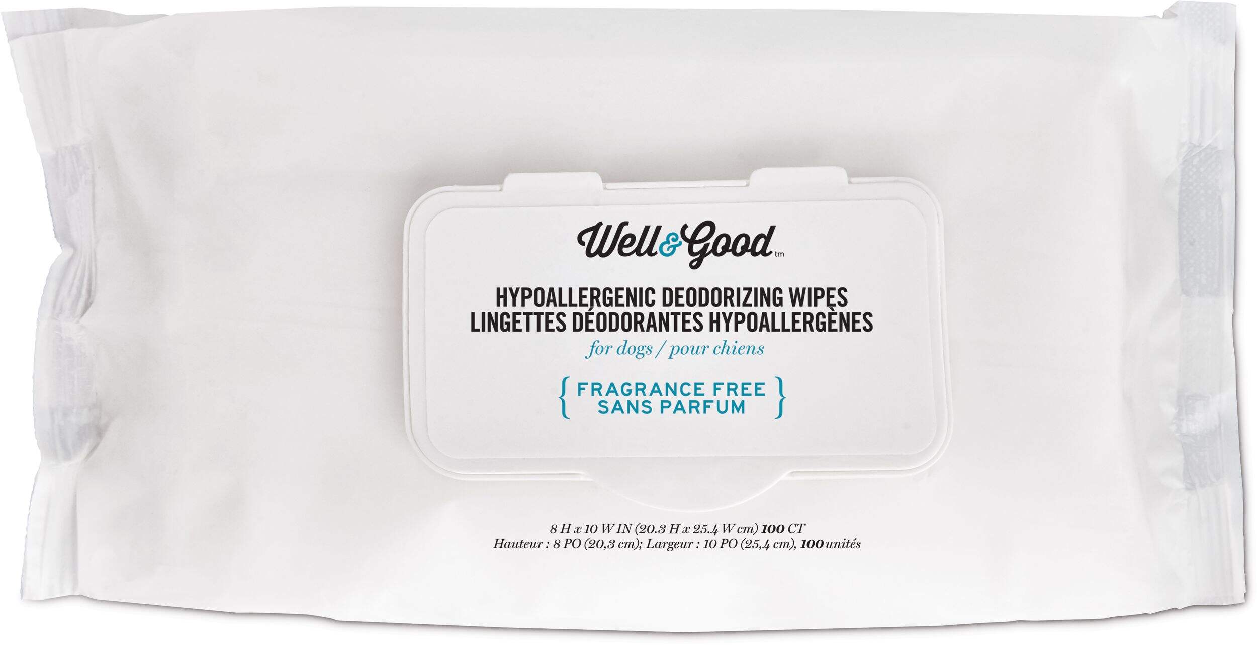 Well & Good Unscented Hypoallergenic Deodorizing Dog Wipes for odour control
