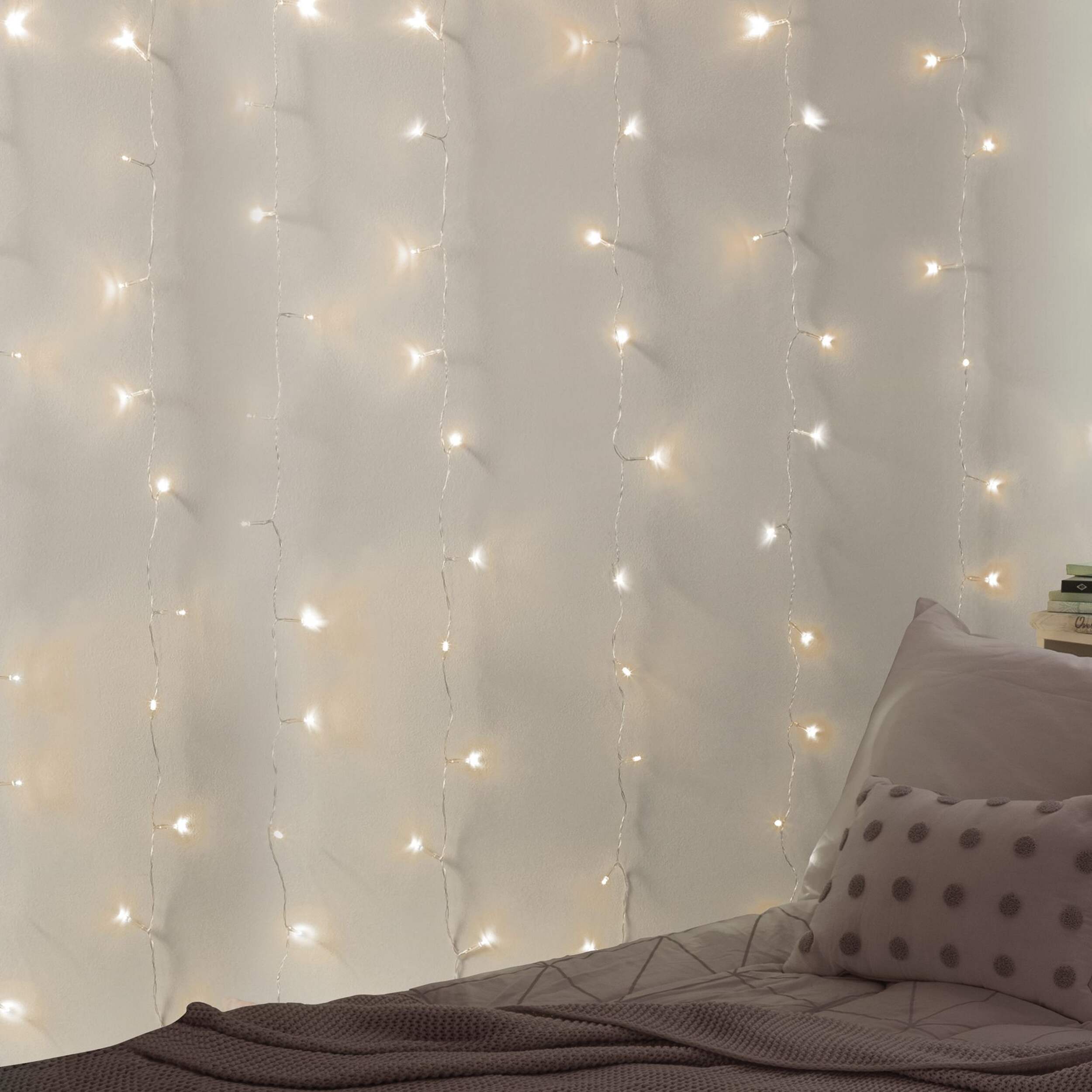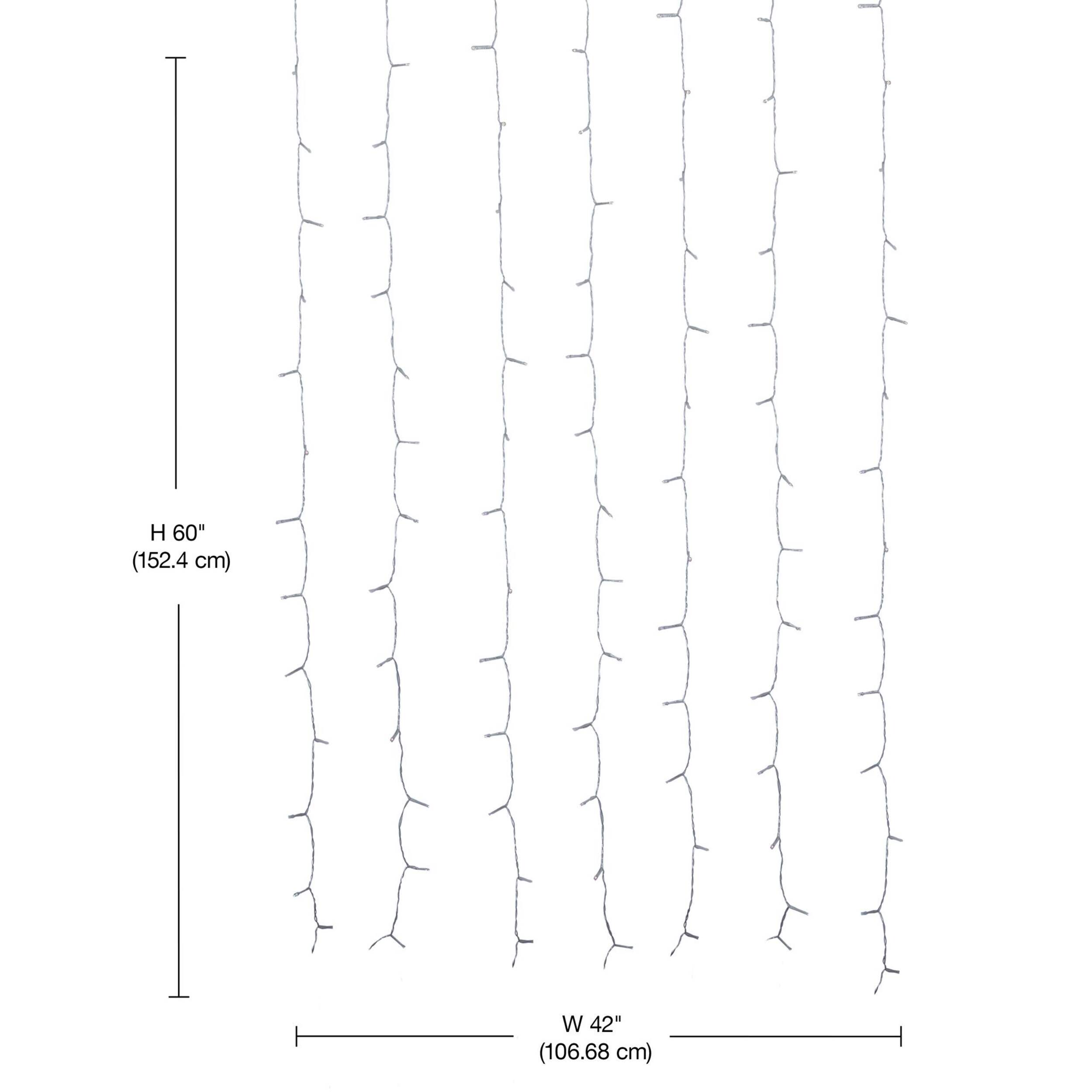 The Merkury Curtain String Light is a versatile and elegant lighting solution. Featuring warm white LEDs, it casts a subtle, welcoming glow. This LED curtain light includes six strands of lights on a flexible, clear colour wire. It's an ideal choice for indoor or outdoor use, though it's not waterproof. From parties and weddings to holiday celebrations, it can add a touch of charm to any event. Please note, this product requires three AA batteries, which are not included.