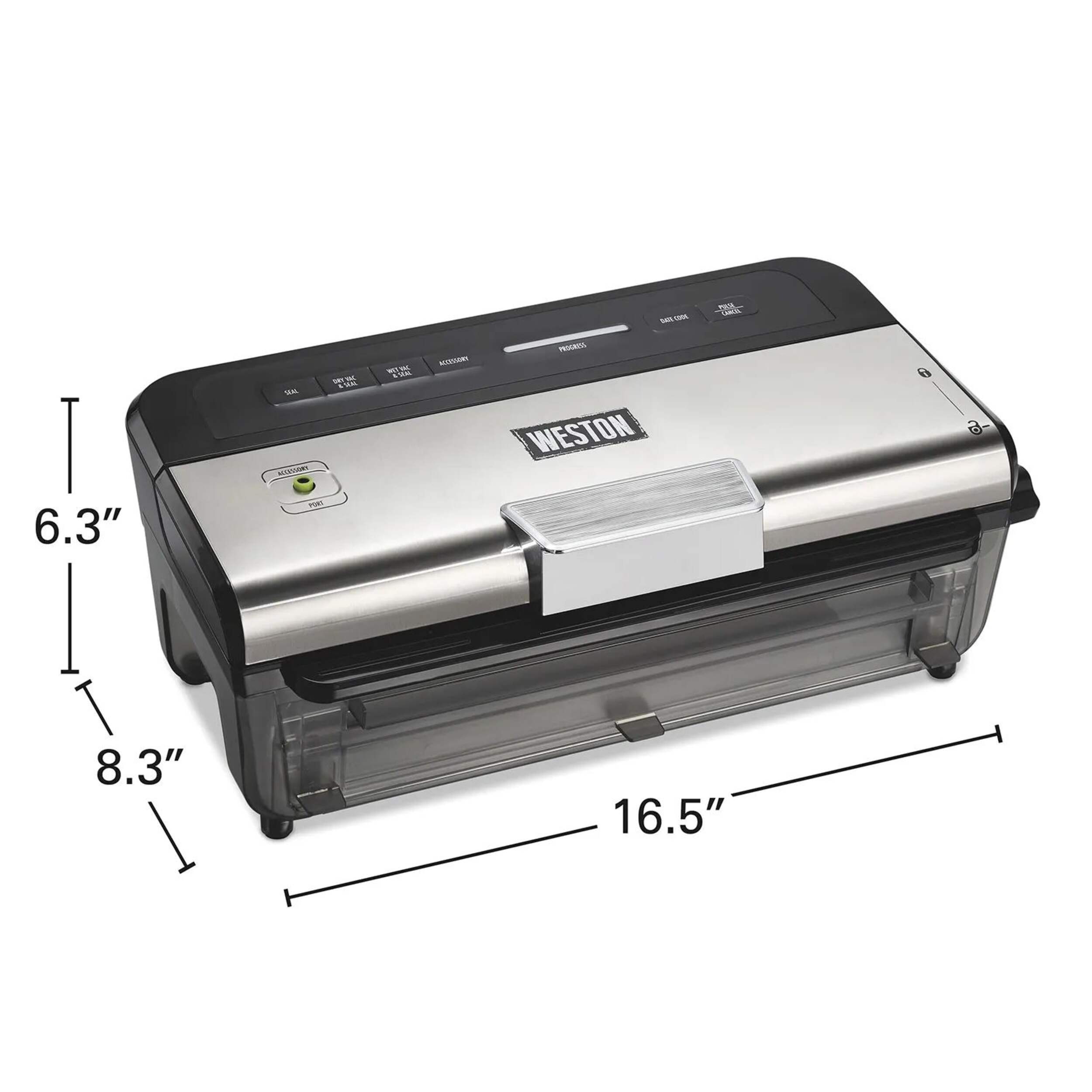 The Weston Wet & Dry Sealer in sleek black helps you save money and reduce food waste by keeping foods fresh up to 5 times longer. Perfect for preserving meats, fish, veggies, leftovers, garden harvests, and bulk purchases, it ensures freshness and reduces spoilage. The easy-to-clean touchpad controls make operation simple, while a robust 5-year limited warranty adds peace of mind. This versatile sealer is ideal for all types of foods, wet or dry, for lasting freshness.