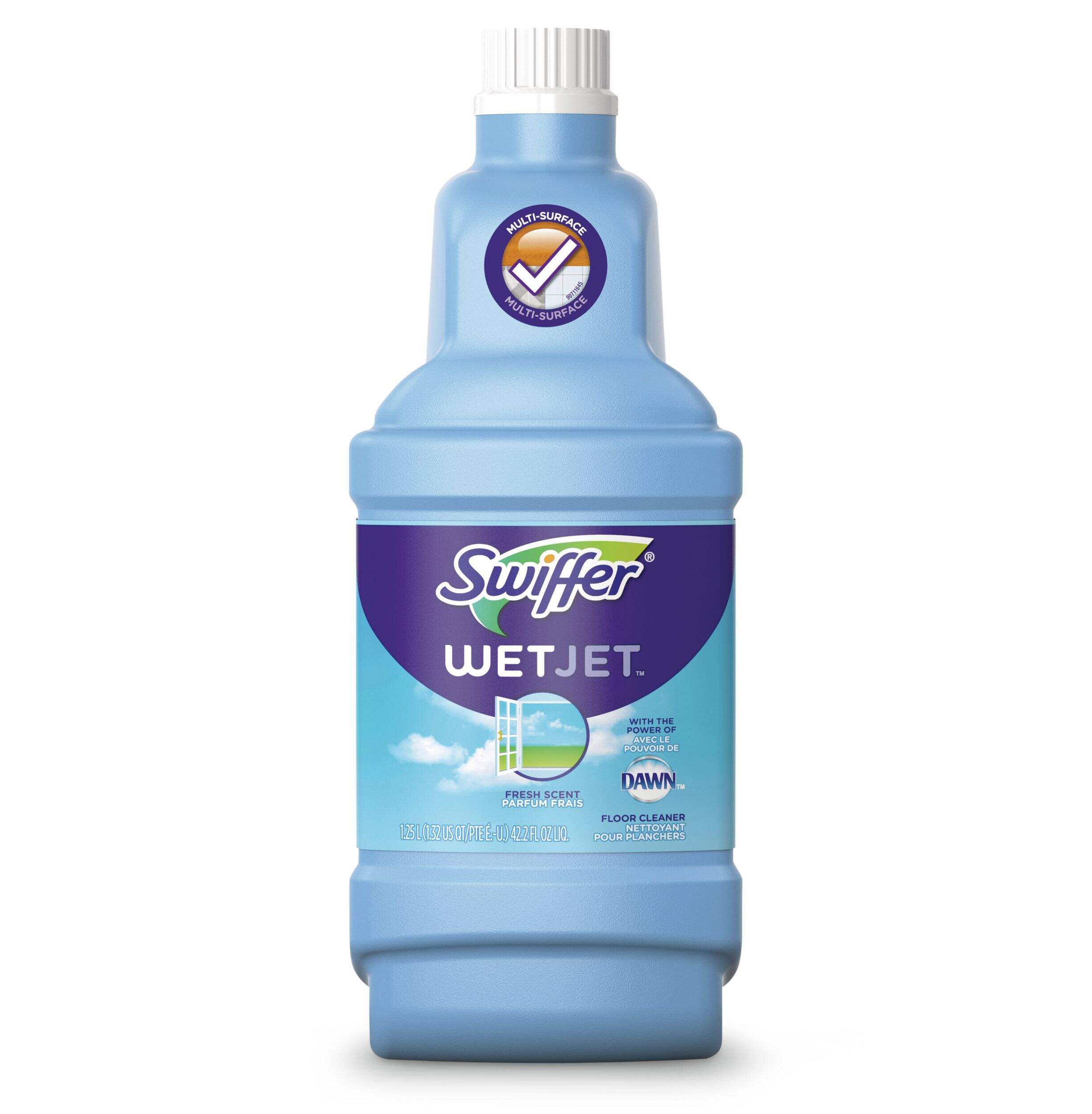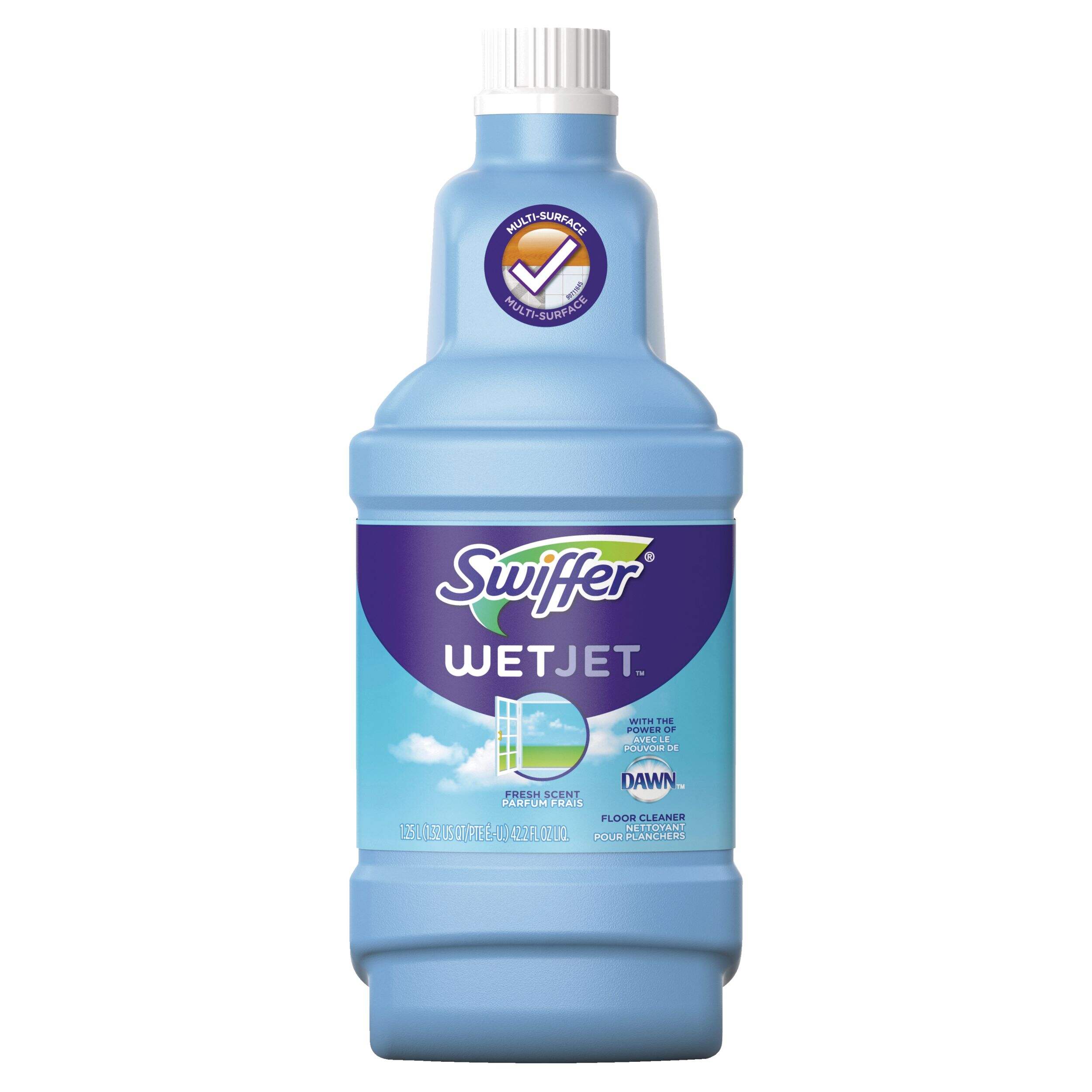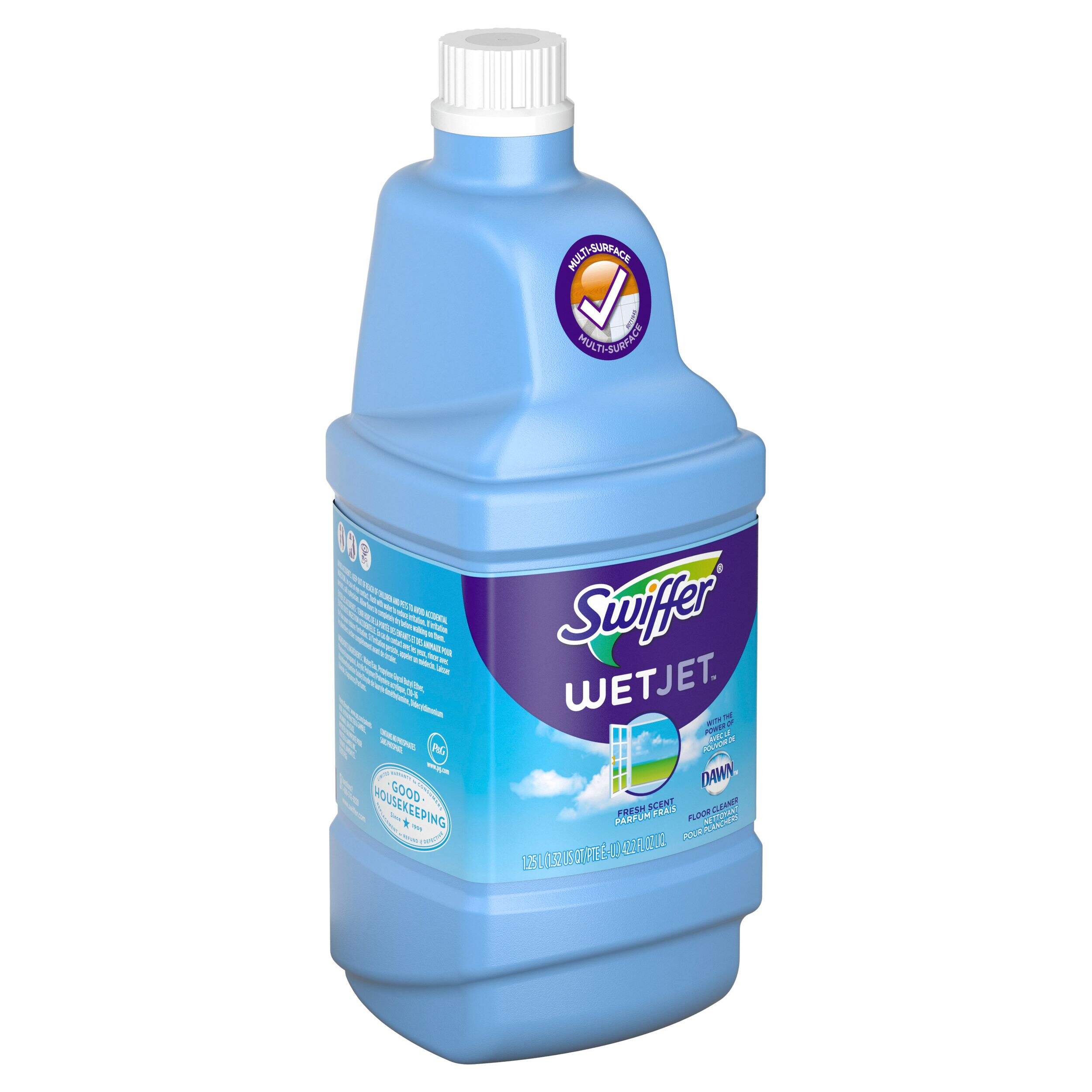 Swiffer WetJet Multi-Surface Floor Cleaner is a pre-mixed cleaning solution made especially for the Swiffer WetJet all-in-one power mop. It's safe* and fast drying formula dissolves dirt and tough sticky messes to reveal the natural beauty of your floors. *do not use on unfinished, oiled or waxed wooden boards, non-sealed tiles or carpeted floors because they may be water sensitive.