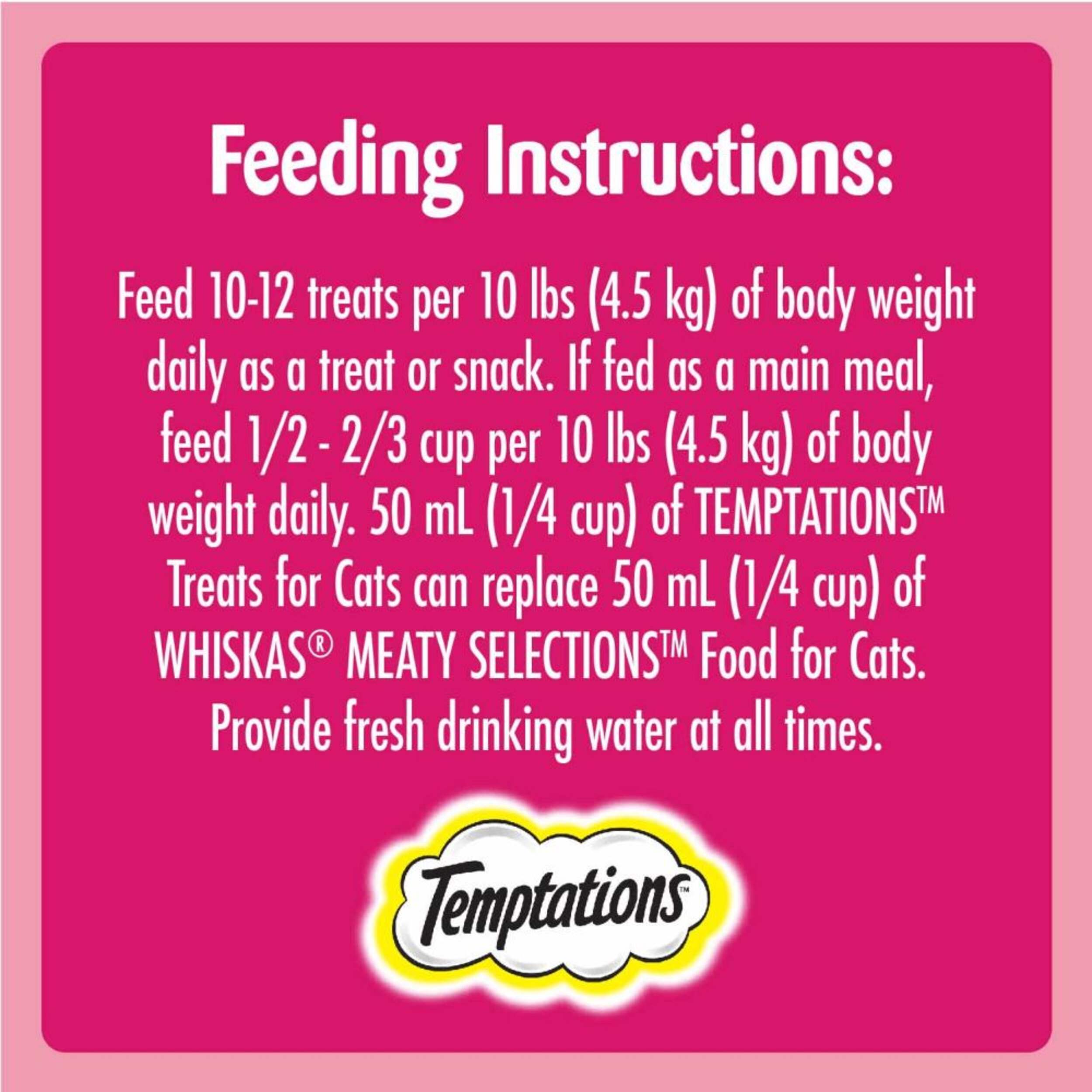 Cats can’t resist the delicious taste of TEMPTATIONS™. Treat your cat to these perfect TEMPTATIONS™ Cat Treats, and they’ll come running the moment you open the pack. Made with no artificial flavours, TEMPTATIONS™ cat treats contain less than 2 calories per treat and offer an irresistible combination of crunchy and soft textures. They come in a cat-proof, value-sized tub, ensuring your feline friend can enjoy plenty of their favourite snack when you open it—but never when they shouldn’t! TEMPTATIONS™ Cat Treats are an excellent addition to your cat’s regular feeding routine.