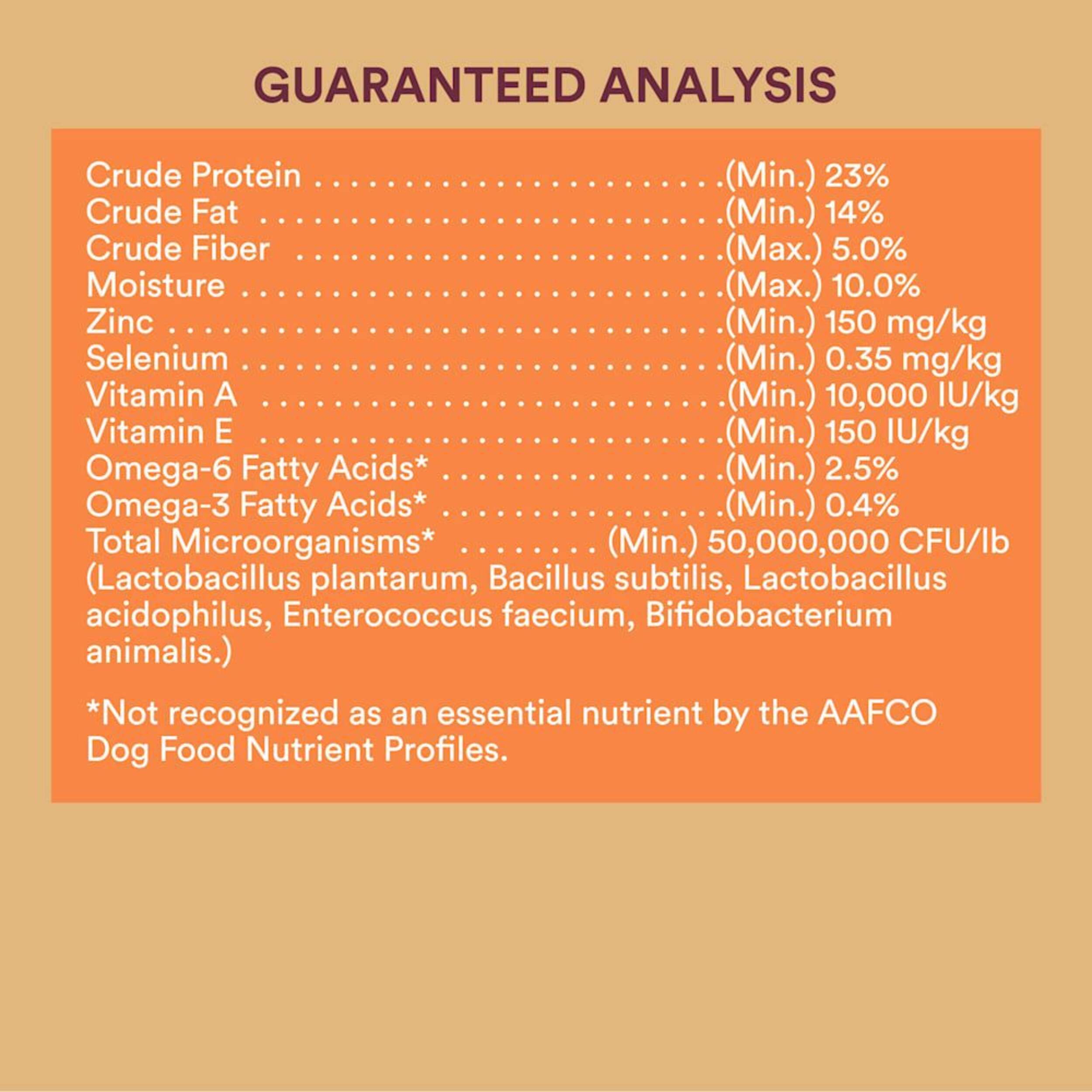 | Primary Ingredient(s) | Brown Rice, Chicken, Chicken Fat, Chicken Meal, Dried Beet Pulp, Flaxseed, Peas, Salmon Oil |