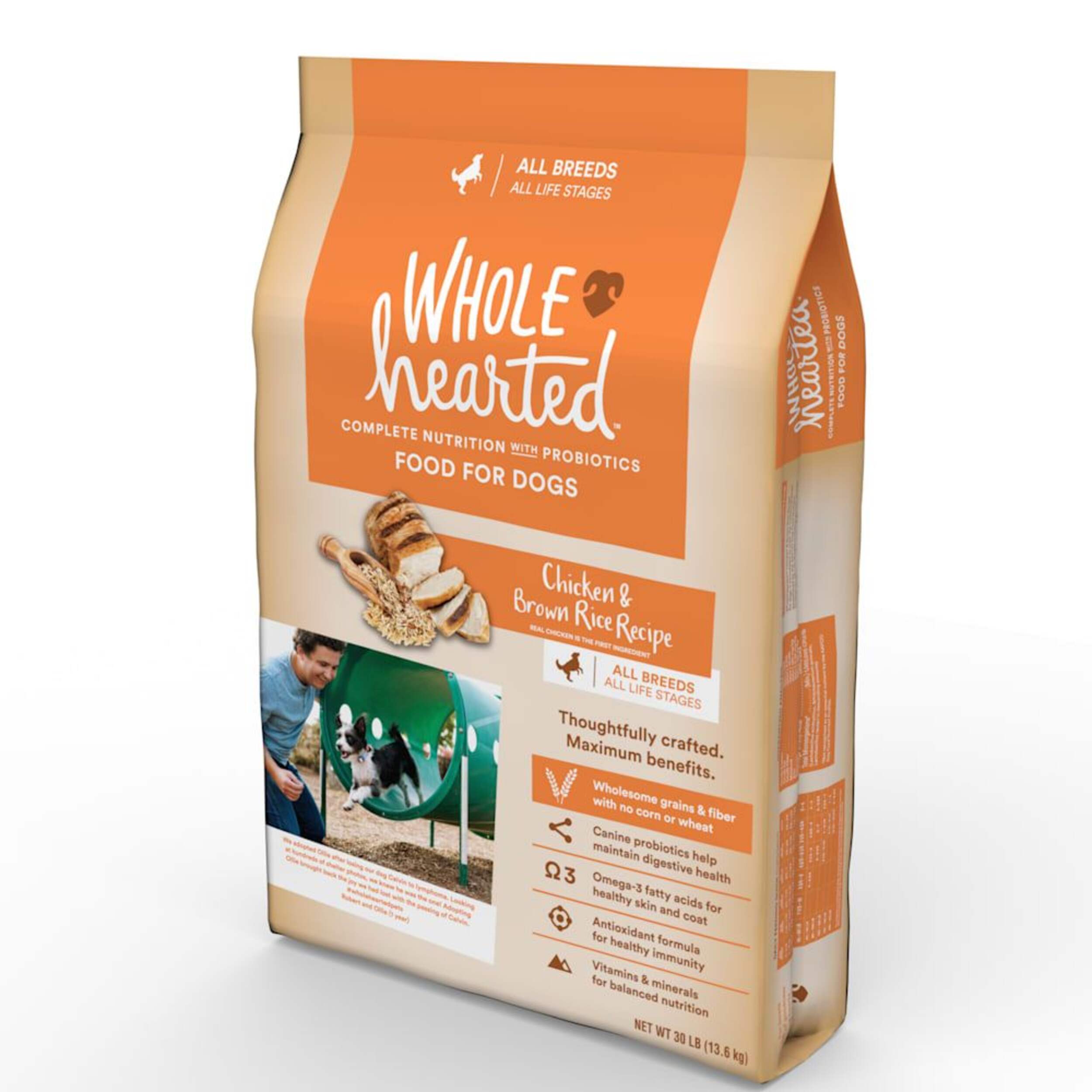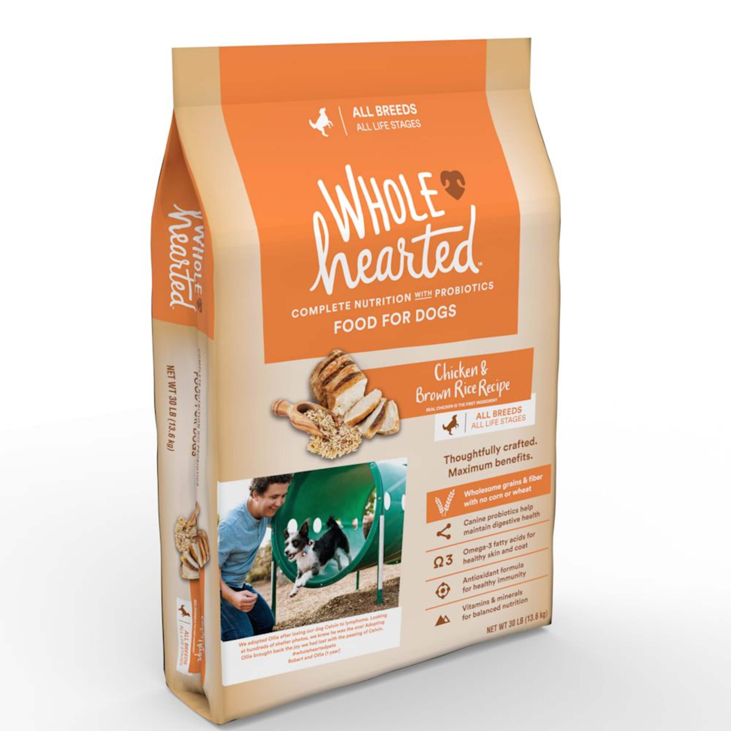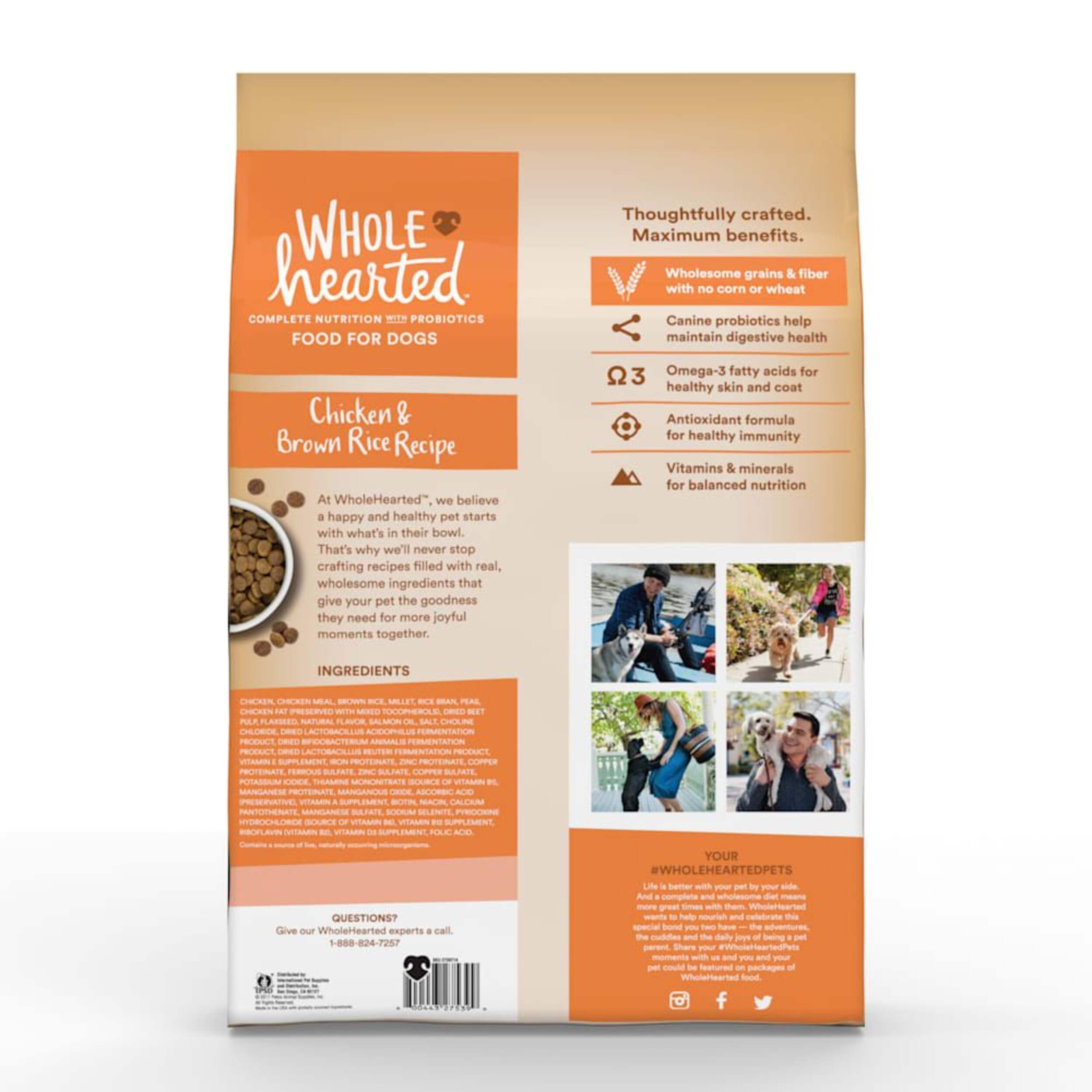 The WholeHearted All Life Stages Chicken and Rice Dry Dog Food dishes out vitamins, minerals, probiotics, antioxidants, and Omega-3 fatty acids in a taste that pups love. Feel good about what you're feeding your pet with the complete, balanced nutrition this formula provides.