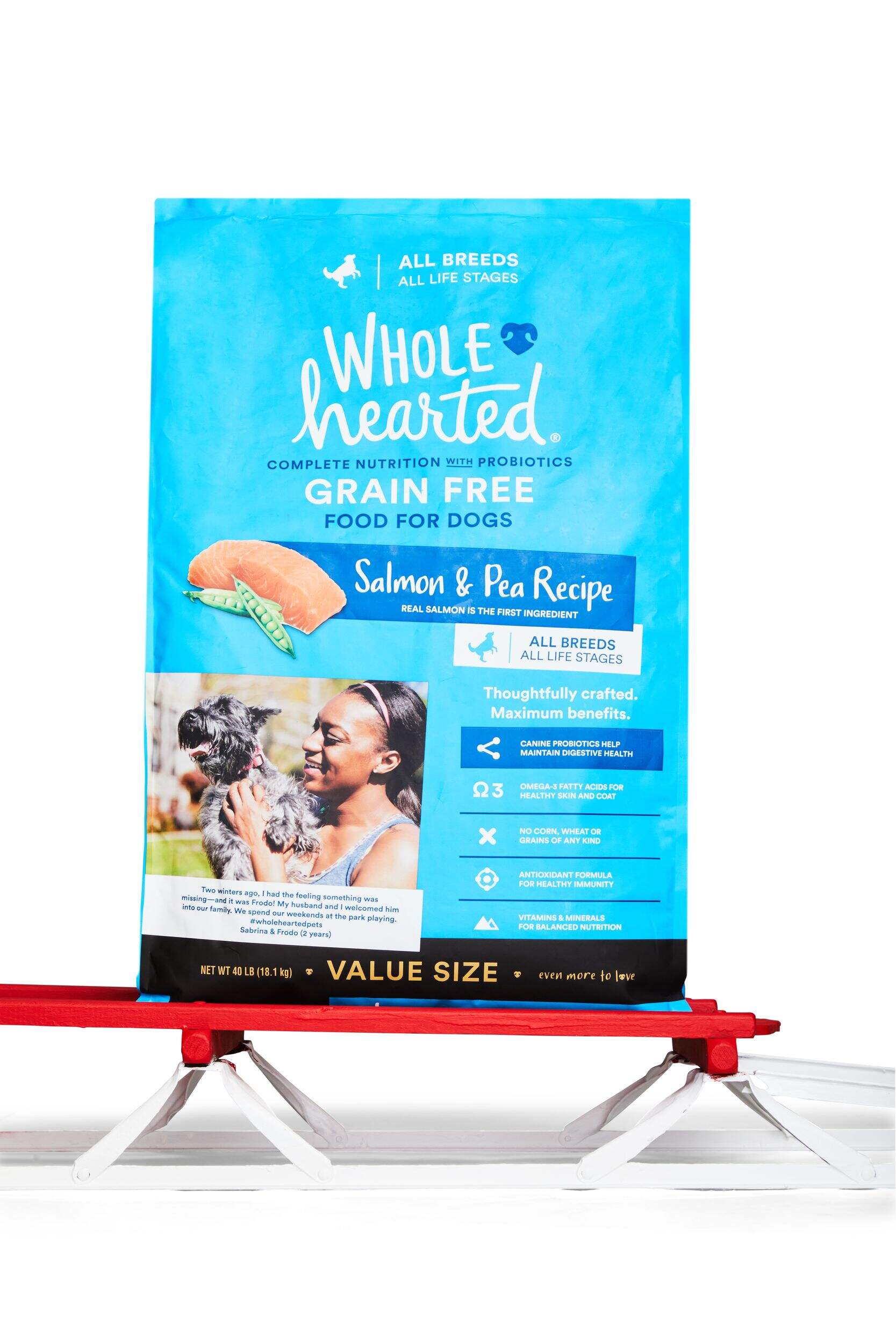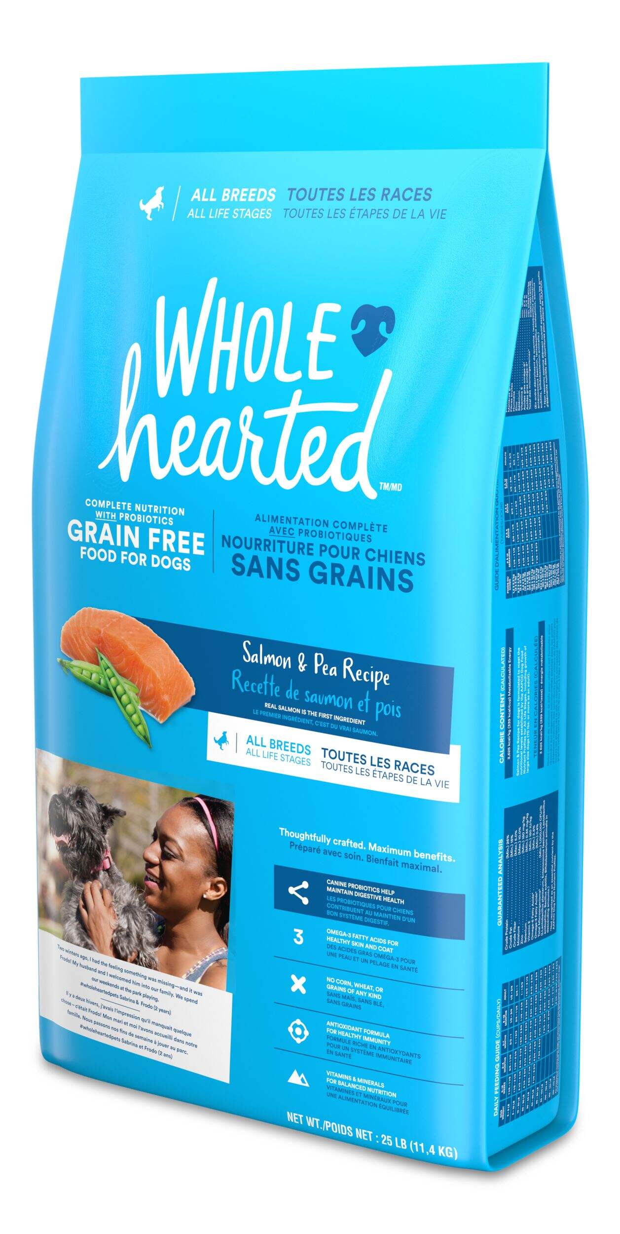 The WholeHearted All Life Stages Grain-Free Salmon and Pea Recipe Dry Dog Food satisfies your pup with scrumptious flavours while providing them complete, balanced nutrition. Fill your pet's bowl with Omega-3 fatty acids, canine probiotics, antioxidants, and absolutely zero corn, wheat, or grains.