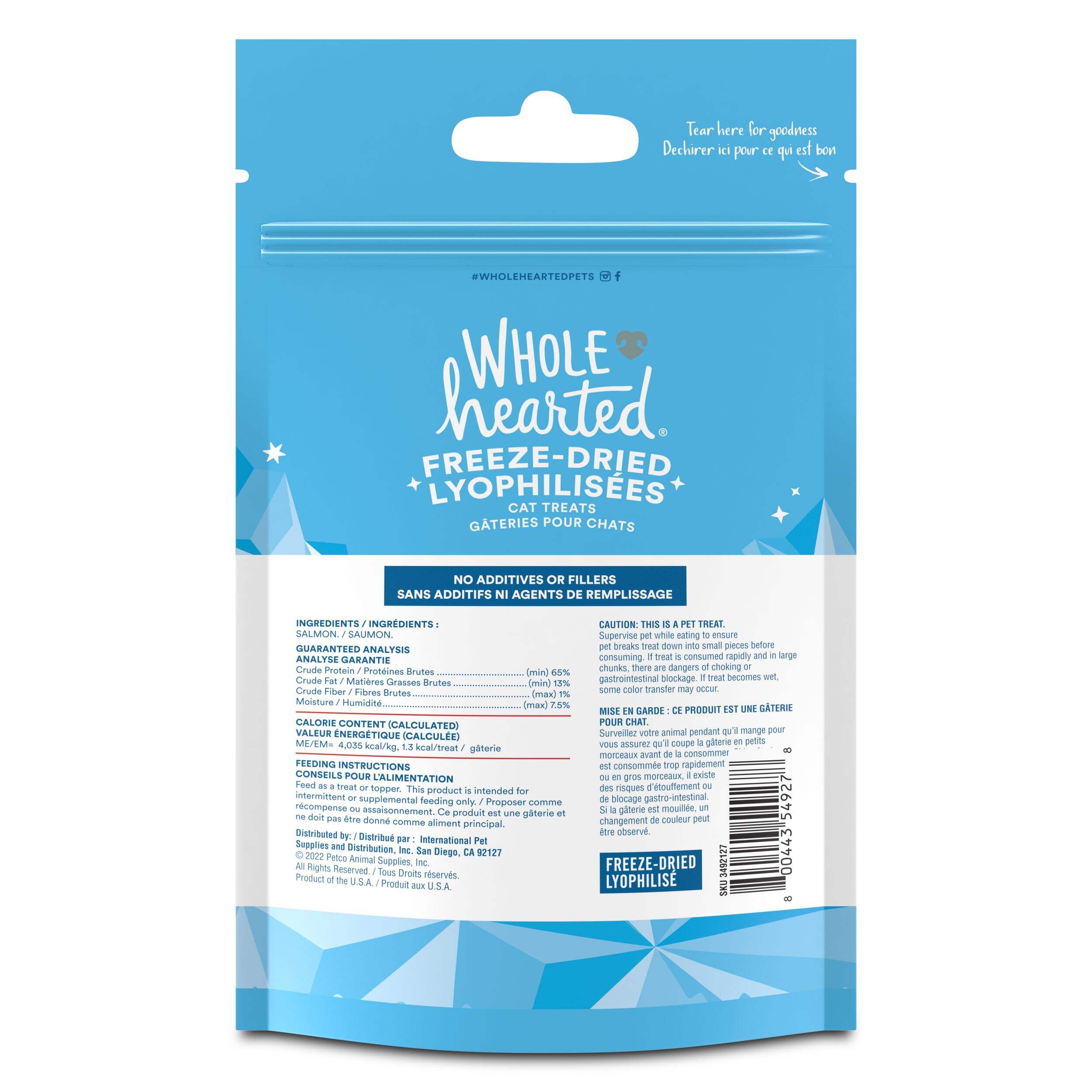 WholeHearted Freeze-Dried Salmon Cat Treats provides cats with a scrumptious treat that's free from preservatives