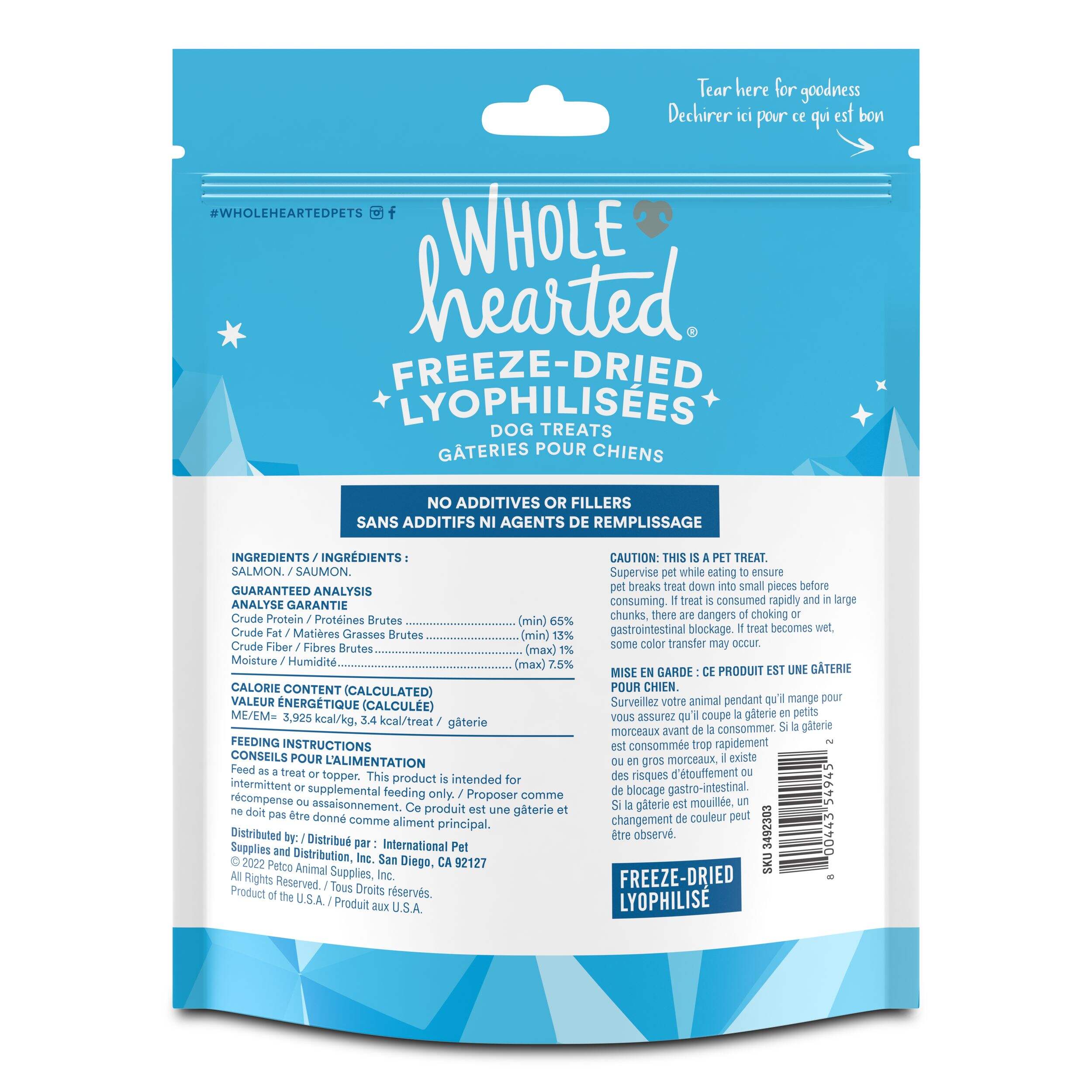 Treat your dog to the tender texture and savoury taste of WholeHearted Freeze-Dried Salmon Dog Treats