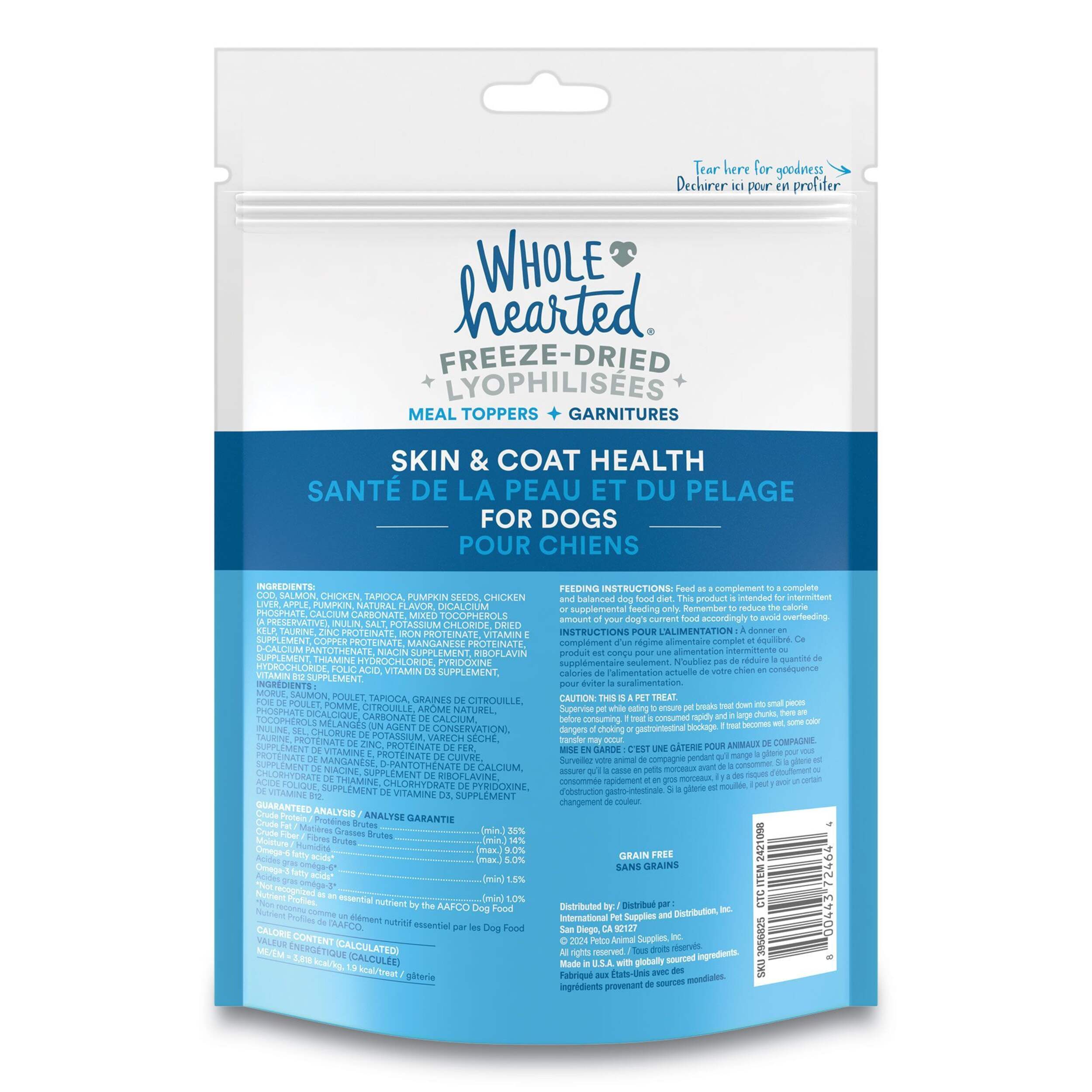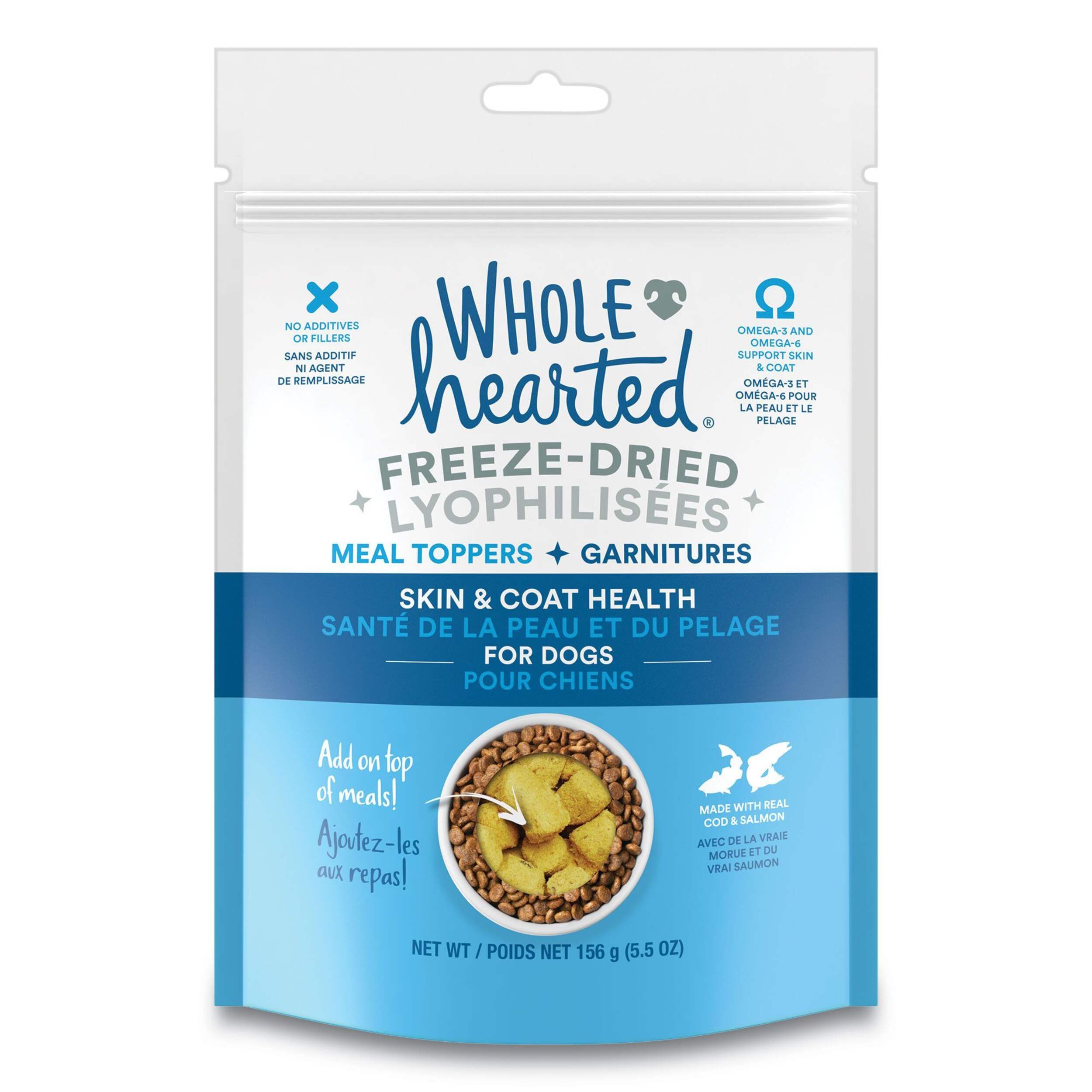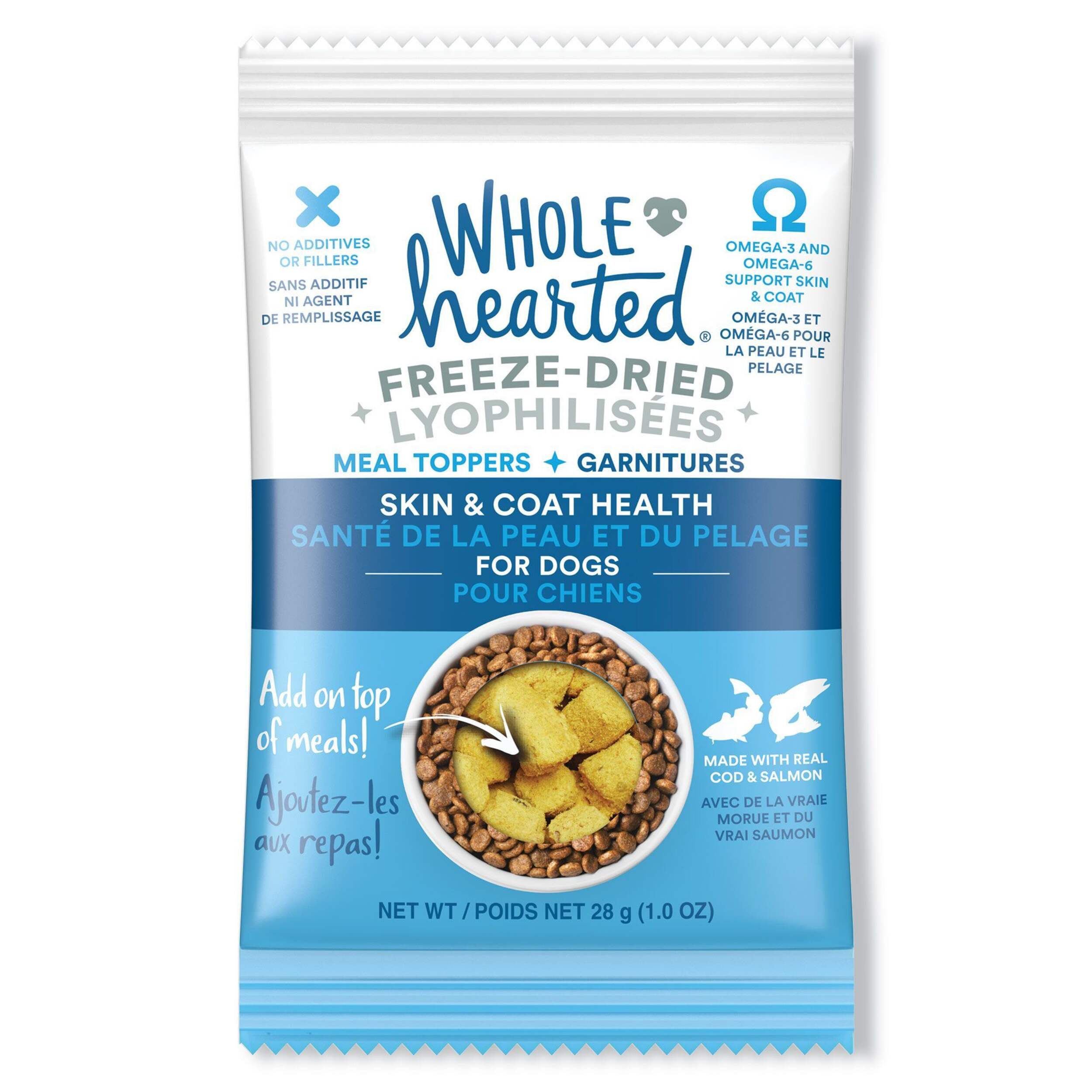 WholeHearted Freeze-Dried Toppers are a delicious way to boost your dog's meal with added health benefits. Toppers are flash-frozen and minimally processed, allowing them to retain the important nutrients your dog needs. You'll love the added nutrition from Omega-3 and -6 fatty acids that help support skin and coat health and they'll enjoy the tasty, savory flavour during mealtime.