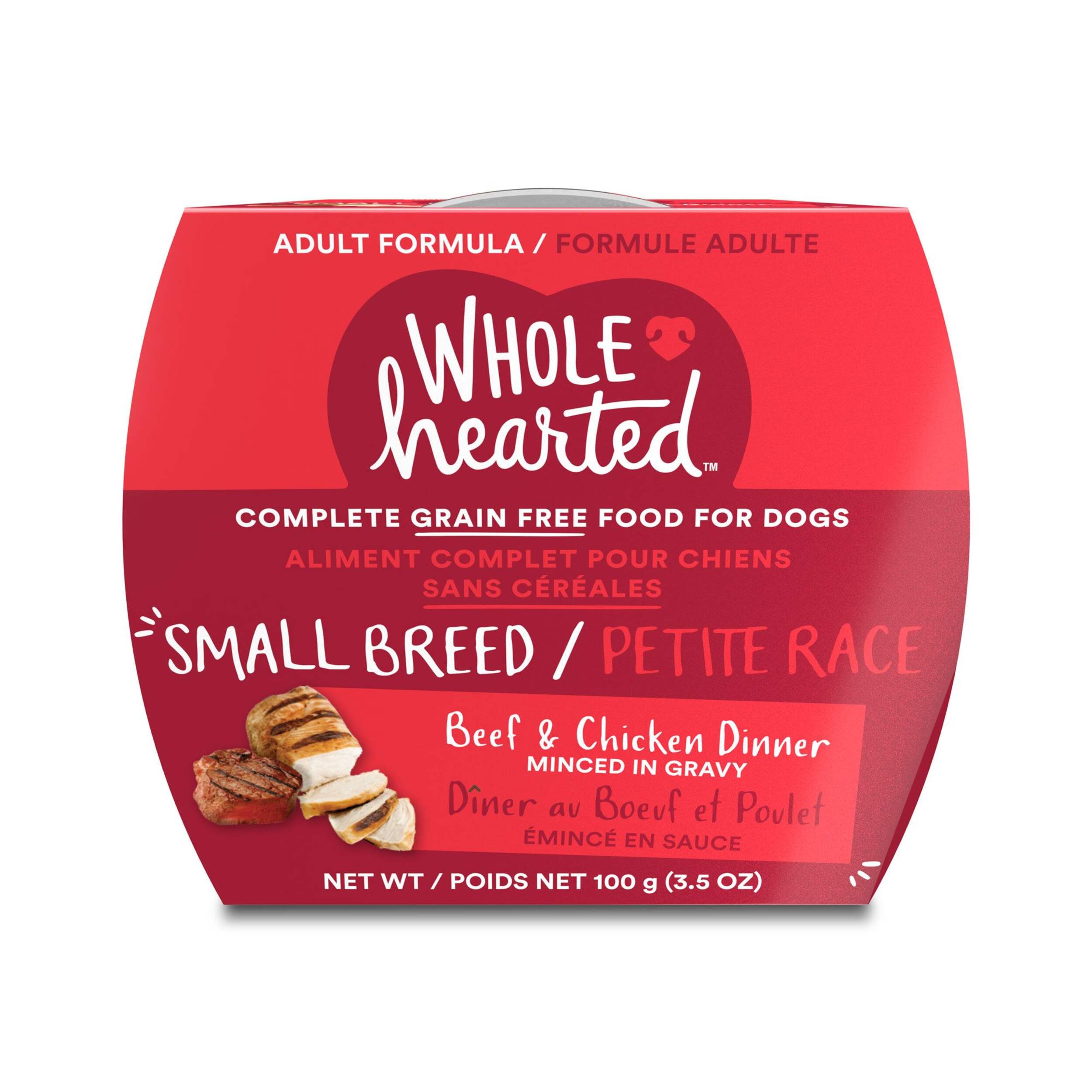 The WholeHearted Grain Free Small Breed Adult Minced in Gravy Wet Dog Food Variety Pack nourishes your adult pup with high-quality ingredients