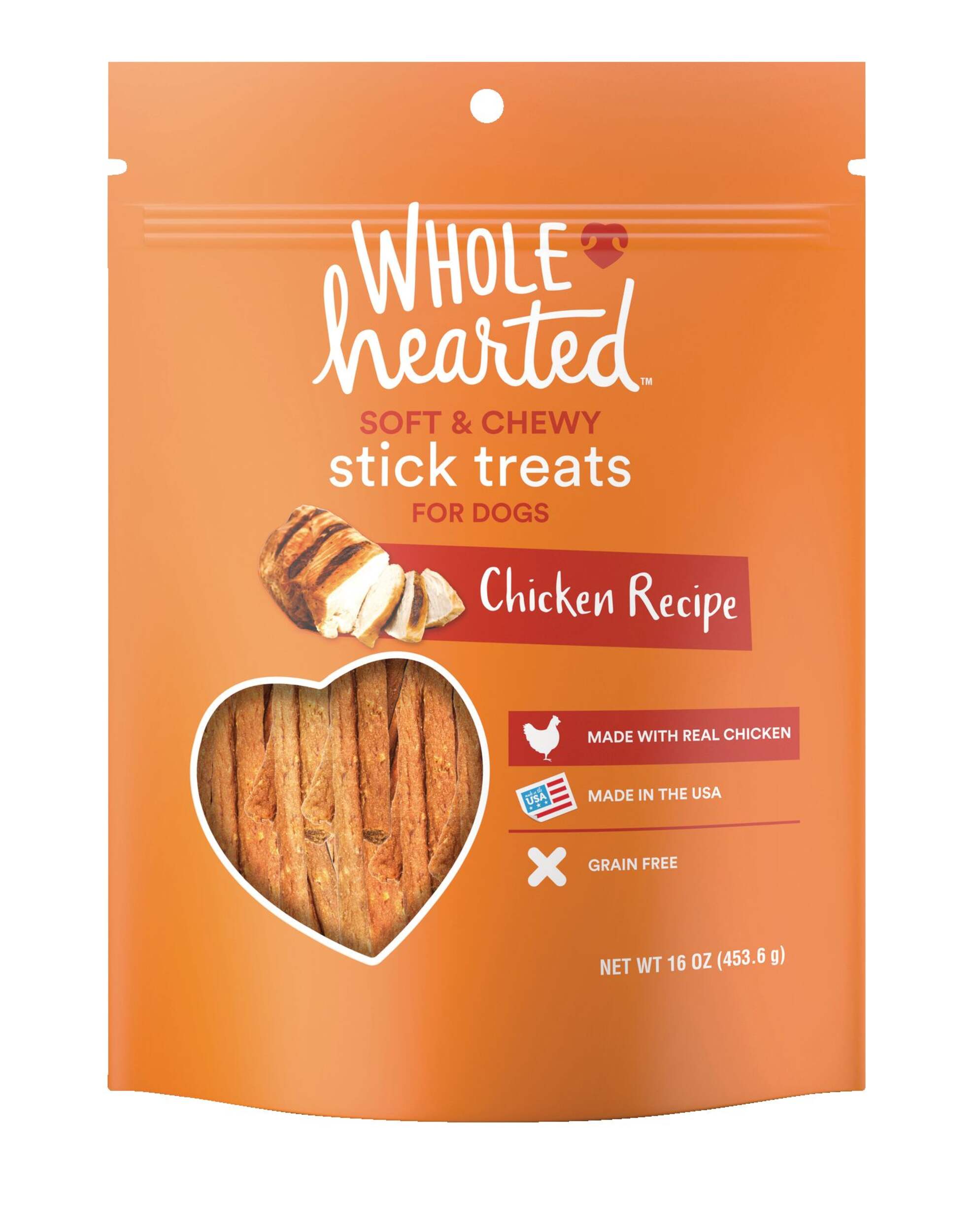 Satisfy your dog's hunger with WholeHearted Grain Free Soft & Chewy Dry Dog Stick Treats