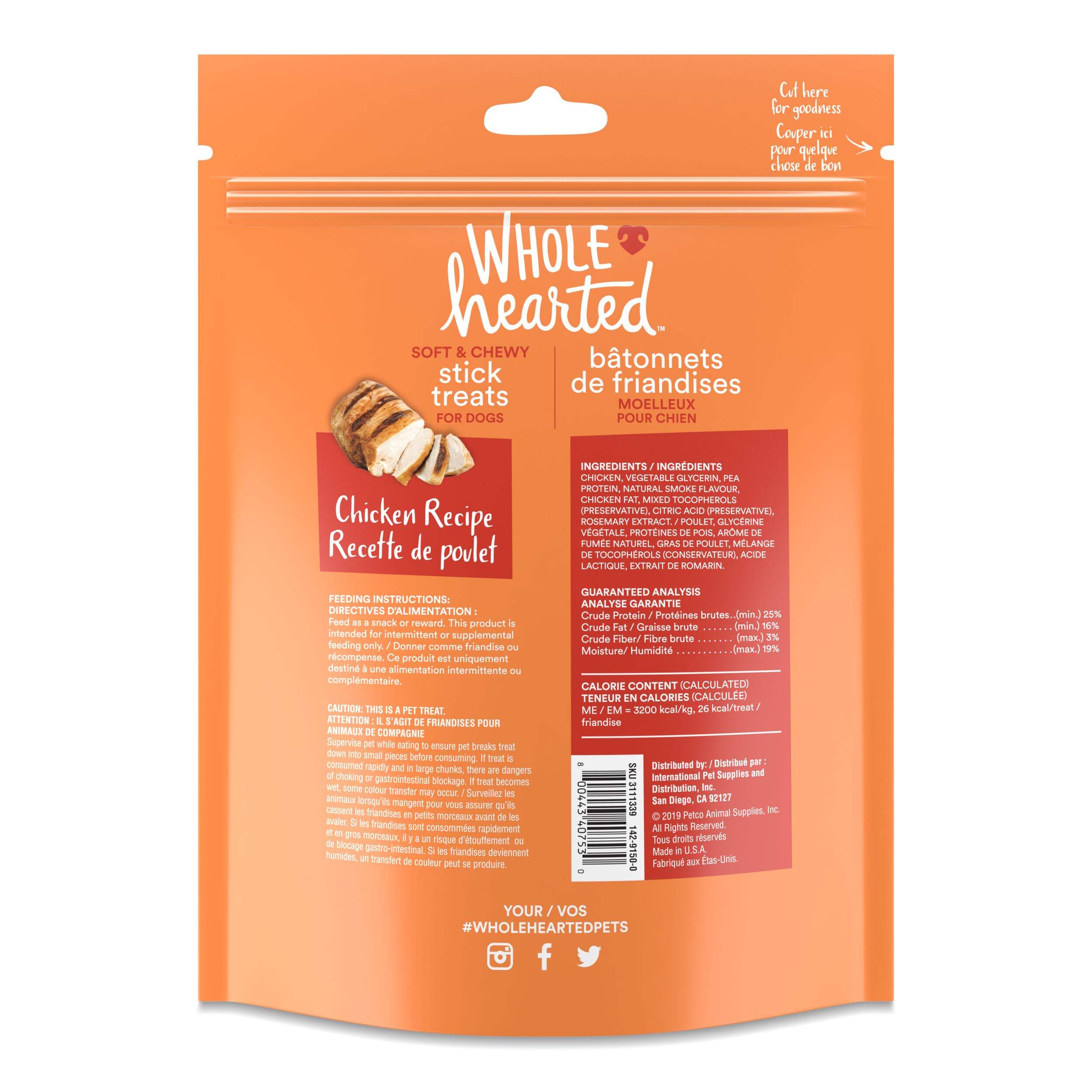 The WholeHearted Grain Free Soft & Chewy Chicken Stick Dog Treats lets you customize each bonding moment with an easy-to-break apart shape and delicious texture. Its satisfyingly chewy texture pairs perfectly with a fan-favorite flavor to get their tail wagging each time you open the bag.