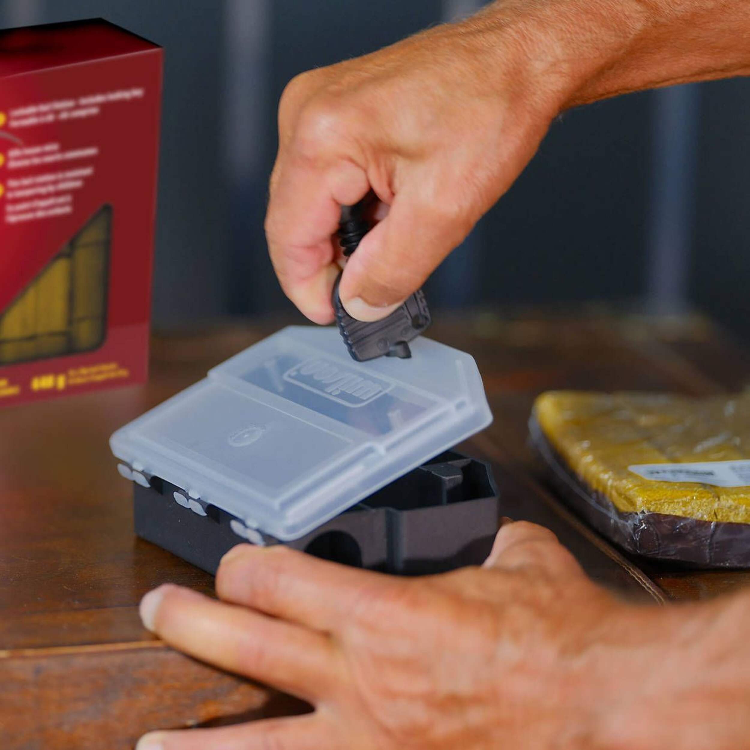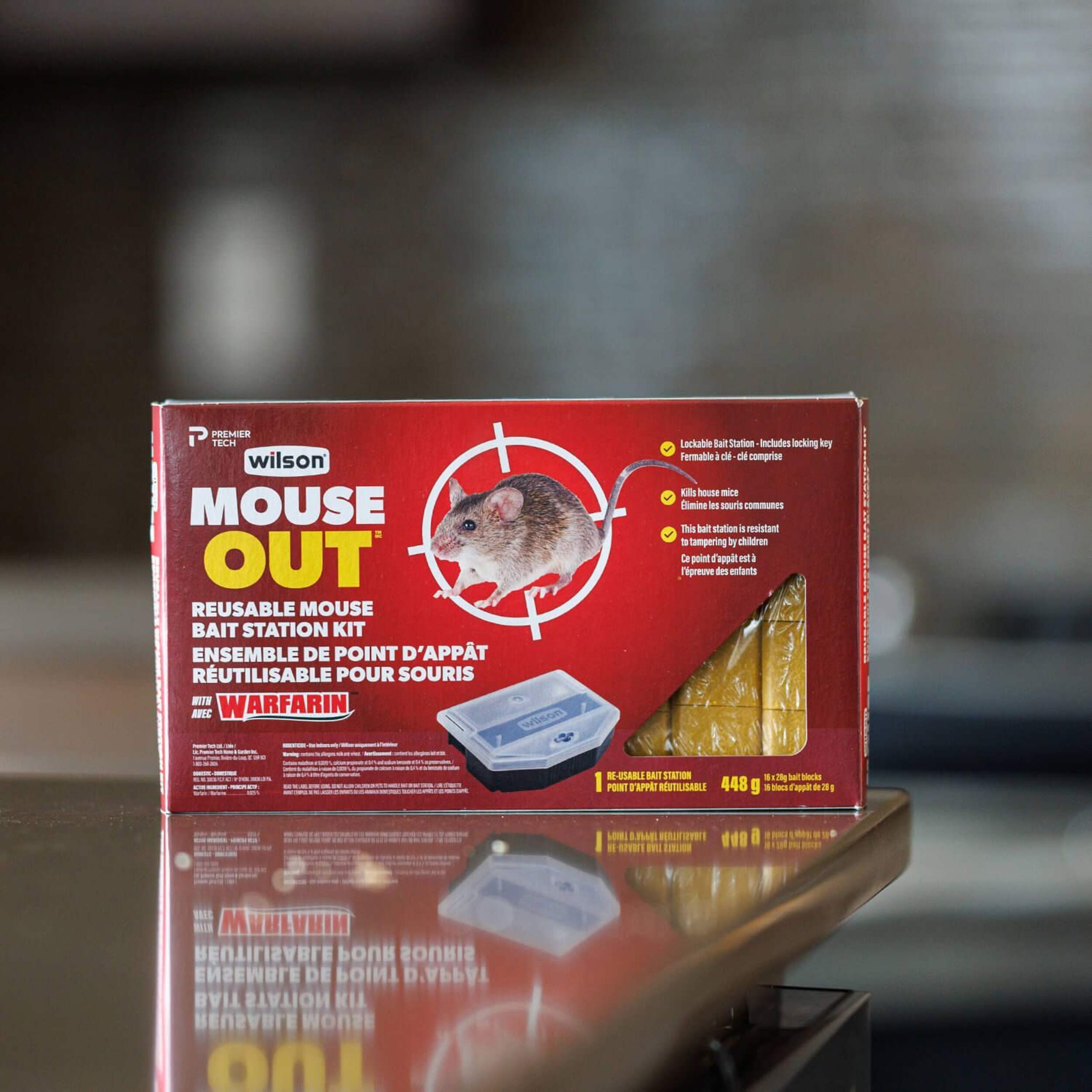Kill house mice right away with the Wilson MouseOut Reusable Mouse Bait Station with Warfarin 16-Pack. Each bait station comes with 16 bait blocks that contain warfarin, an anticoagulant chemical that reduces the clotting ability of the blood. After several feedings, house mice will die from fatal hemorrhaging. Good riddance!