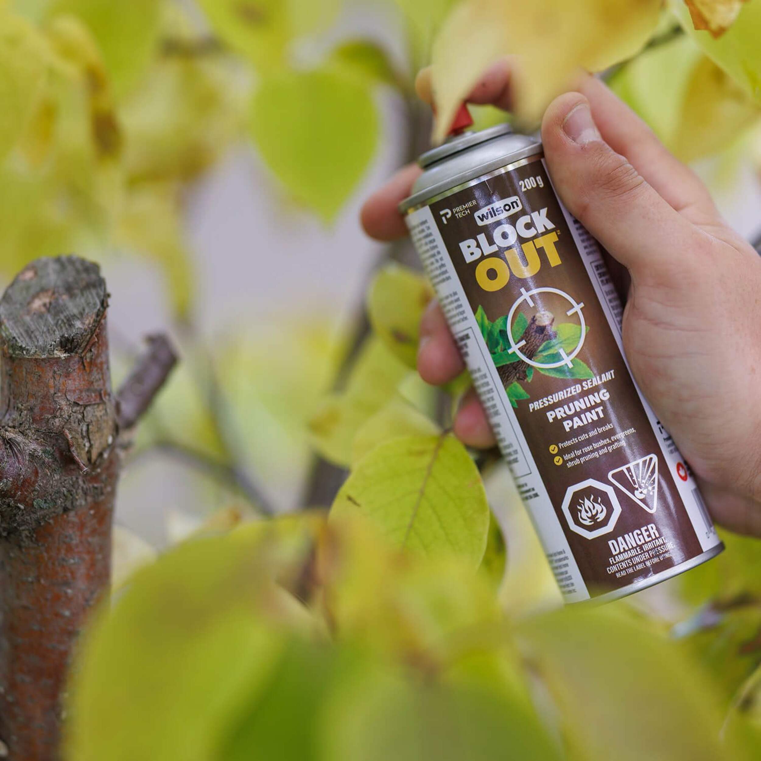 Wilson Pruning Spray Aerosol has a protective coating and sealing agent that helps prevent moisture loss after pruning