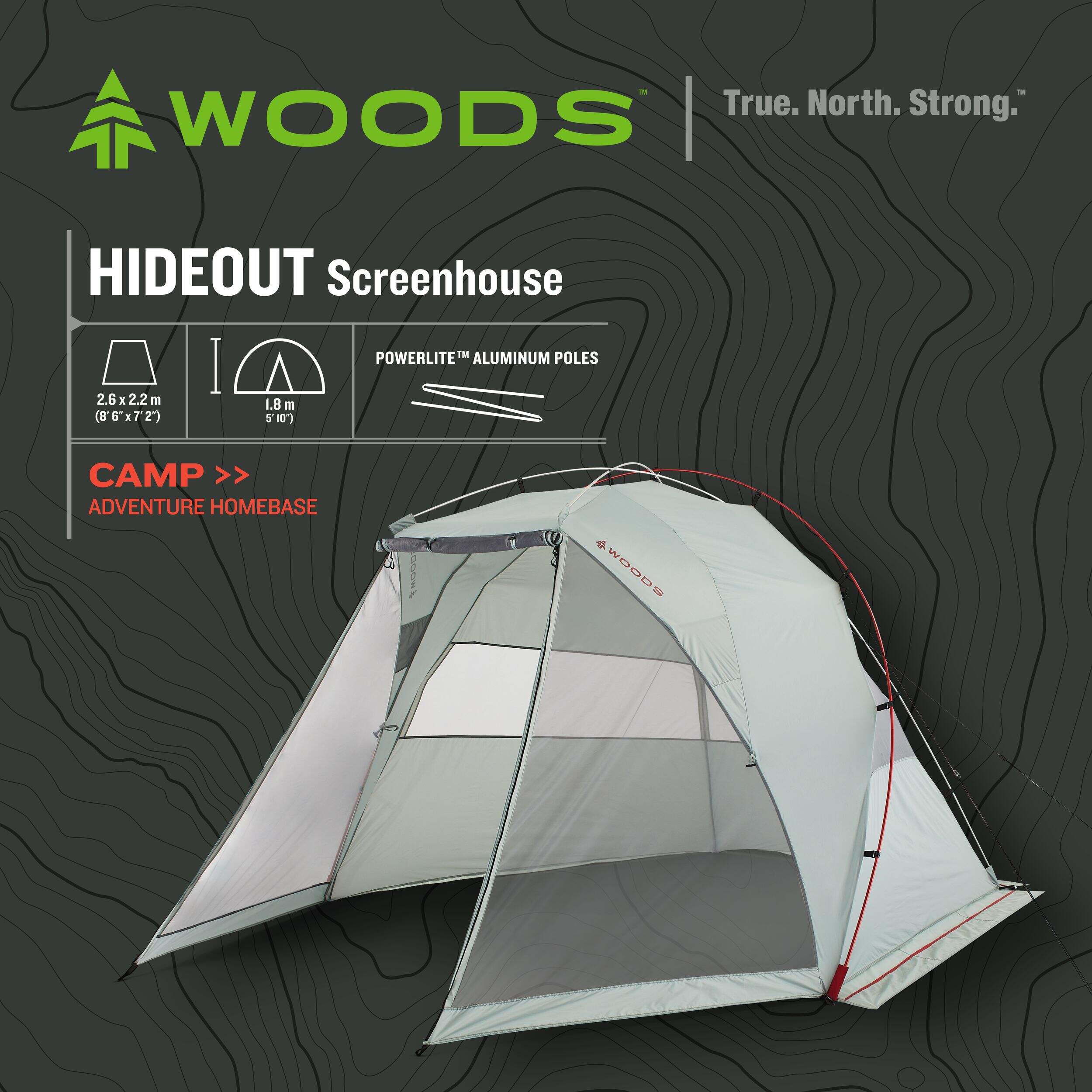 Escape the elements and enjoy the outdoors with the Woods Hideout Screenhouse. This lightweight 2-person screenhouse features a no-see-um mesh front for superior bug protection so you can relax in comfort. Convenient interior pockets provide storage for personal items. When your camping trip is over, simply collapse the frame and pack the screen house away in the included carry bag.