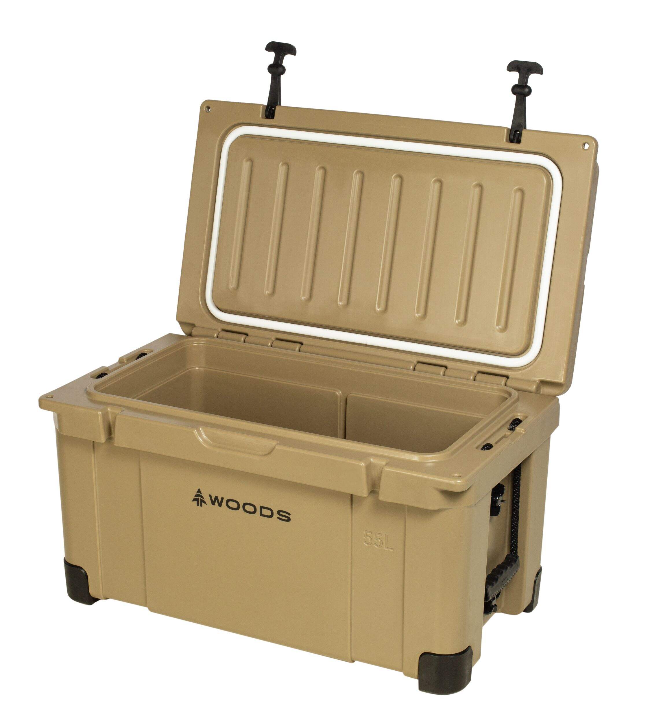 The Woods Arctic Roto-Moulded Cooler offers exceptional ice retention and rugged durability, making it the ideal cooler for extended outdoor adventures. This 55-litre cooler features high-density foam insulation to keep contents cold for days. Its tough roto-moulded construction in a neutral tan colour is designed to endure harsh outdoor conditions. Equipped with heavy-duty latches and an integrated drain plug, this cooler provides convenience and reliability.