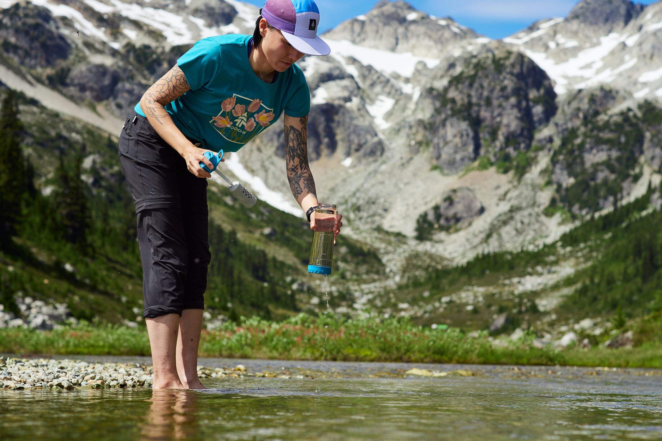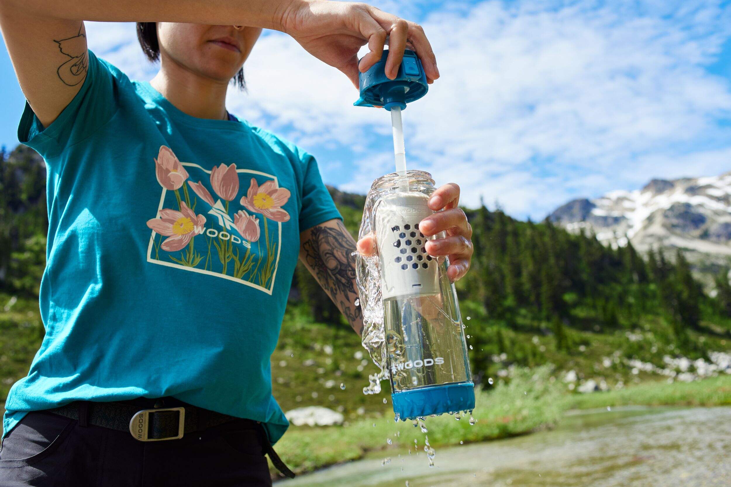 Woods BPA-Free Camping Water Bottle with Filter is durable, BPA-free Tritan® water bottle with removable filter and straw