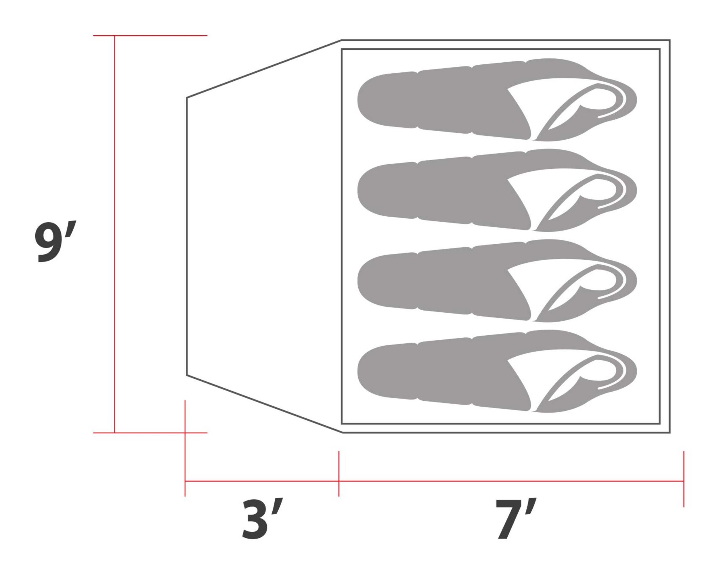Dimensions: 9' x 7' x 4' 9" (2.7 x 2.1 x 1.3 m)