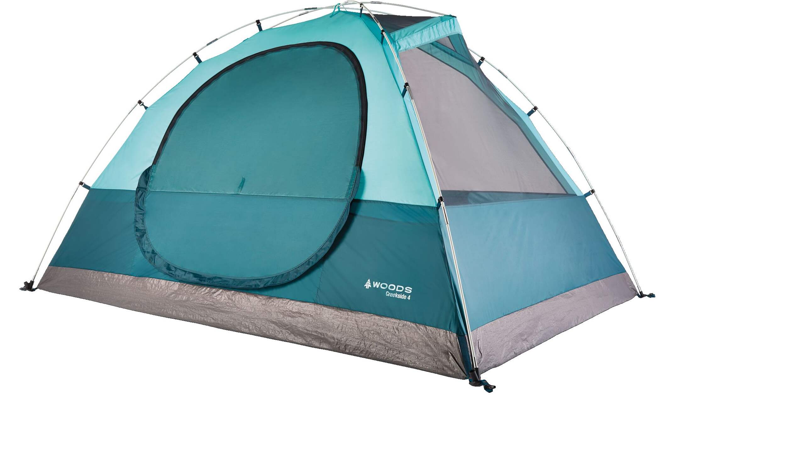 The Woods Creekside 3-Season, 4-Person Dome Tent is your ideal camping companion for reliable comfort and protection in the great outdoors. Featuring a superior 1200mm water-resistant coating and taped seams on the rain fly, this tent keeps you dry even in unpredictable weather. An extended awning offers added shelter from the elements, while the large door opening provides easy access. Enjoy bug-free ventilation with large no-see-um mesh panels which enhance airflow and keep pesky insects out. With room for up to four people, this spacious dome tent makes outdoor adventures more enjoyable for everyone.