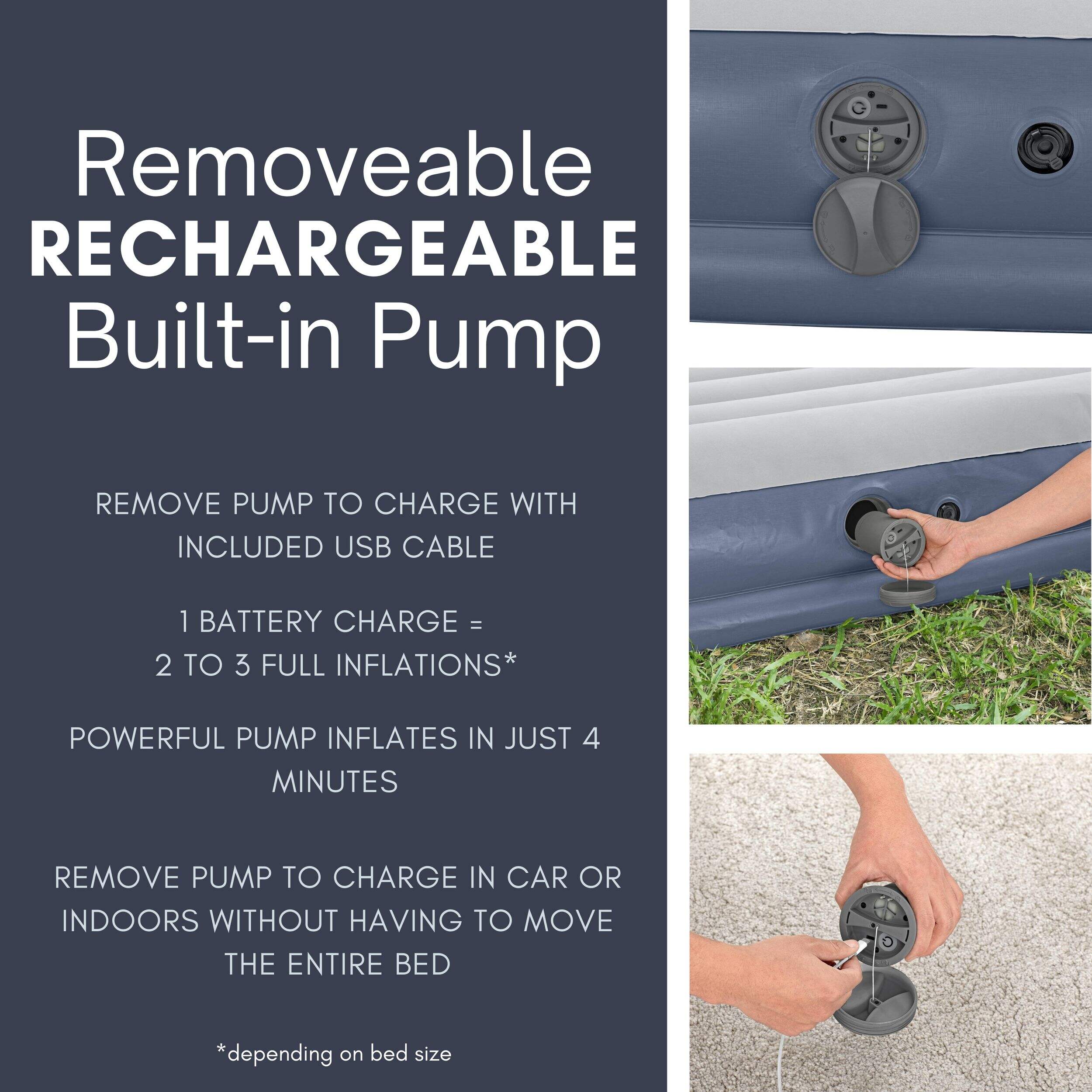 Conveniently removable pump for easy recharging via the included USB cable