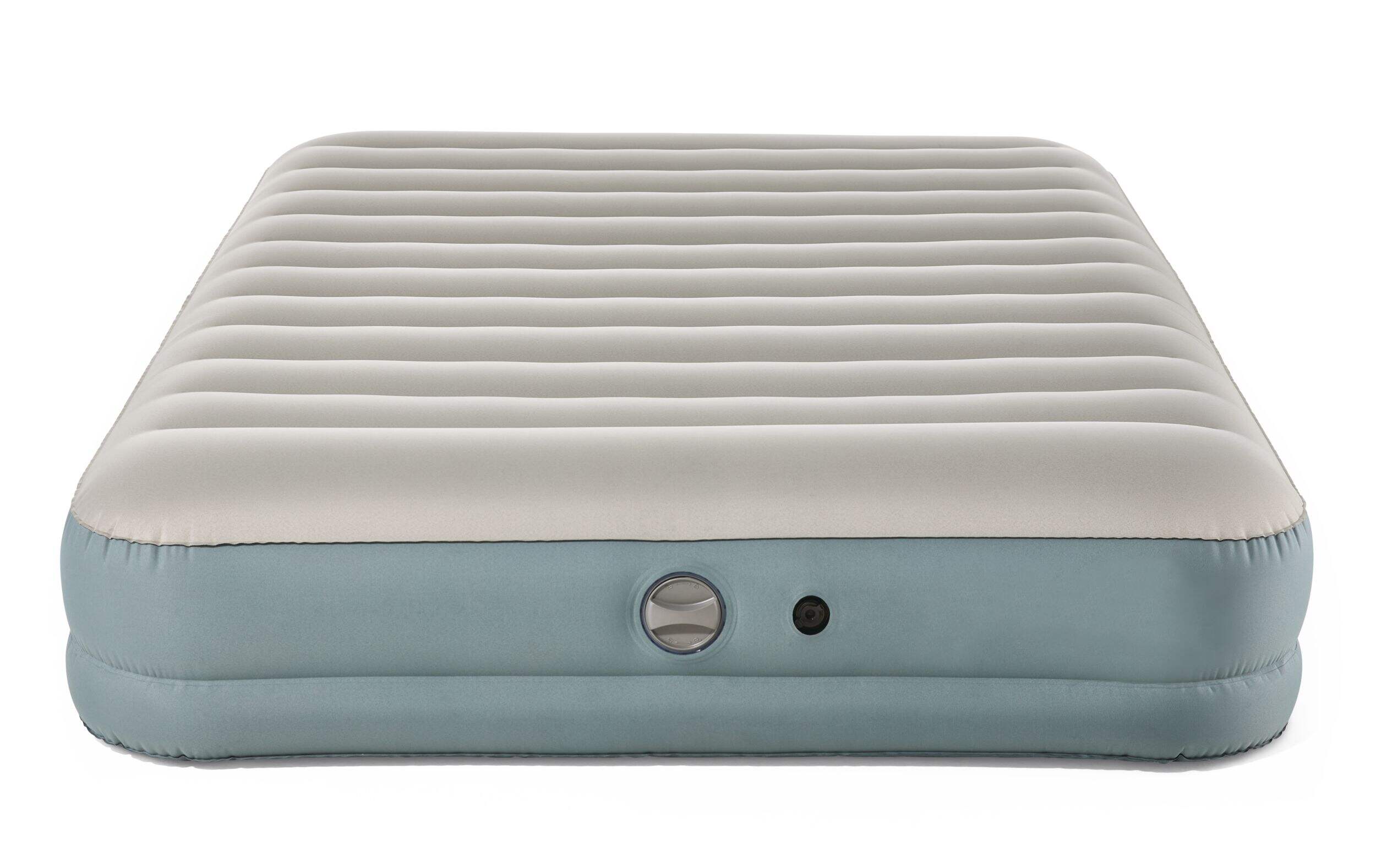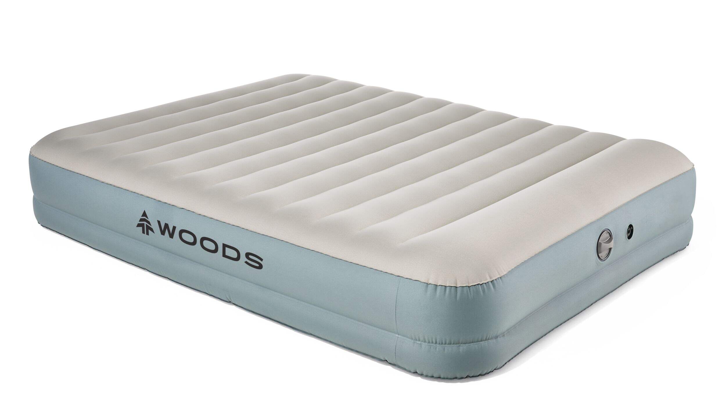 The Woods High Queen Toughguard Inflatable Air Bed offers durable comfort for both indoor and outdoor use. Inflate or deflate the air mattress in minutes with the built-in rechargeable pump. A single battery charge allows for two full inflations, ensuring convenience for extended trips. Lightweight and easy to transport, this air bed is designed with an integrated pillow for extra comfort, making it the ideal choice for camping, travel, or home use.