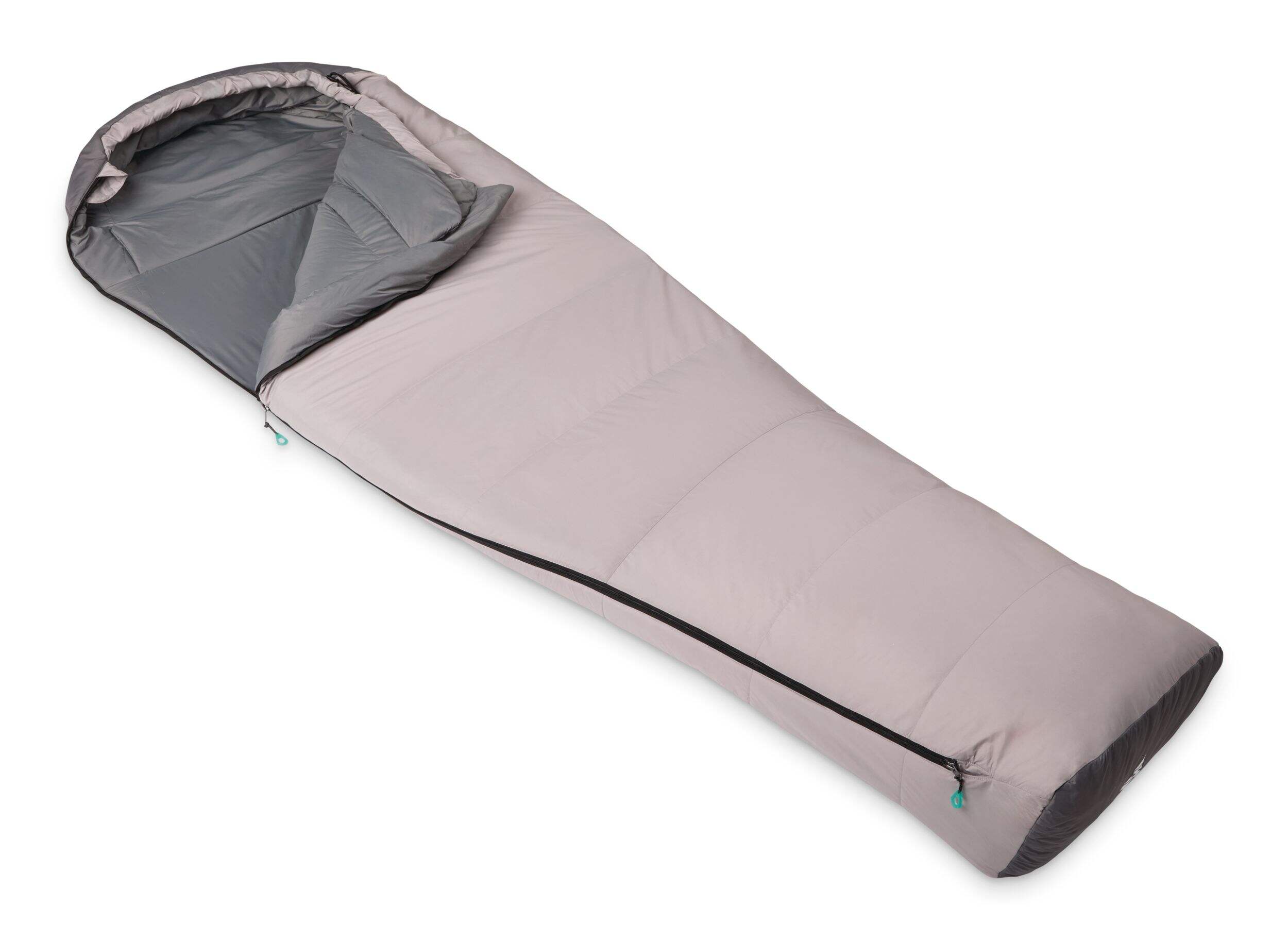 The Woods Down-Hybrid Insulated Mummy Sleeping Bag ensures a warm, comfortable night's sleep even in cooler climates. Designed with a snug fit, it retains heat efficiently, offering adjustable comfort with its full-length zipper.