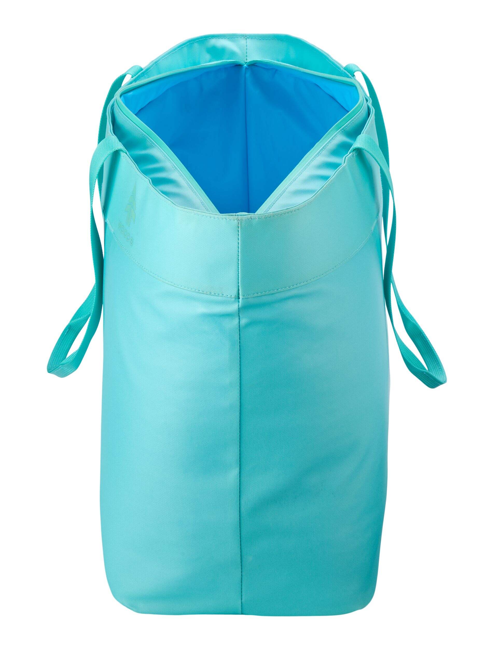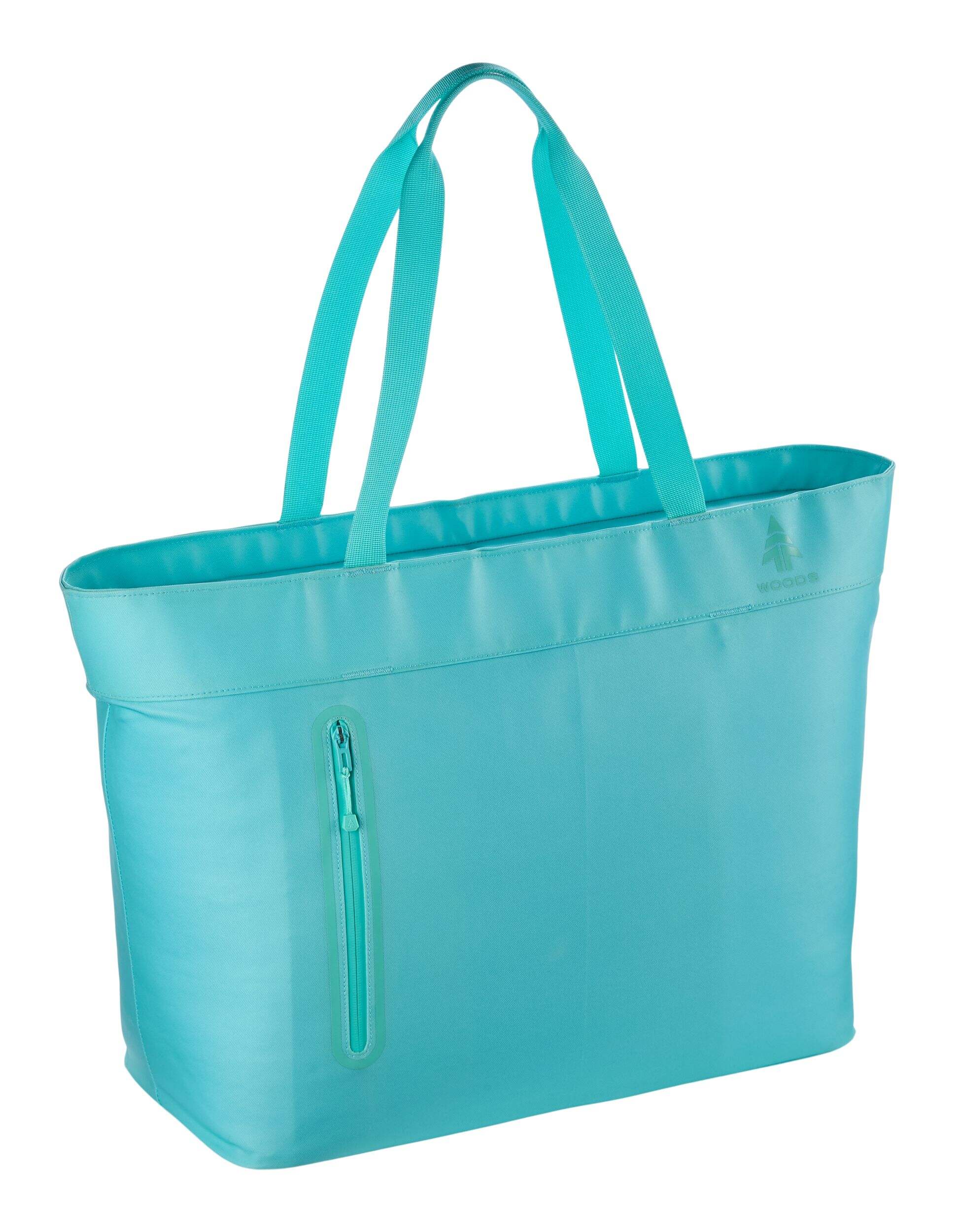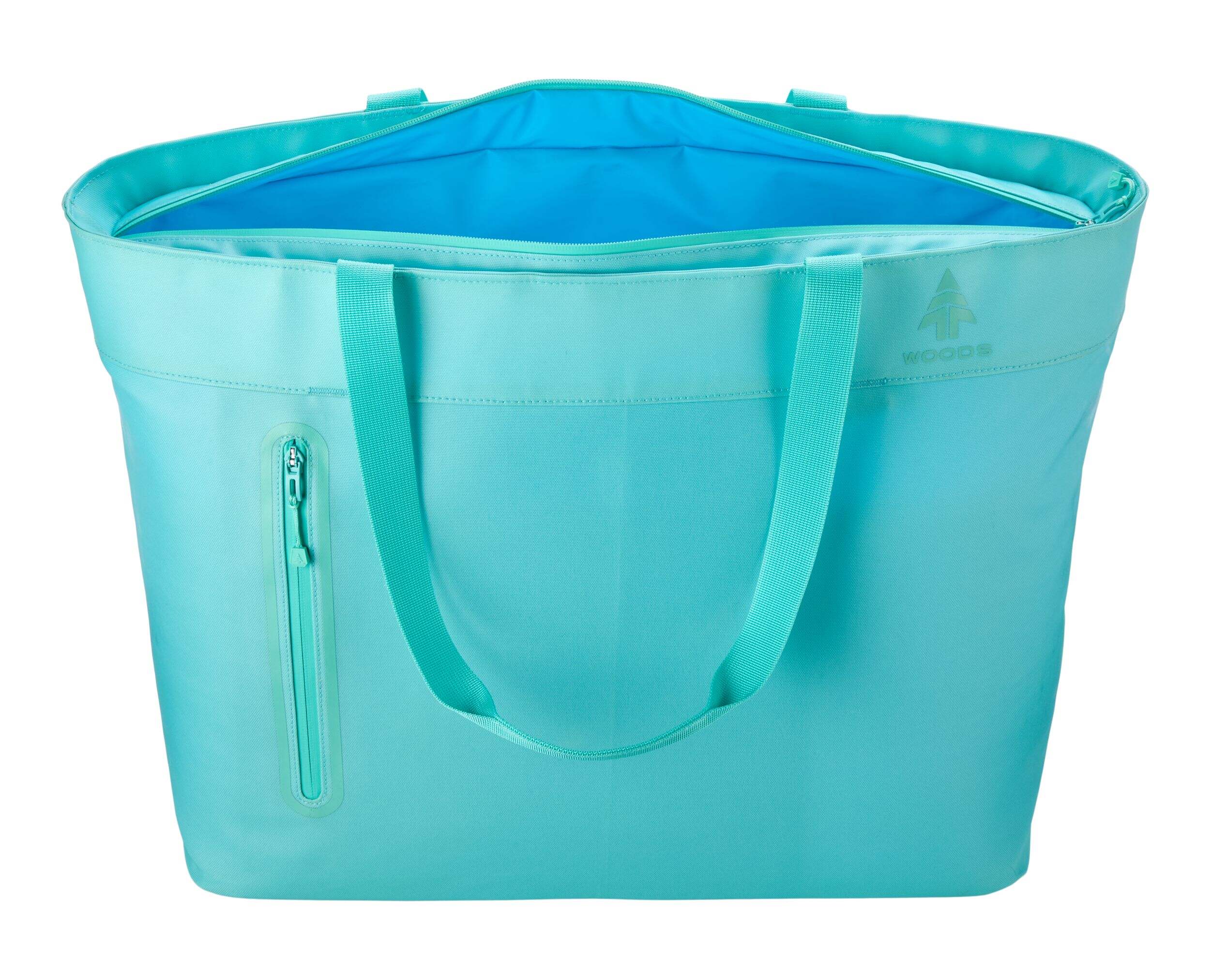 The Woods Nordic Insulated Folding Soft Cooler Tote holds up to 50 cans. Its insulated, leakproof build makes it ideal for picnics, hikes, and camping. Plus, exterior zipped pockets offer convenient storage for small items.
