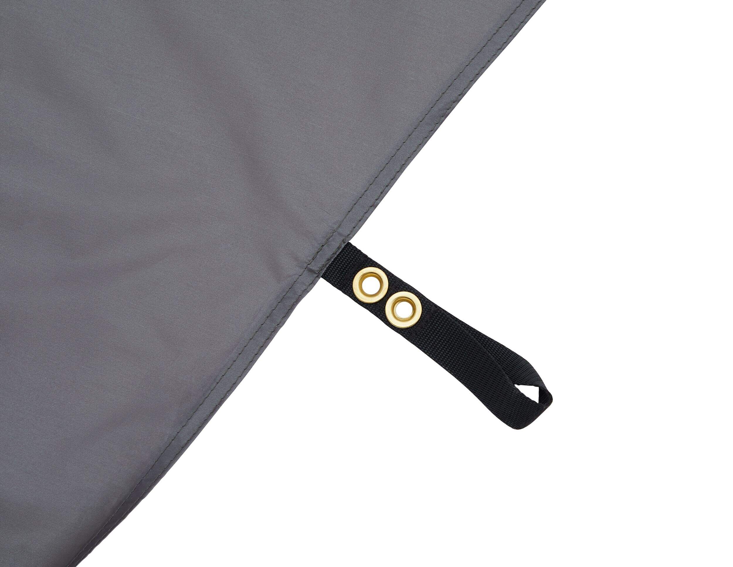 Brass eyelets aligns with the tent poles to ensure a snug fit under your tent