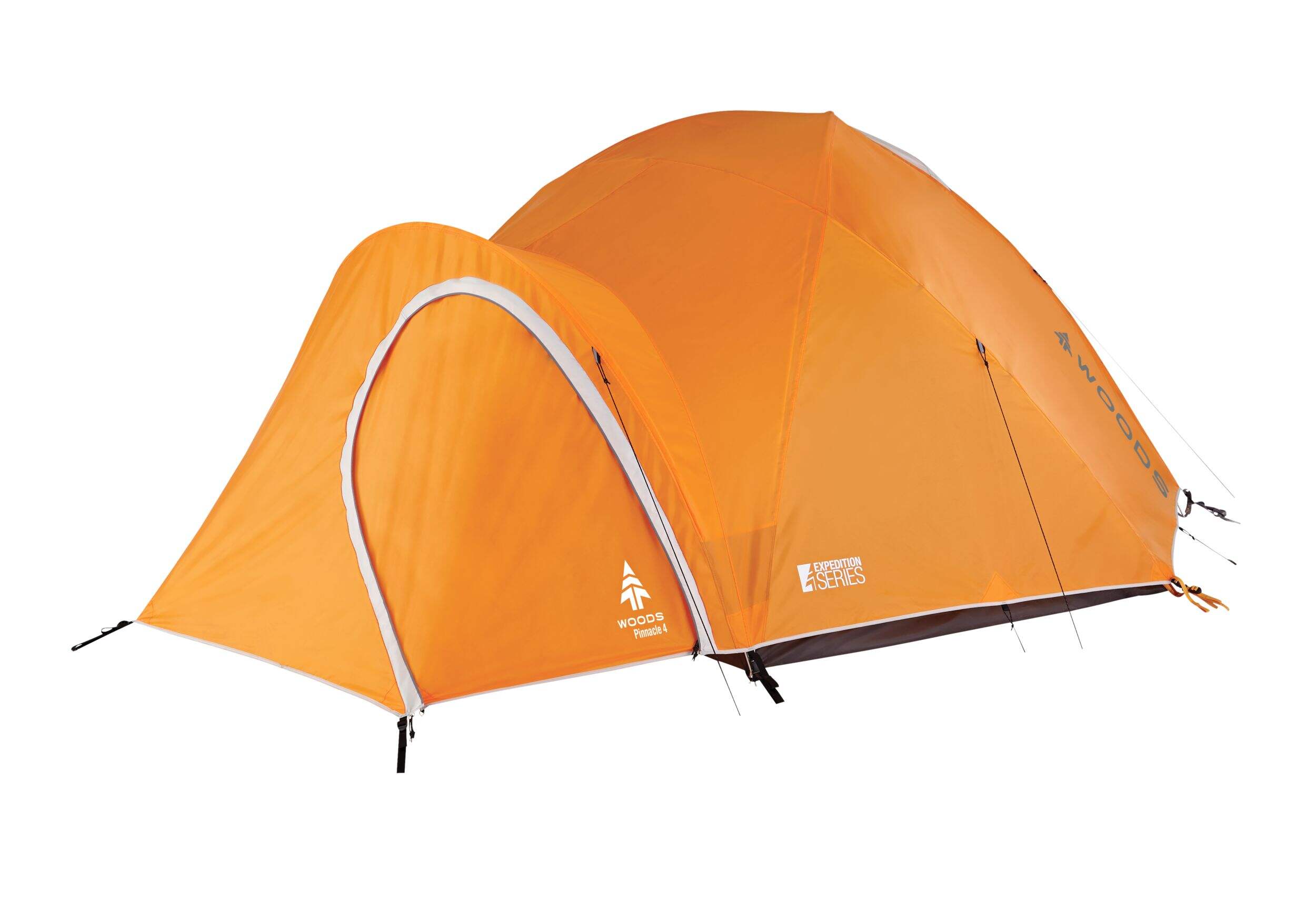 The Woods Pinnacle 4 Tent is an adventure-grade shelter that performs in the backcountry for all four seasons. If the weather turns south, the Pinnacle has you covered with a water-resistant floor and fly, and taped seams to seal out water. It sets up quickly, and tears down quicker, ensuring your pack stays light with POWERLITE™ aluminum poles that don't compromise on strength. An extended vestibule shelters you while you're getting in and allows you to stash gear out of the rain or keep wet boots outside to dry. Our most technical tent, grab the Pinnacle when performance matters on multi-day hikes or for minimalist camping experiences.
