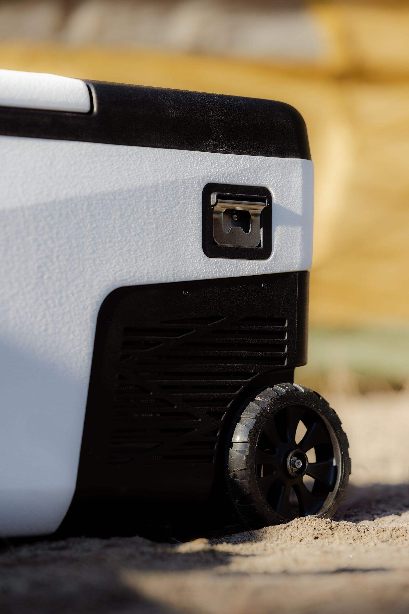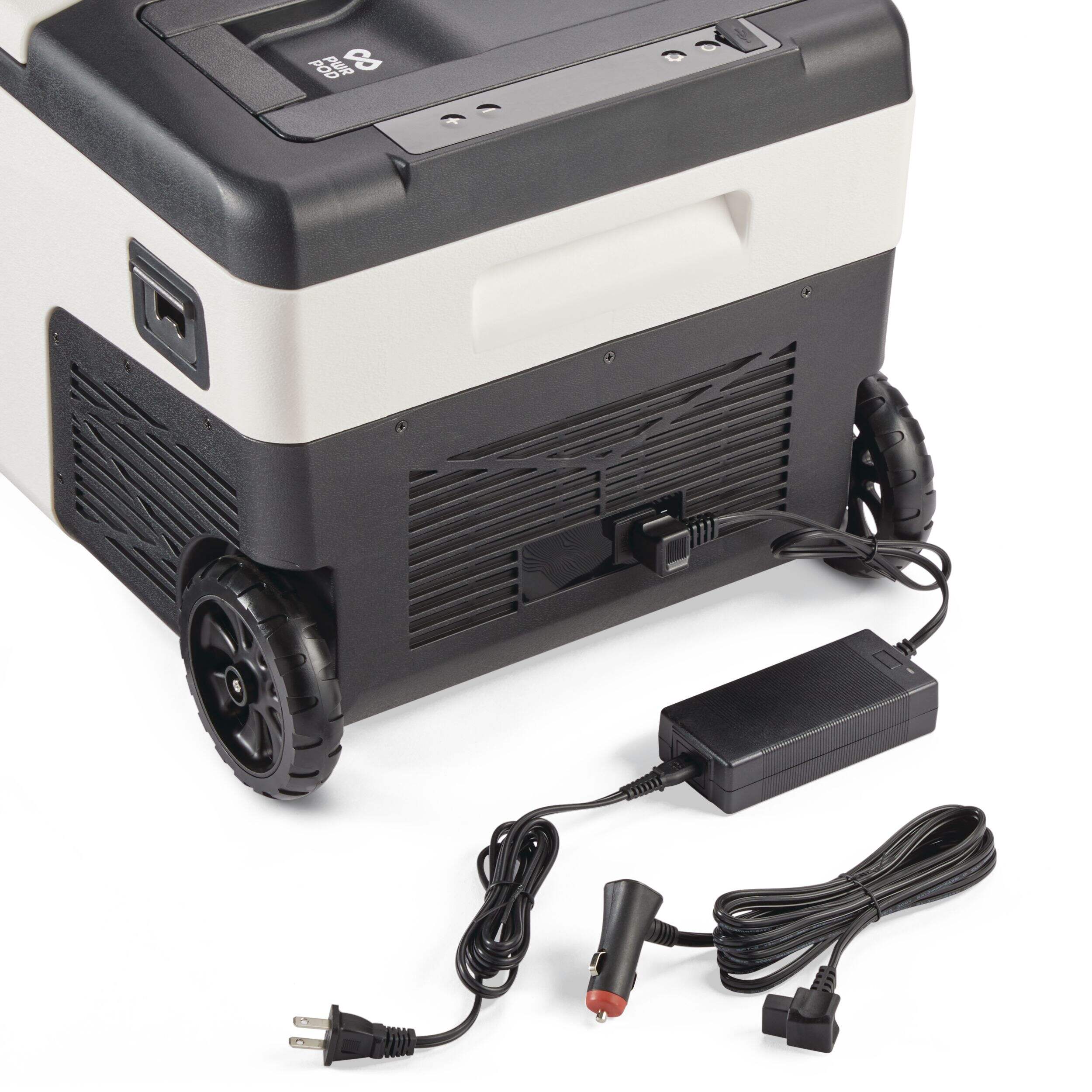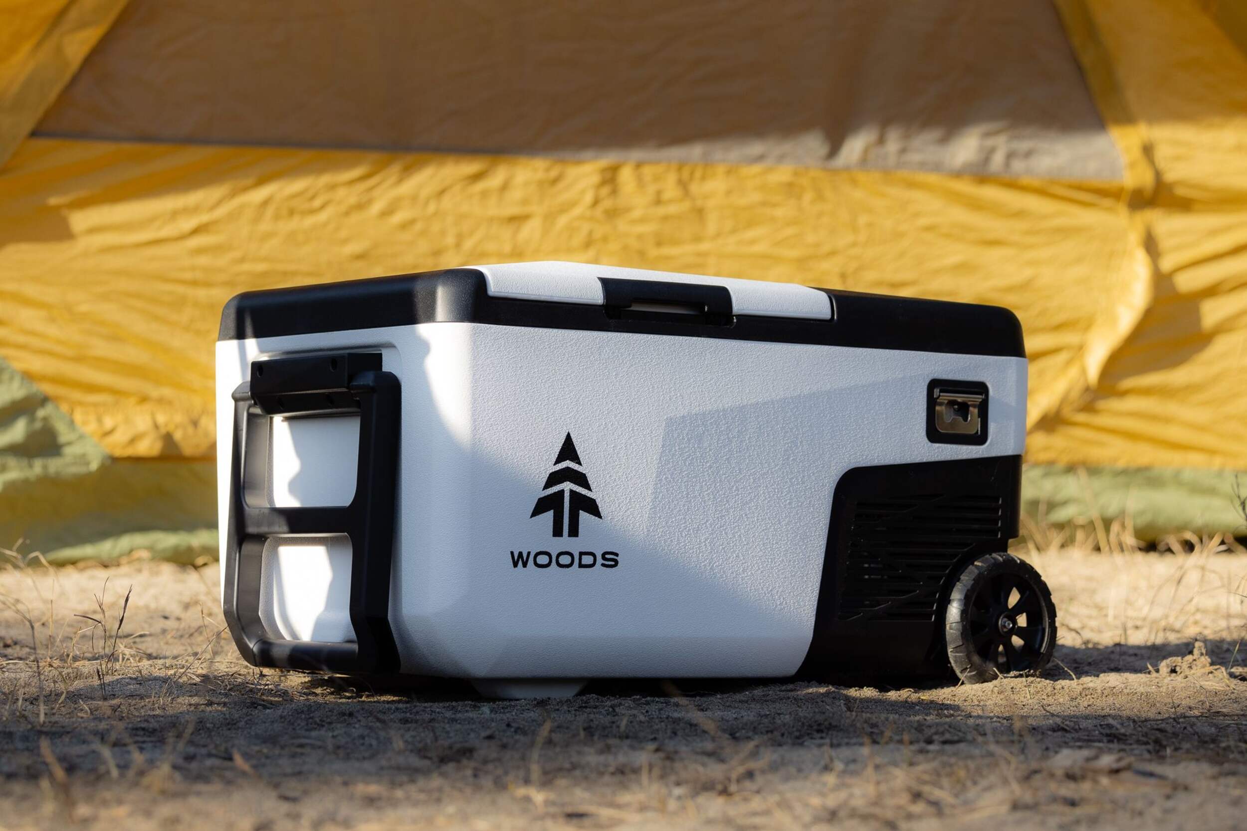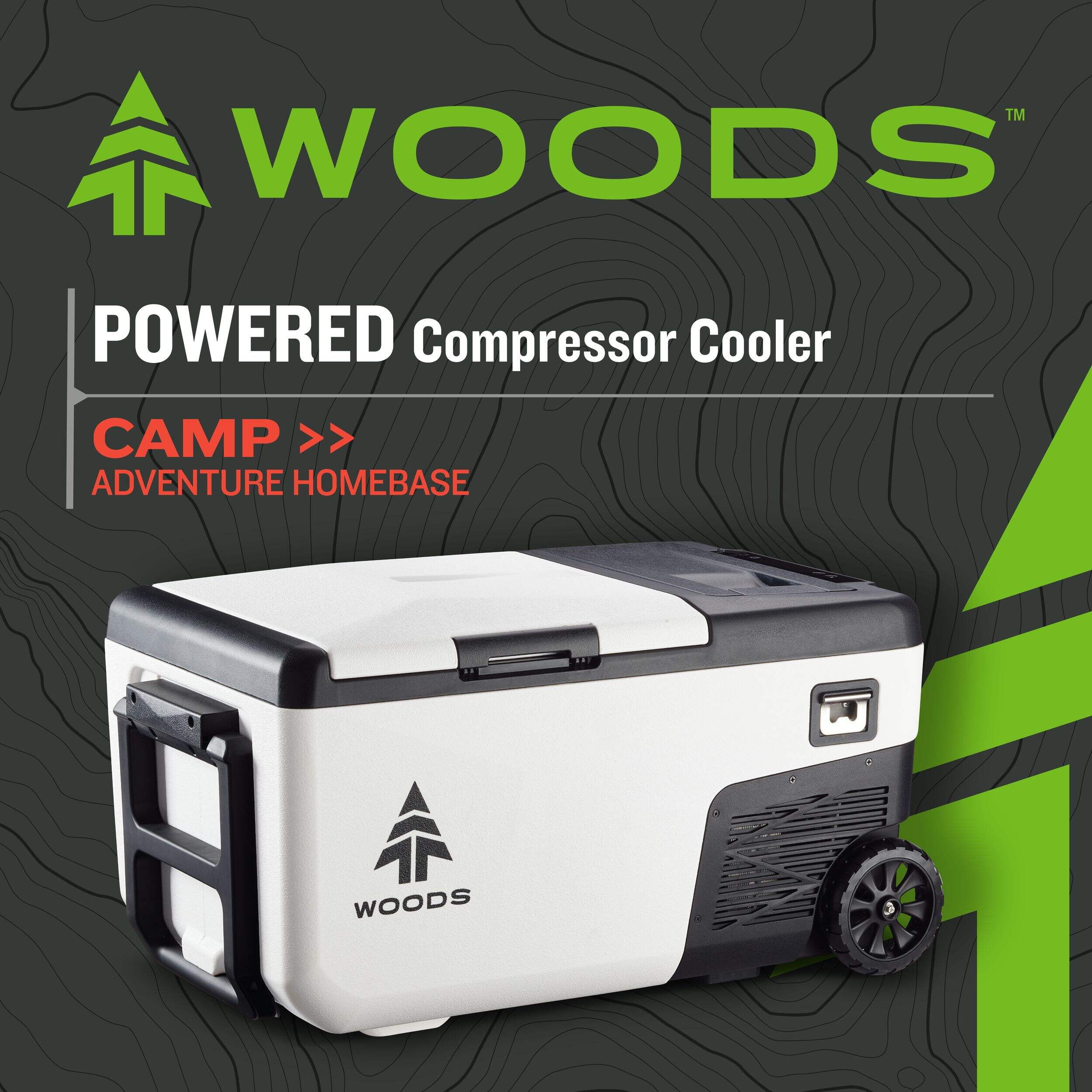 Keep the party chilled wherever adventure calls with this Woods Wheeled Portable Electric Compressor Cooler. Its generous capacity stores up to 32 cans, keeping drinks frosty cold for tailgating, camping trips, backyard hangs or any time beverage cravings strike. When it's time to hit the road, the collapsible handle and smooth-rolling wheels let you maneuver this cooler with ease.