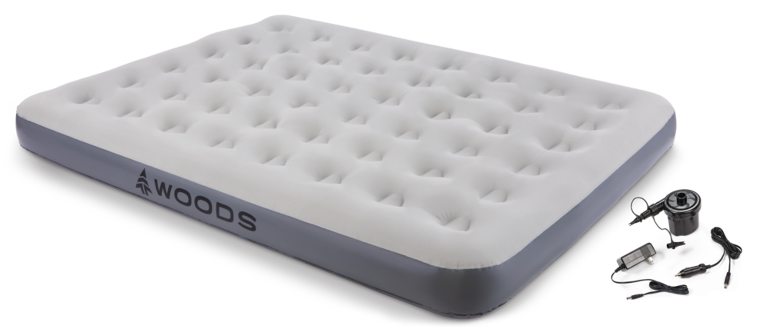 The Woods Double-Size Single-High Inflatable Air Mattress is the perfect choice for both indoor and outdoor sleeping needs. Featuring a 2-in-1 pump compatible with both AC outlets and car adapters, this mattress offers quick inflation and deflation for maximum convenience. The durable, puncture-resistant material and single-high design provide a comfortable and stable sleeping surface, making it ideal for camping trips, road trips, or overnight guests.