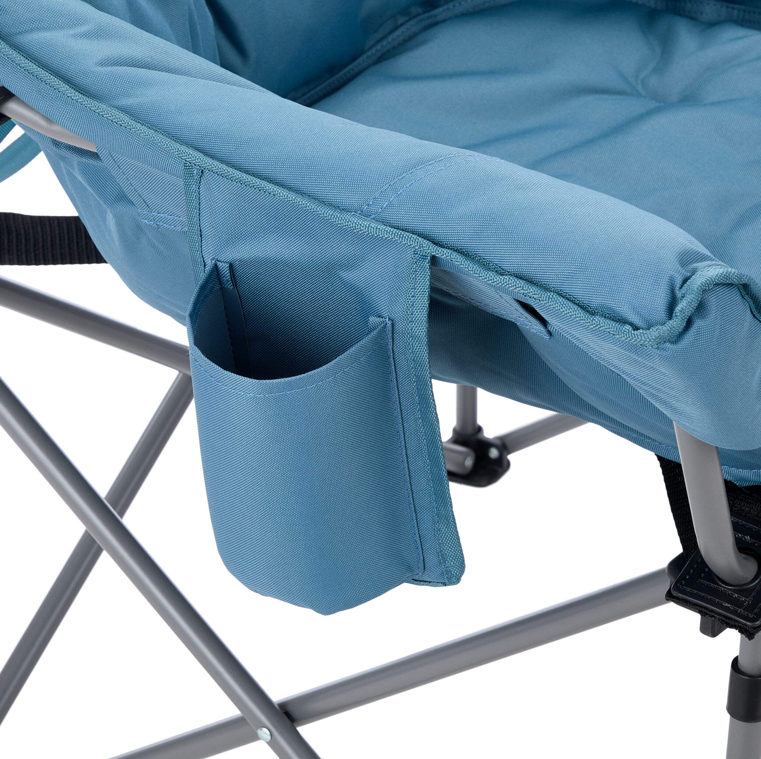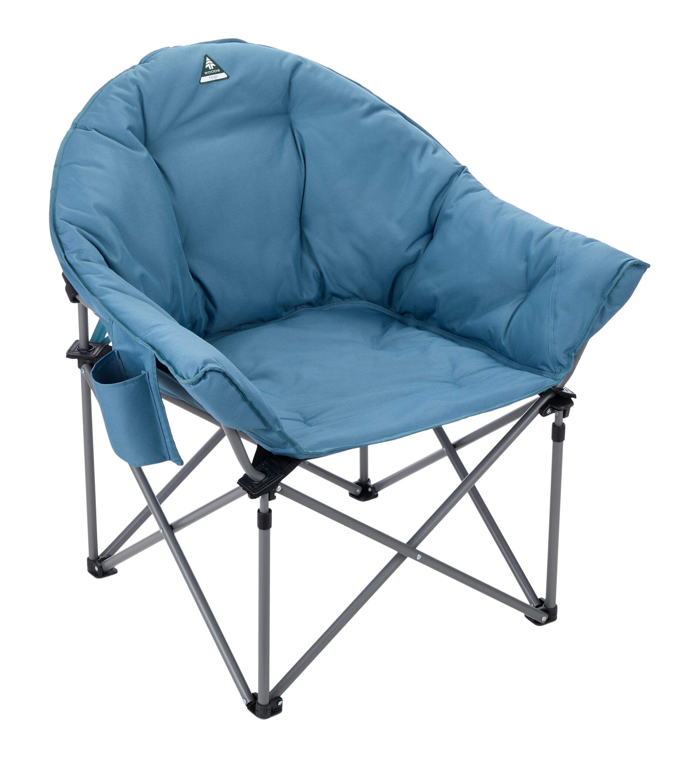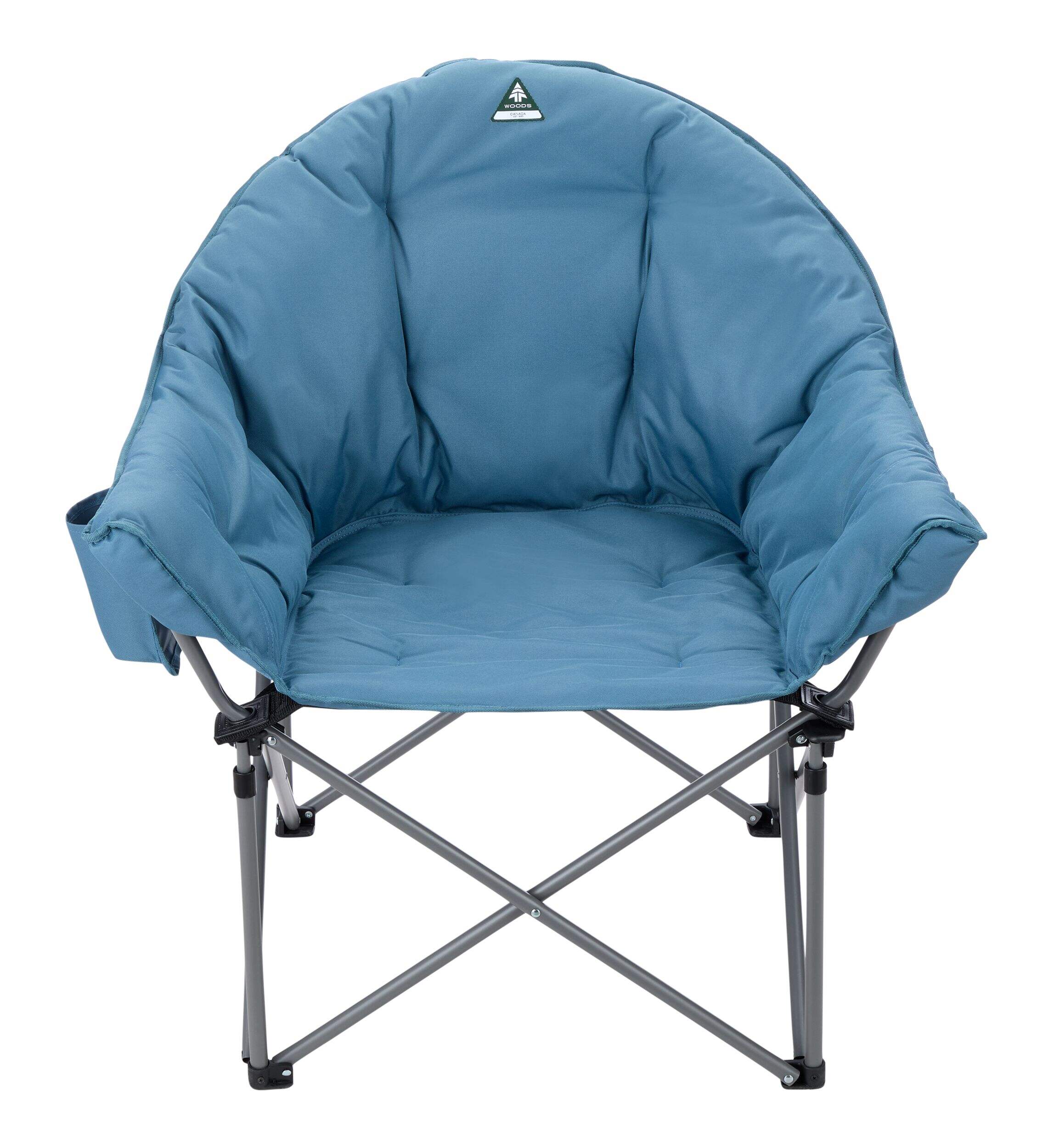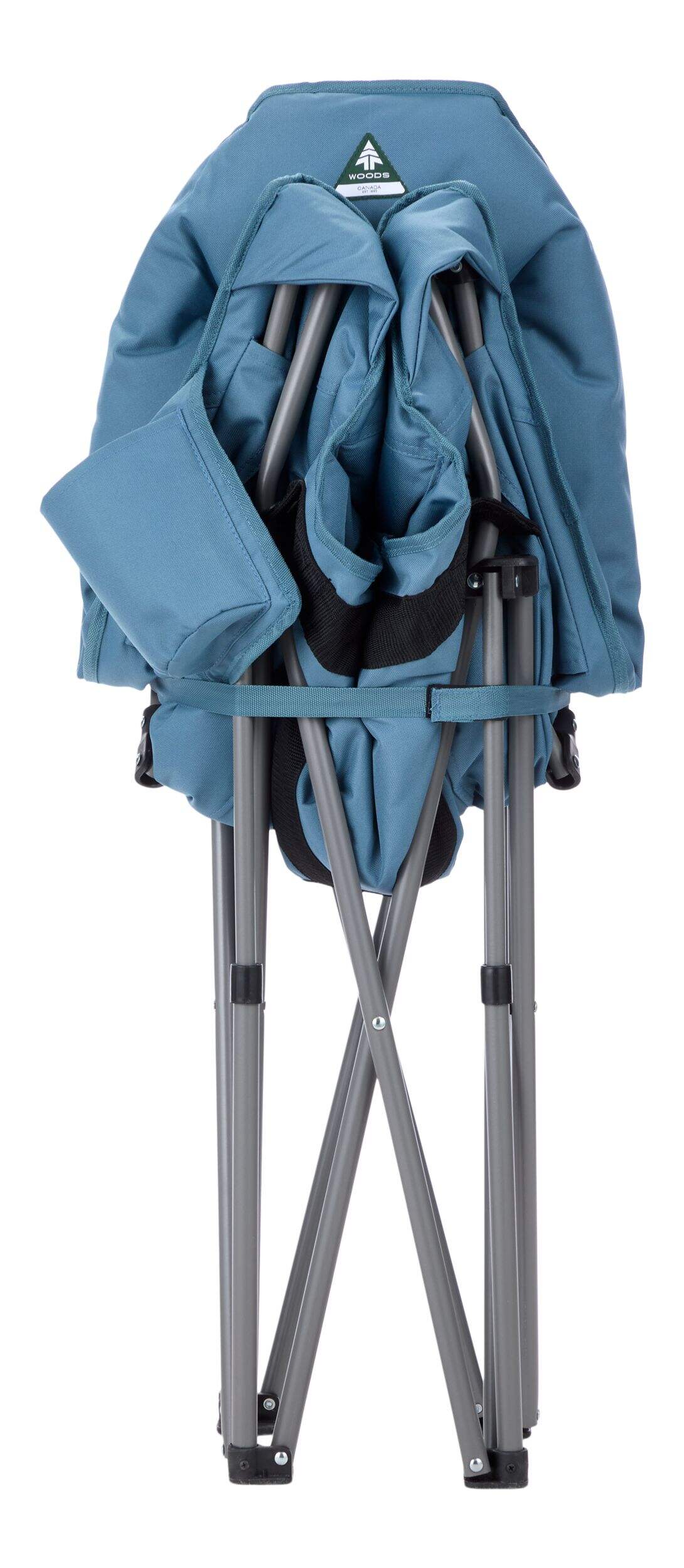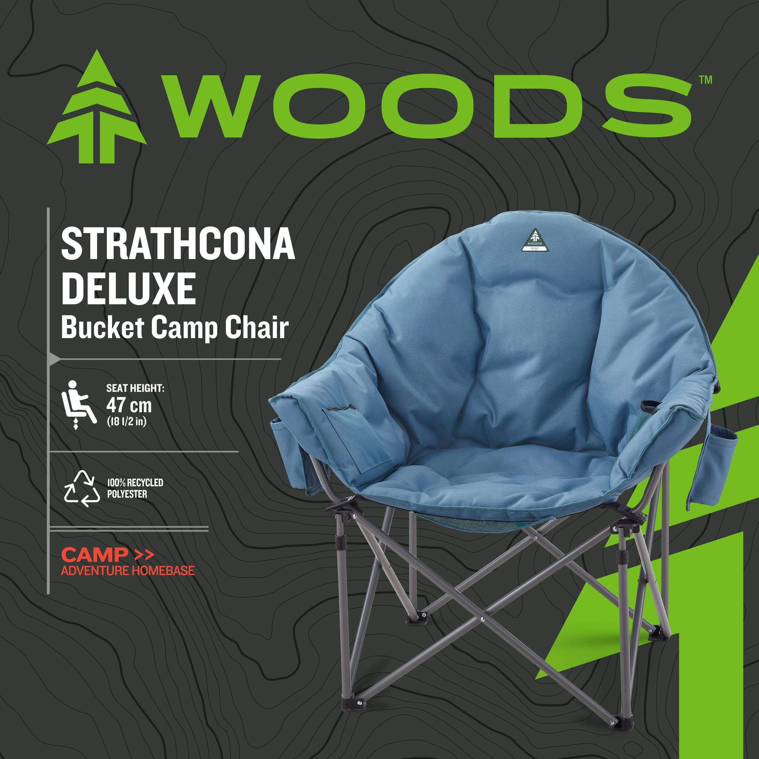 The Woods Strathcona+ Deluxe chair features a rust-resistant metal frame and durable 100% recycled polyester fabric that supports up to 300 lbs. Its unique folding bucket design packs down compactly for easy portability. With its sturdy construction, handy storage, and emphasis on comfort, this portable camping chair delivers exceptional quality and convenience.