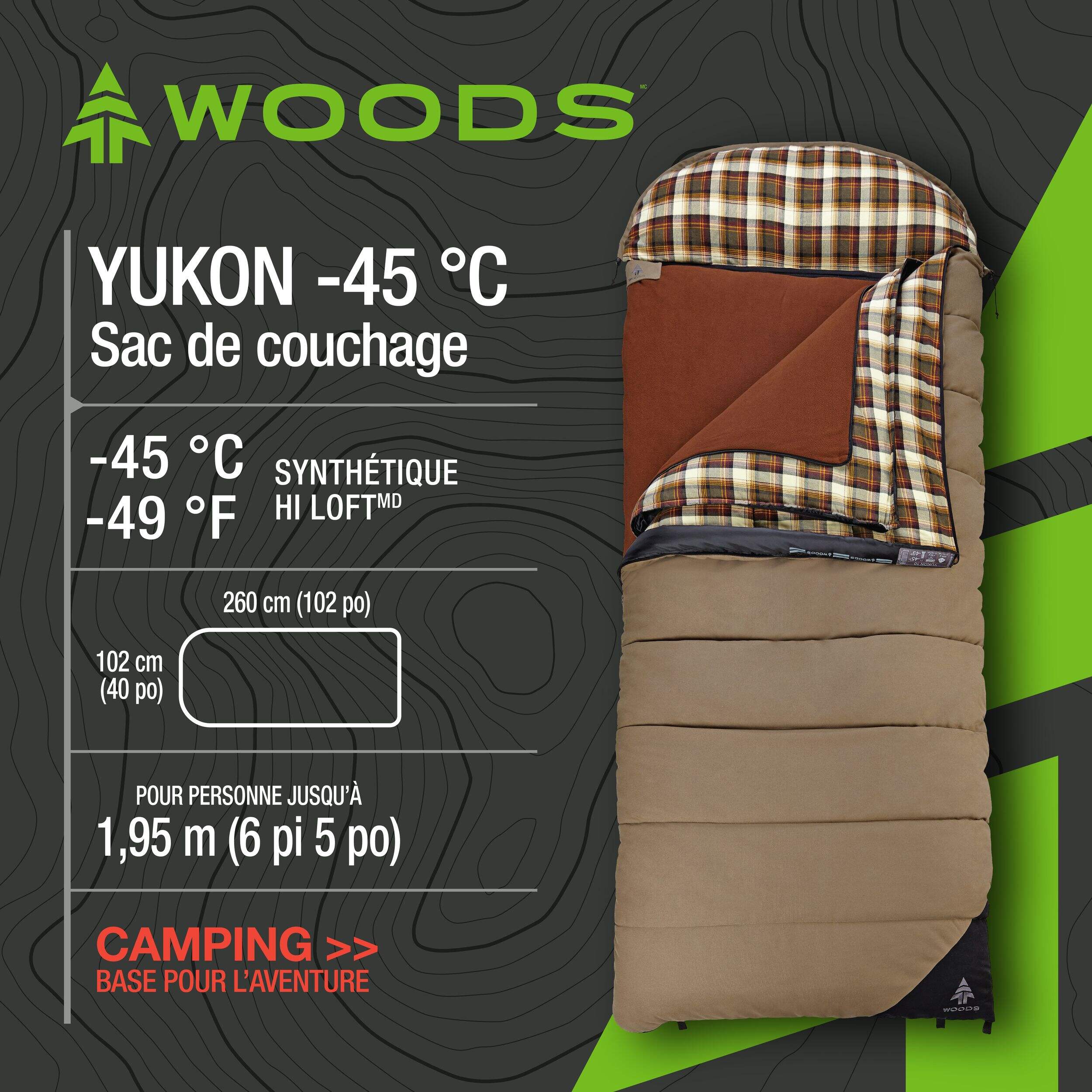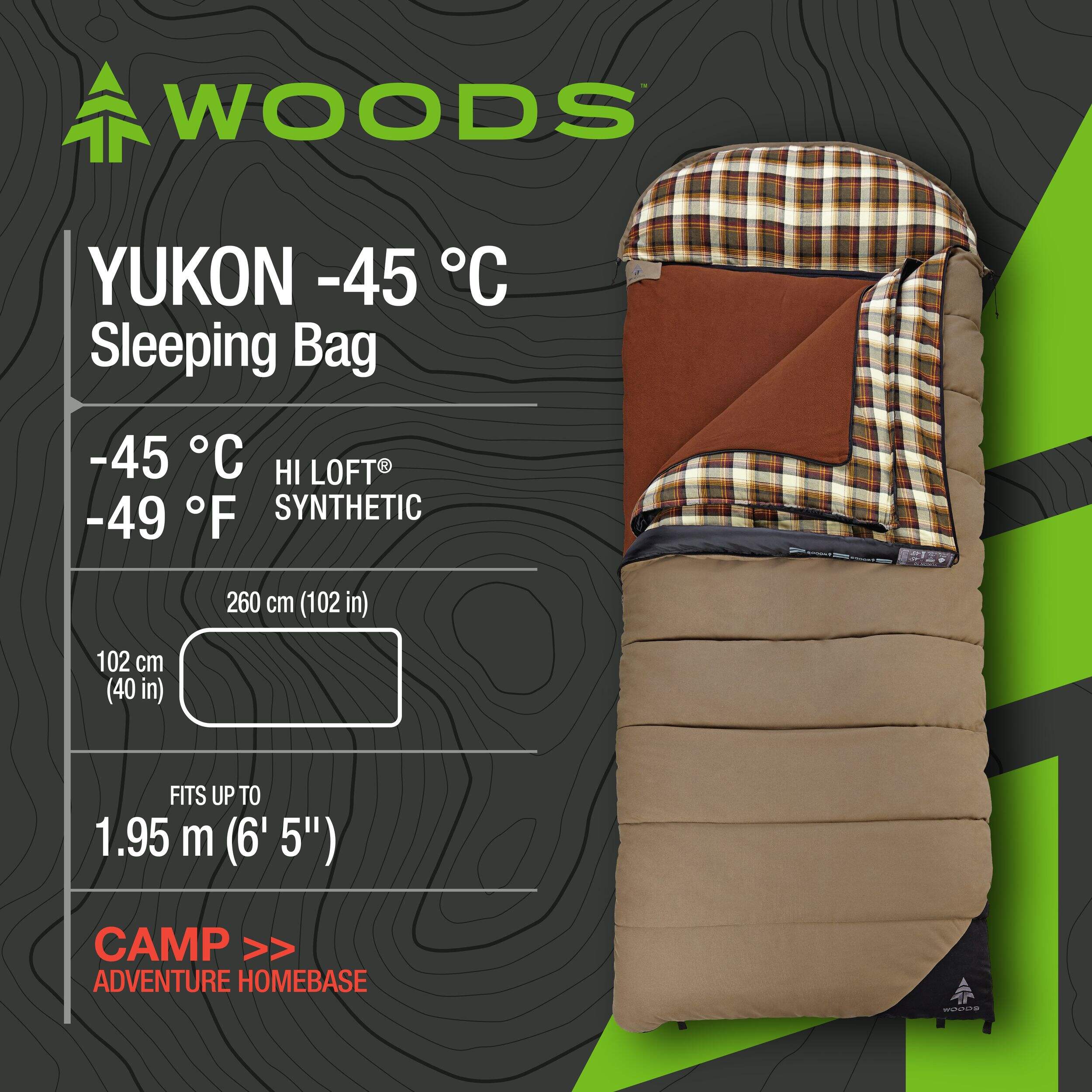 The Woods™ Yukon 10 Insulated Cotton Canvas 5-in-1 Cold Weather Sleeping Bag is built for adventurers who need versatility and warmth in harsh conditions. This sleeping bag is great, whether you’re embarking on four-season camping or braving extreme winter temperatures. Use it as a single sleeping bag for extreme cold, as three separate bags for adjustable warmth, or as a spacious double-wide bag for comfort and room to stretch. Easy to pack and carry, this sleeping bag comes with a duffel bag, making it a practical choice for any cold weather adventure.