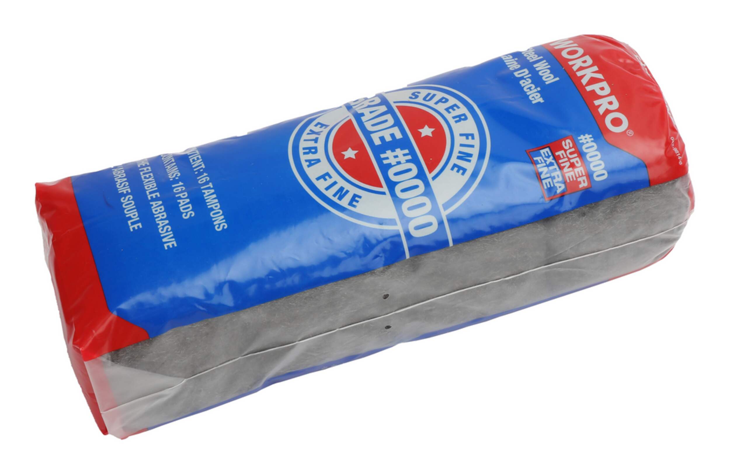Workpro Steel Wool Pads help smooth shellac, lacquer, and varnish before applying the final top coat