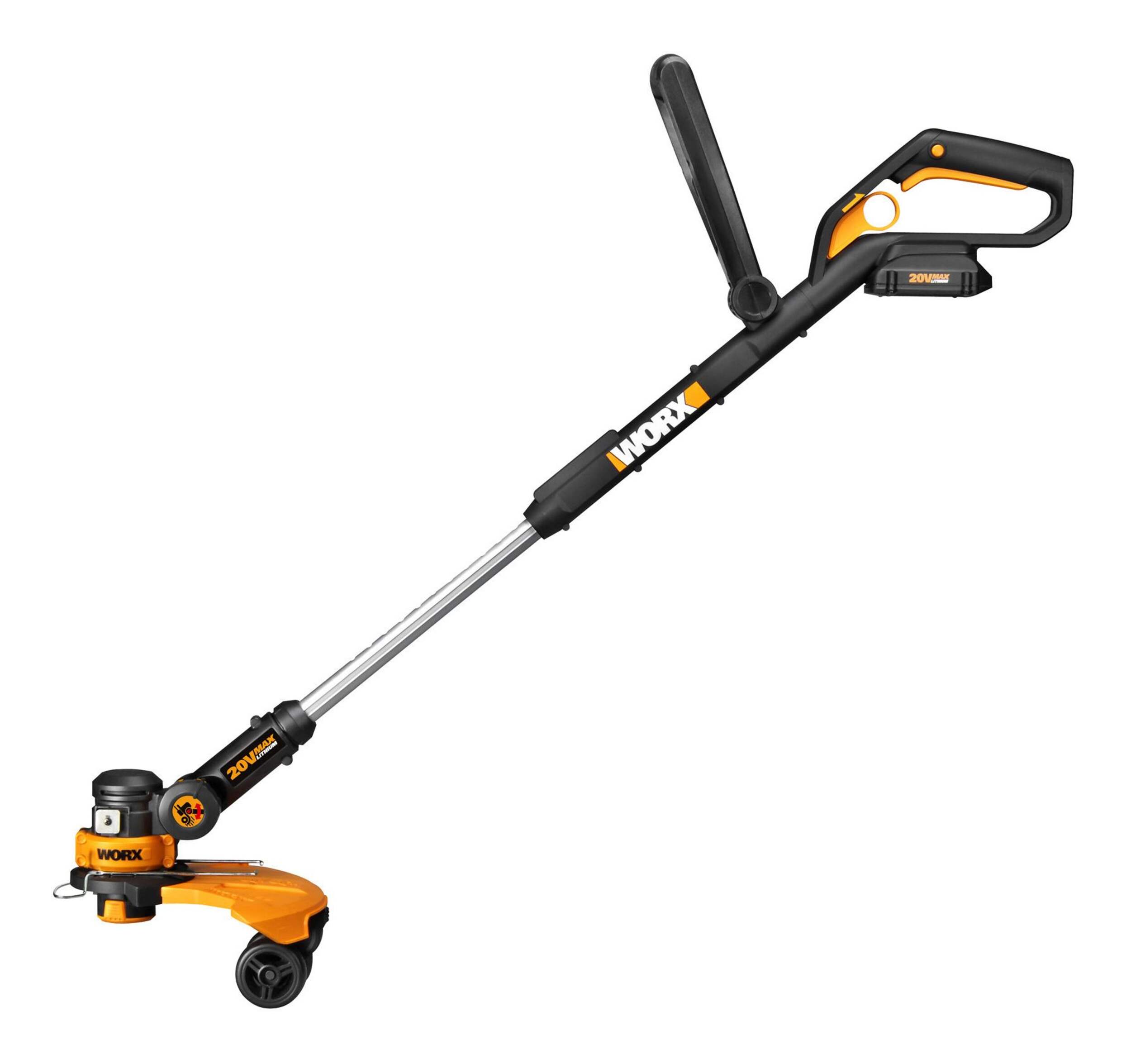 WORX 20V 3-in-1 Grass Trimmer features a versatile design with in-line wheeled edging and mini-mower capabilities