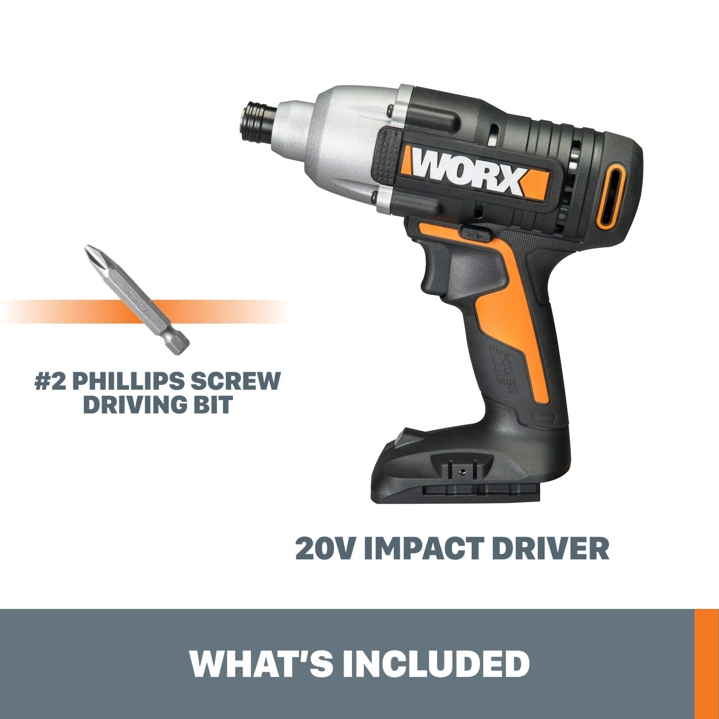 WORX 20V Li-Ion Impact Driver features a powerful but slim impact driver designed to be both comfortable to use and able to fit into tight spaces