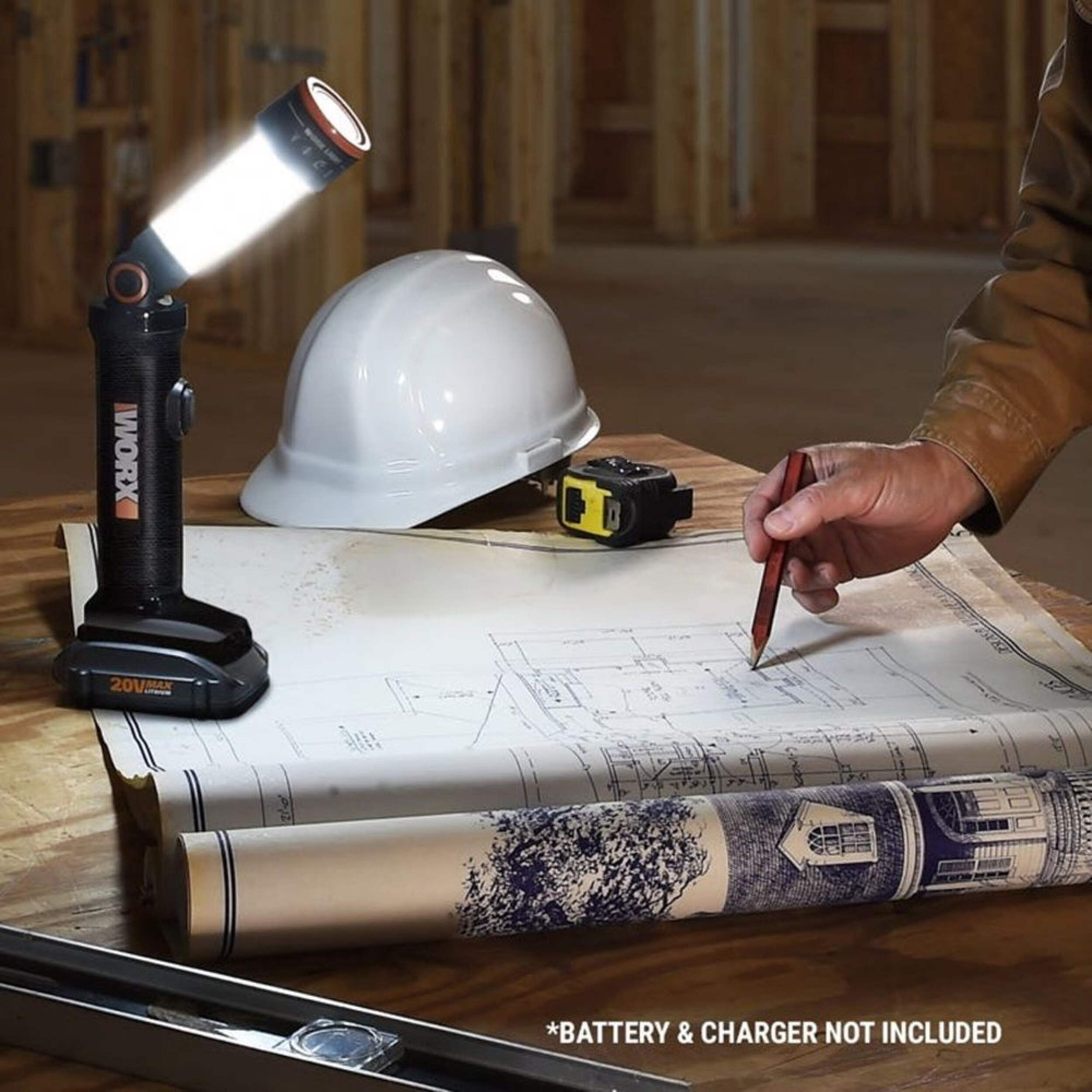 The WORX 20V Multi-function LED Light is a versatile lighting solution designed for adaptability. With its compact, telescoping design, it caters to varying work conditions. It offers four lighting functions: a flashlight, a 360-degree lantern, a desk lamp with high and low settings, and an emergency light. A single switch allows easy toggling between functions, while a press and hold action turns off the light. Plus, the pivoting head adjusts to offer optimal illumination. Included are a carry lanyard and hook. The light has a 50,000-hour burn time and is compatible with any WORX 20V battery. Battery and charger are sold separately.