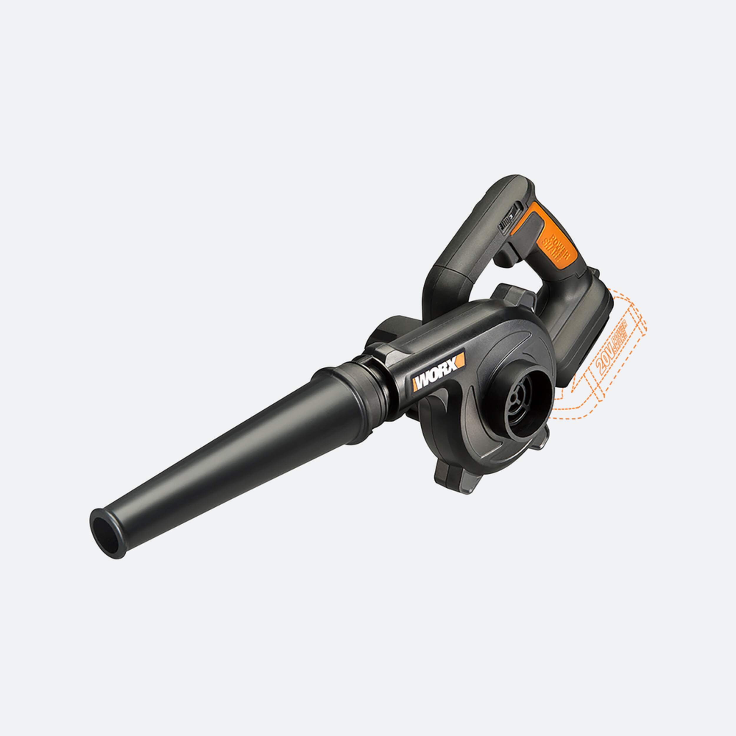 WORX Cordless 3-Speed Jobsite Blower clears debris from your workshop, garage, sawhorses, and tools quickly and with less fatigue