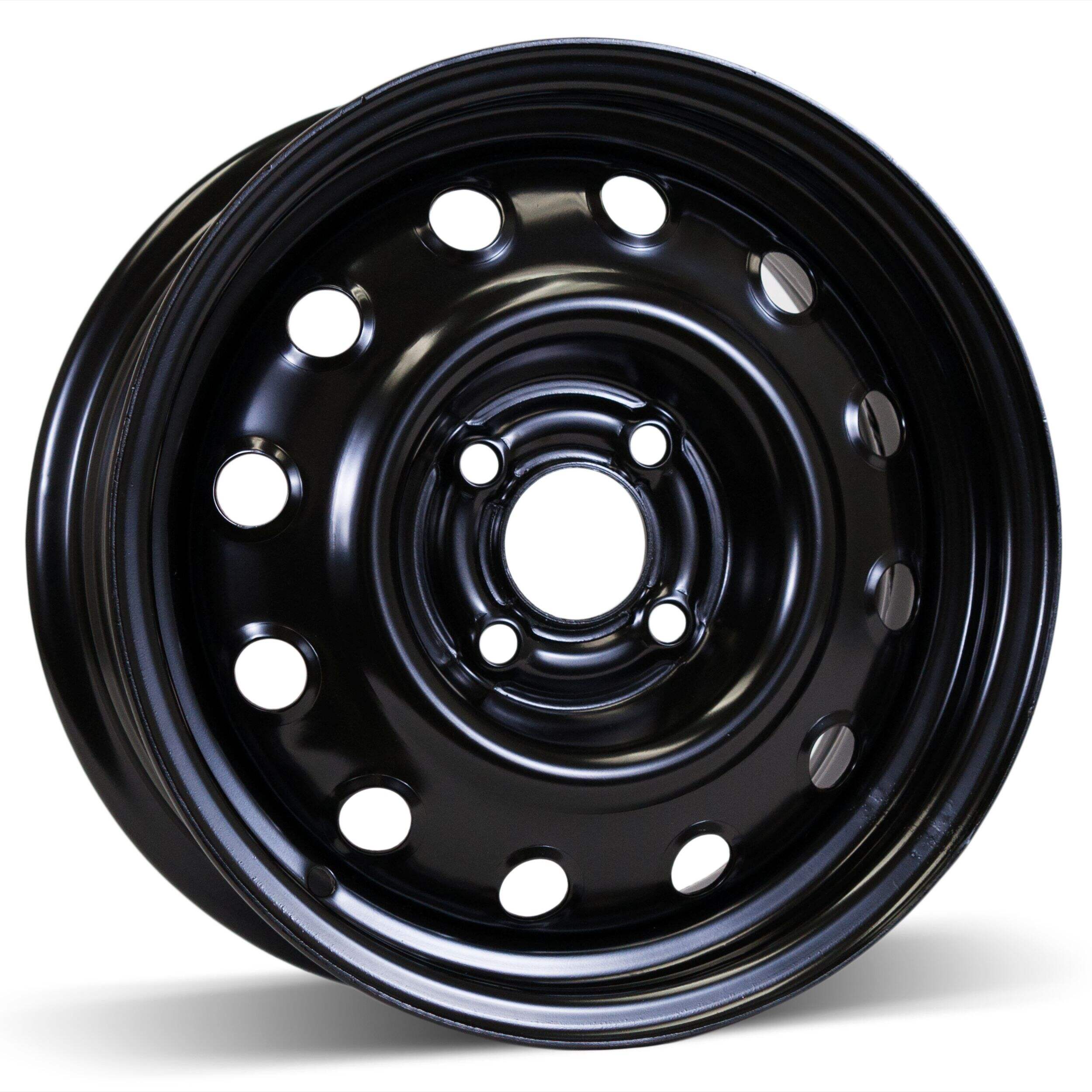 The RSSW Macpek Steel Wheel/Rim, in classic black, is engineered for a factory original fit. Its exterior finish is resilient, making it a fitting choice for harsh winter conditions. The design facilitates time-saving during the annual cycle of mounting and dismounting. Please note, however, that the lip of this wheel might differ from the original manufacturer's design, potentially affecting compatibility with original equipment wheel covers.