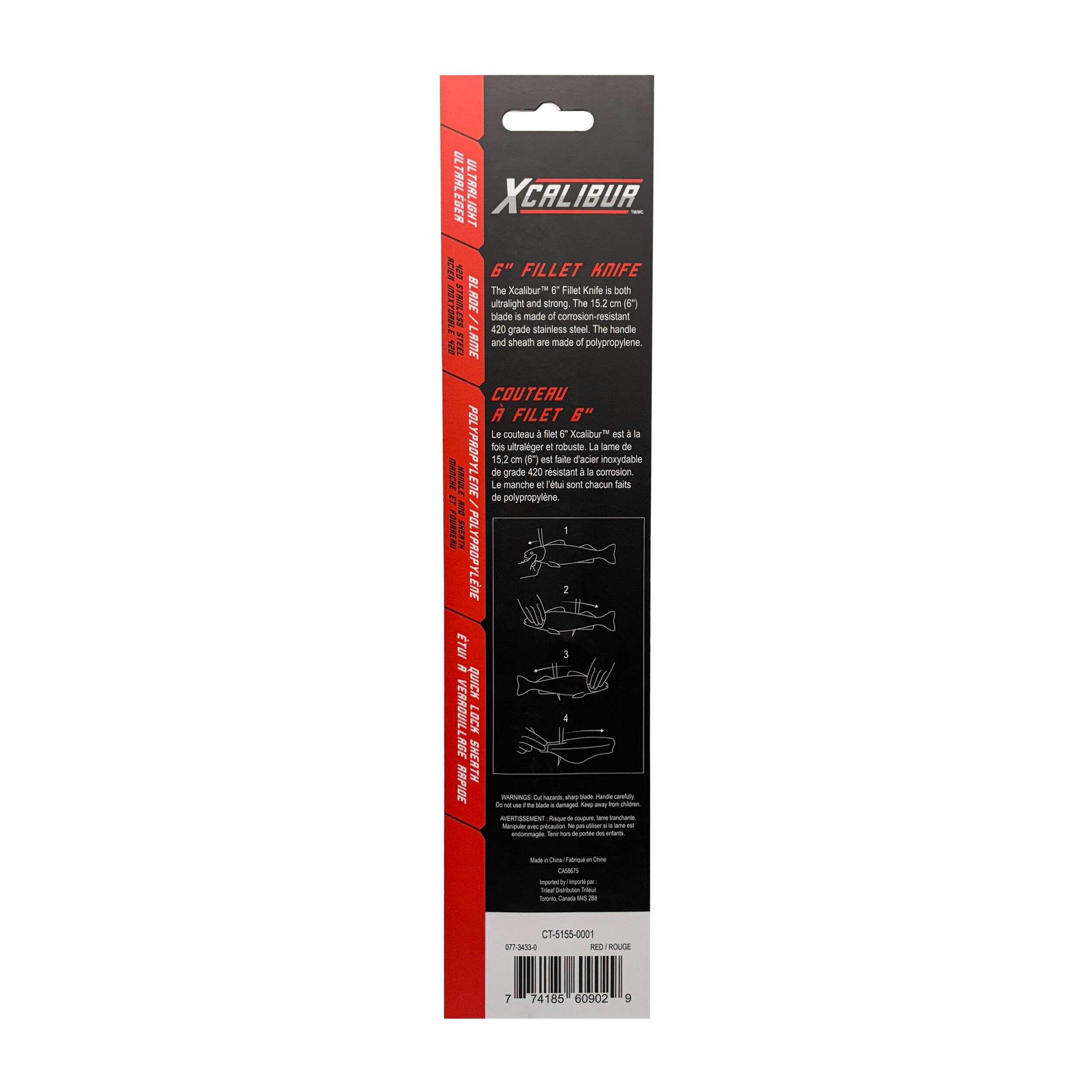 The Xcalibur 6'' Fillet Knife is both ultralight and strong. The 15.2 cm (6'') blade is made of corrosion-resistant 420 grade stainless steel. The handle and sheath are made of ABS plastic.
