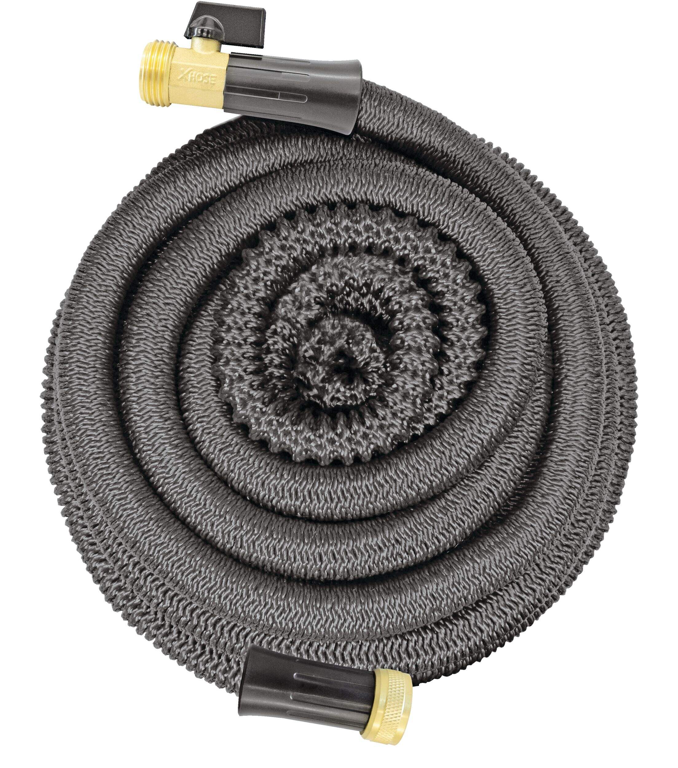 The Xhose Pro Dac-5 Fiber Lightweight Expandable Garden Water Hose, Assorted Sizes, is primed for beating the summer heat. The hose expands up to three times its original length when water flows through, making it lighter and easier to store than a traditional hose. Better yet, when the water is turned off it contracts again for easy storage. The secret is in its reinforced high-grade drag-resistant DAC-5 polyester outer layer which is specially woven to make it tougher and stronger than ever. The high-grade woven outer layer means this hose is tough yet flexible, while the brass fittings and reinforced collar can handle all your garden needs. Fill up that kiddie pool or give the lawn a good soak without leaving your post, thanks to the hose's expandable design and powerful spray.