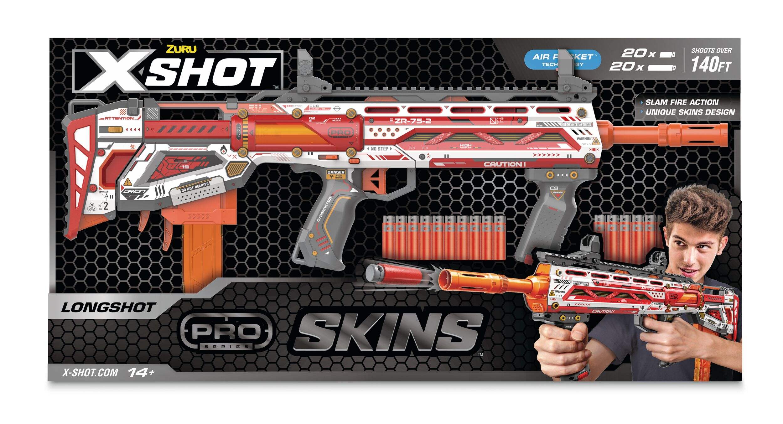 Take your dart blaster battles to the next level with the XSHOT Skins Pro Series Longshot Dart Blaster. Designed for pro-level performance, this blaster is equipped with two quick-release dart clips that hold both Full-Length and Half-Length Air Pocket Technology Darts for unmatched accuracy and stability. Whether you’re competing in close quarters or at a distance, the Longshot Dart Blaster ensures a superior experience with every shot. It's the perfect choice for serious dart blaster enthusiasts.