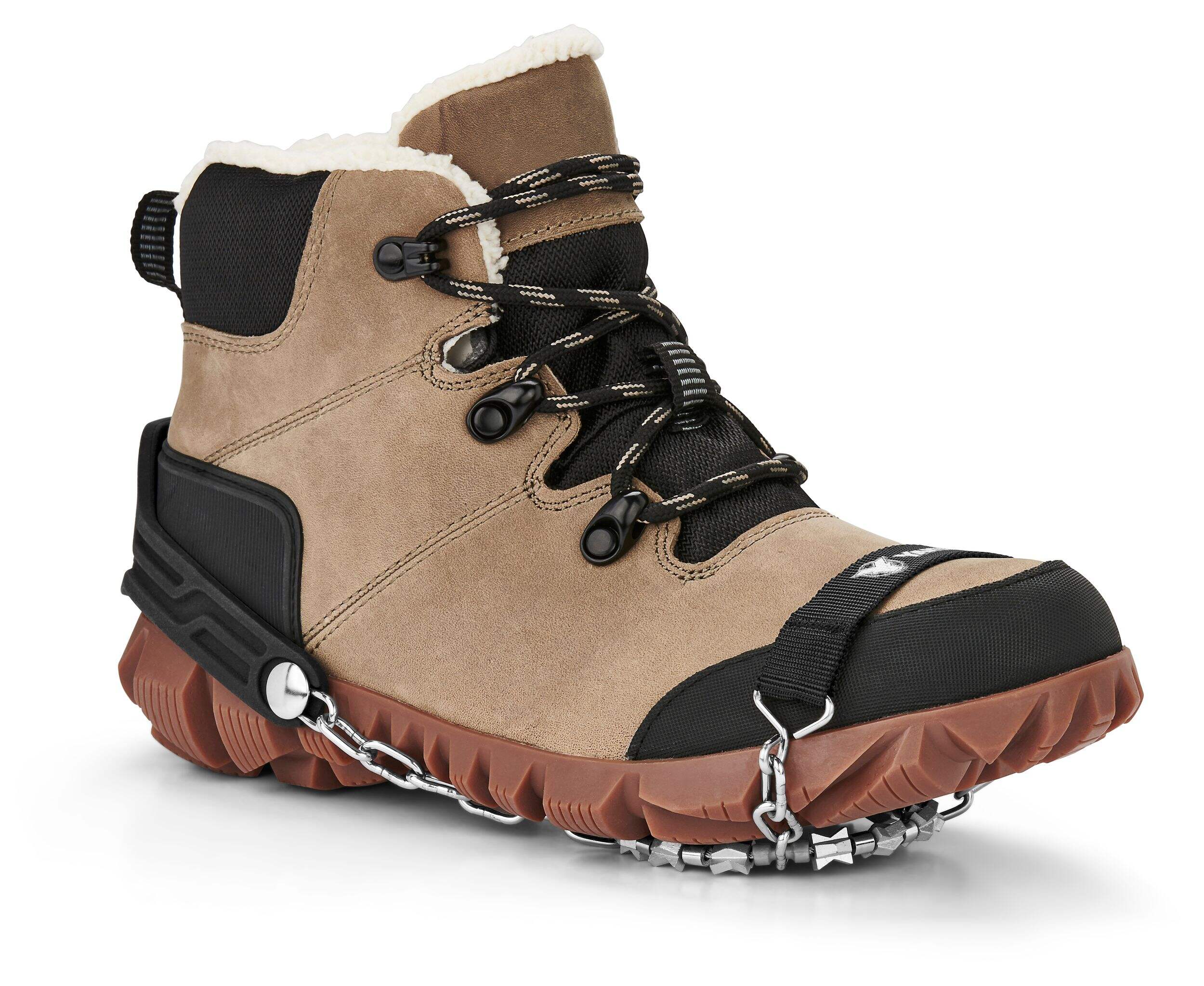 The YakTrax Diamond Go Shoe Grips are perfect for conquering slippery winter conditions. Constructed from case-hardened steel alloy and strung on aircraft-grade steel cable, these ice shoe grips rivet onto a rugged rubber band that fits athletic shoes, boots, and dress shoes comfortably. The band remains elastic in freezing temperatures to keep the grips securely in place. The open design prevents snow and ice from building up, so you can walk with confidence on icy sidewalks and salted pathways.