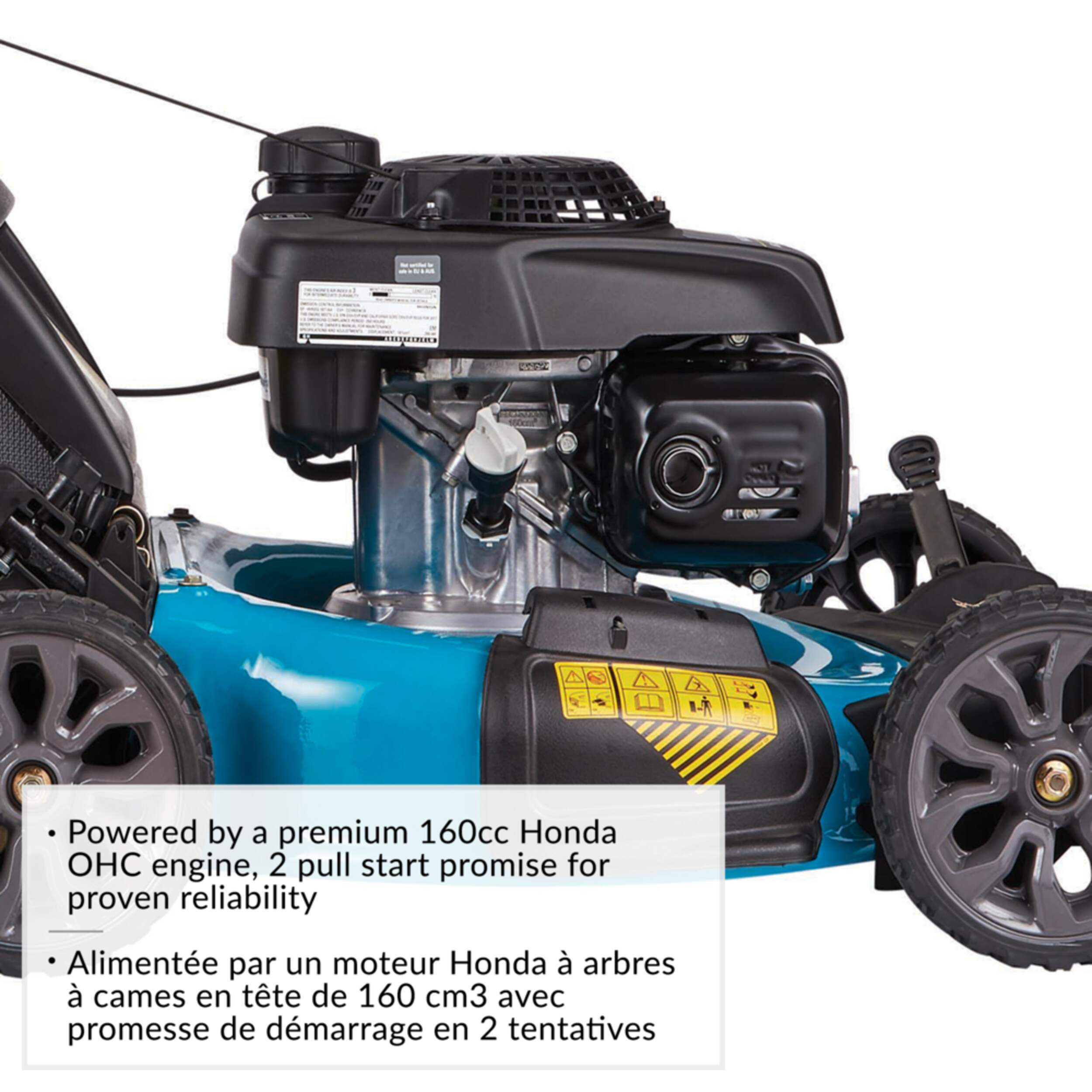 Yardworks 160cc 3-in-1 Push Lawn Mower is powered by a premium 160cc Honda OHC engine
