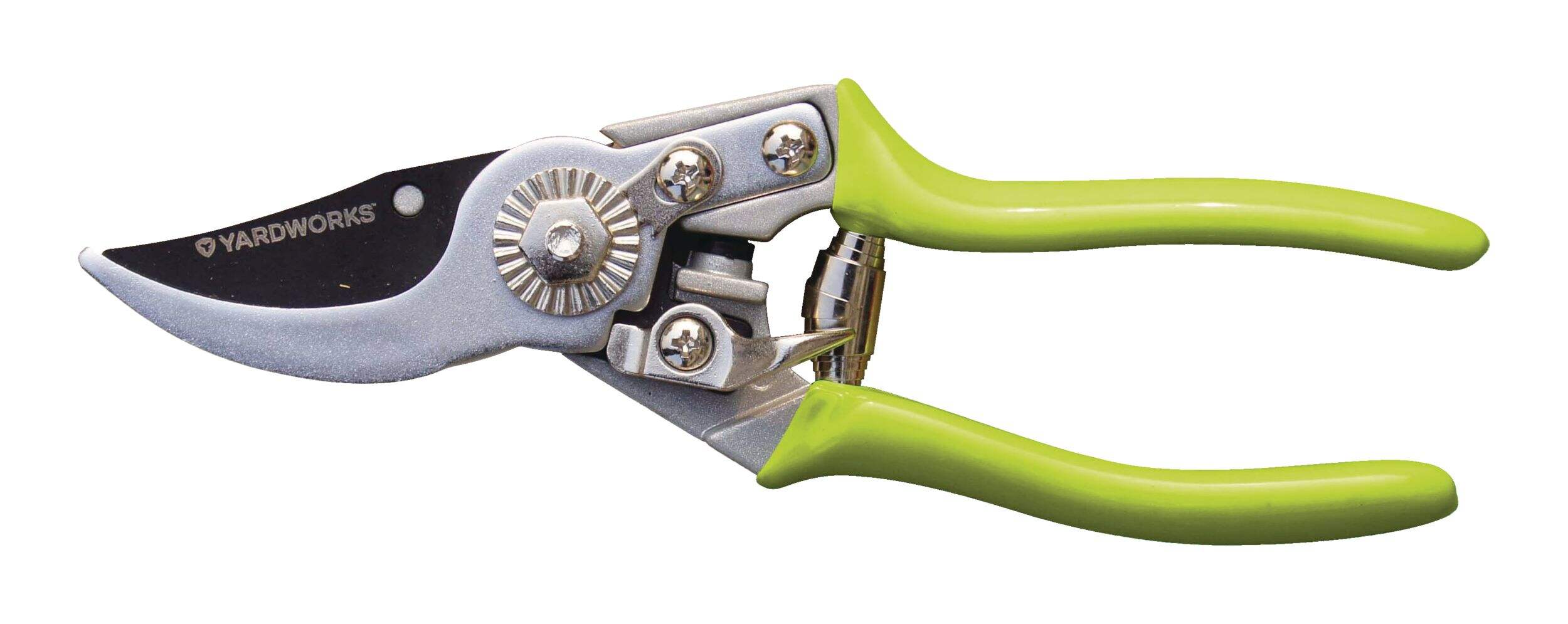 Brighten up your garden with our Yardworks pruner! Available in vibrant colours like purple, blue, orange, and yellow, this pruner combines style with the strength of carbon steel blades. It cuts with precision, and when not in use, a steel lock keeps the blades securely closed. You can count on this pruner to last for years, as it is designed for durability and longevity.
