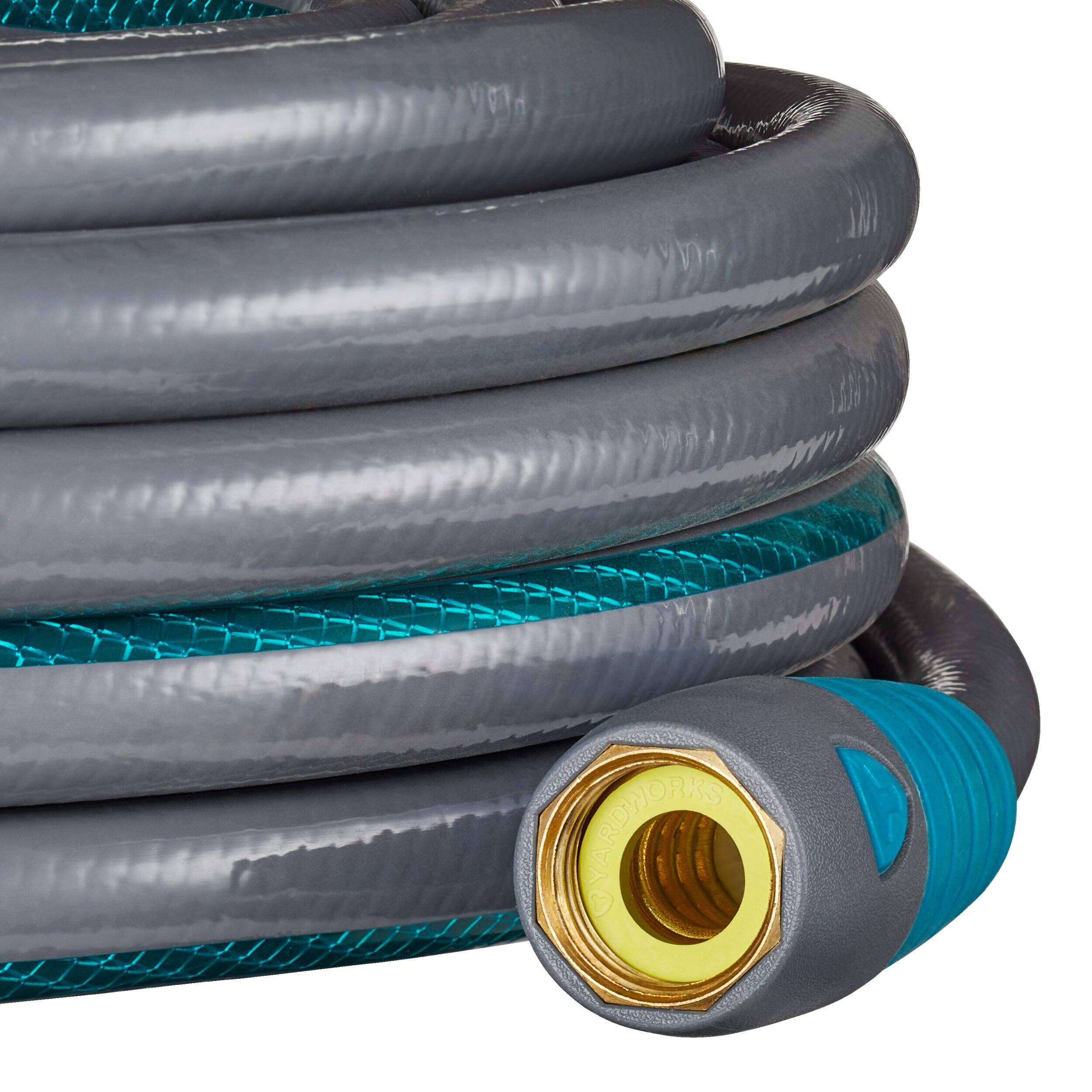 The Yardworks Heavy-Duty Hose is built for durability and leak-proof performance, making it a good choice for everyday lawn and garden use. Engineered with the Yardworks Dry Seal System, it features a precision connection and an advanced washer to ensure a no-leak seal. The self-straightening design prevents kinks and bends, keeping the hose straight and easy to use. Crush-resistant metal couplings and heavy-duty PVC construction add to its long-lasting resilience, while ergonomic grips make connecting to spigots or water tools effortless.
