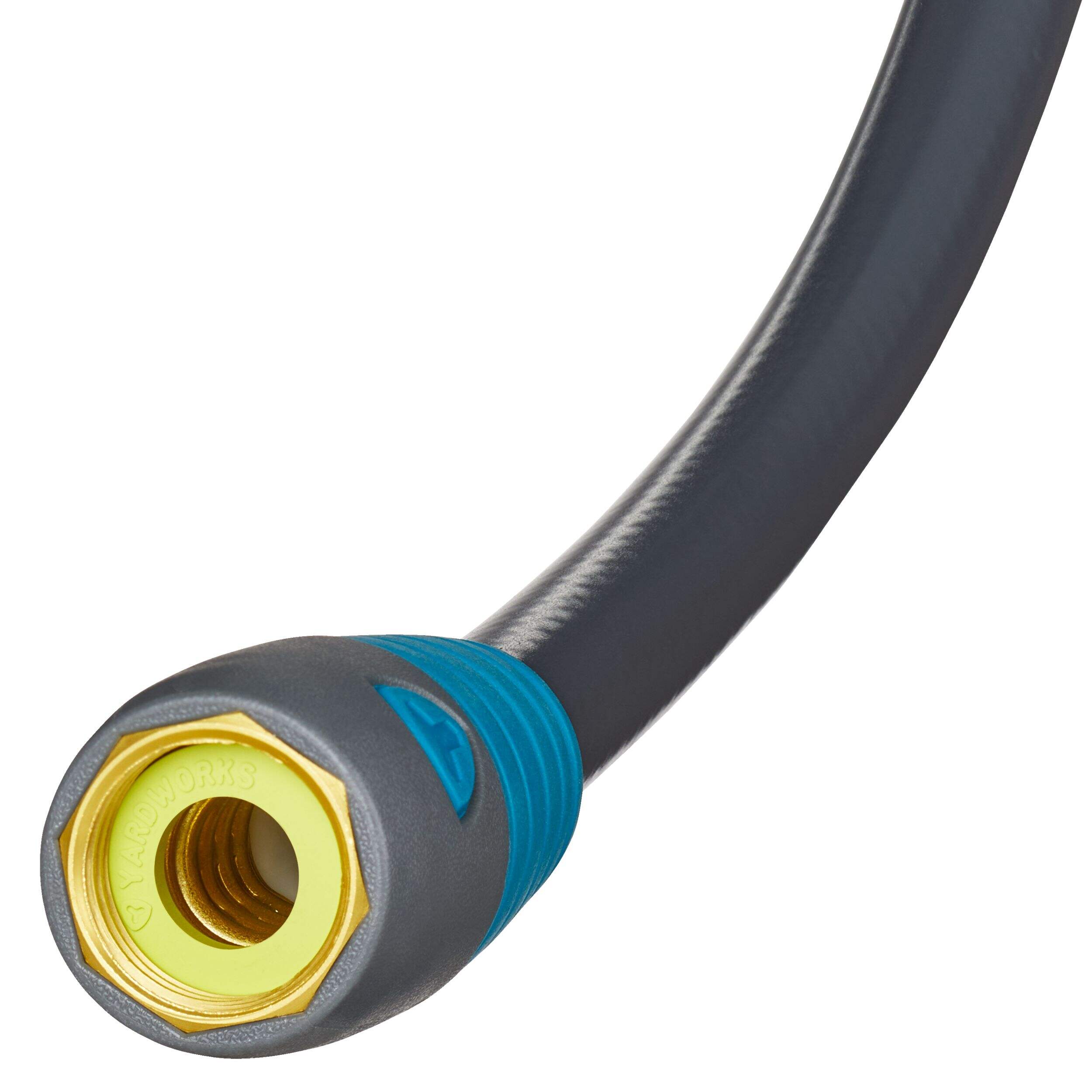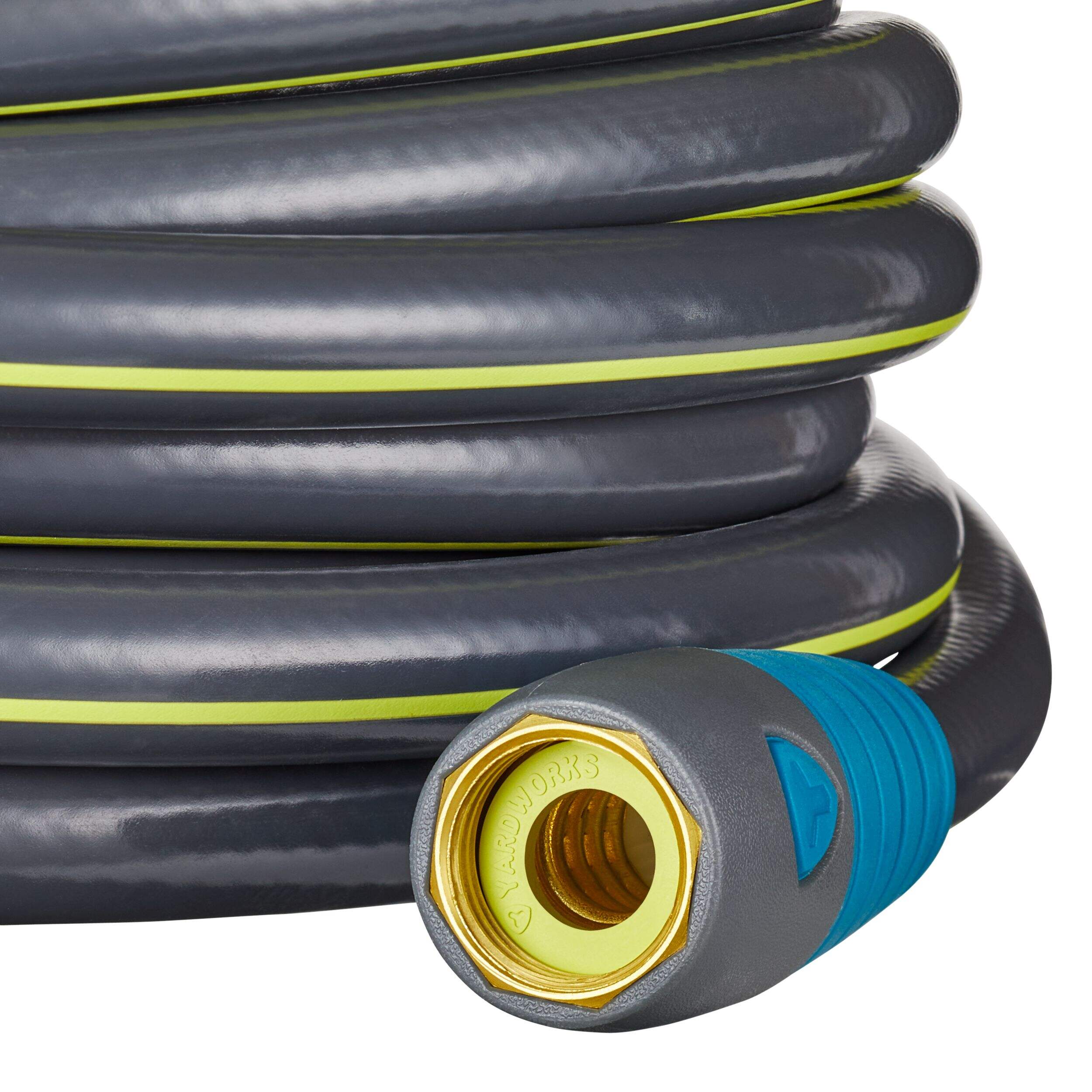 The Yardworks ProFlex Dry Seal Featherlight Hose makes garden tasks easy and hassle-free. It provides leak-free performance with a premium-grade washer for an optimal seal. The hose remains flexible in freezing temperatures and is made from durable PVC with self-straightening and crush-resistant properties. Its spinning male coupler keeps it kink-free, while the comfortable swivel grip allows for easy connection.