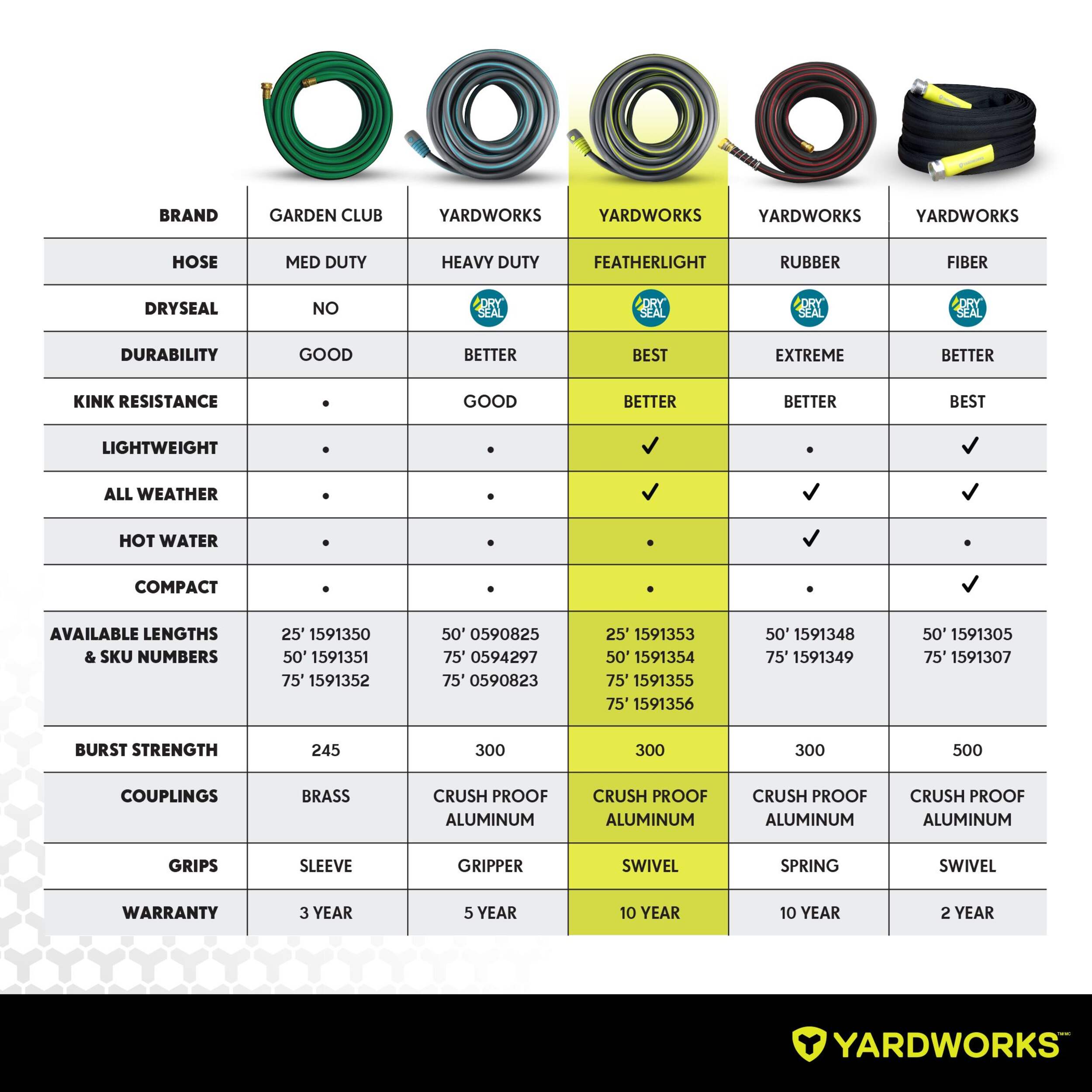 The Yardworks ProFlex Dry Seal Featherlight Hose is designed to withstand tough Canadian weather, staying flexible even in sub-zero temperatures. Made from heavy-duty PVC, it’s crush-resistant and remains kink-free thanks to its spinning male coupler. The premium-grade washer ensures leak-free performance, while the swivel grip makes connecting easy. Lightweight yet durable, it handles high water pressure for all your gardening needs.