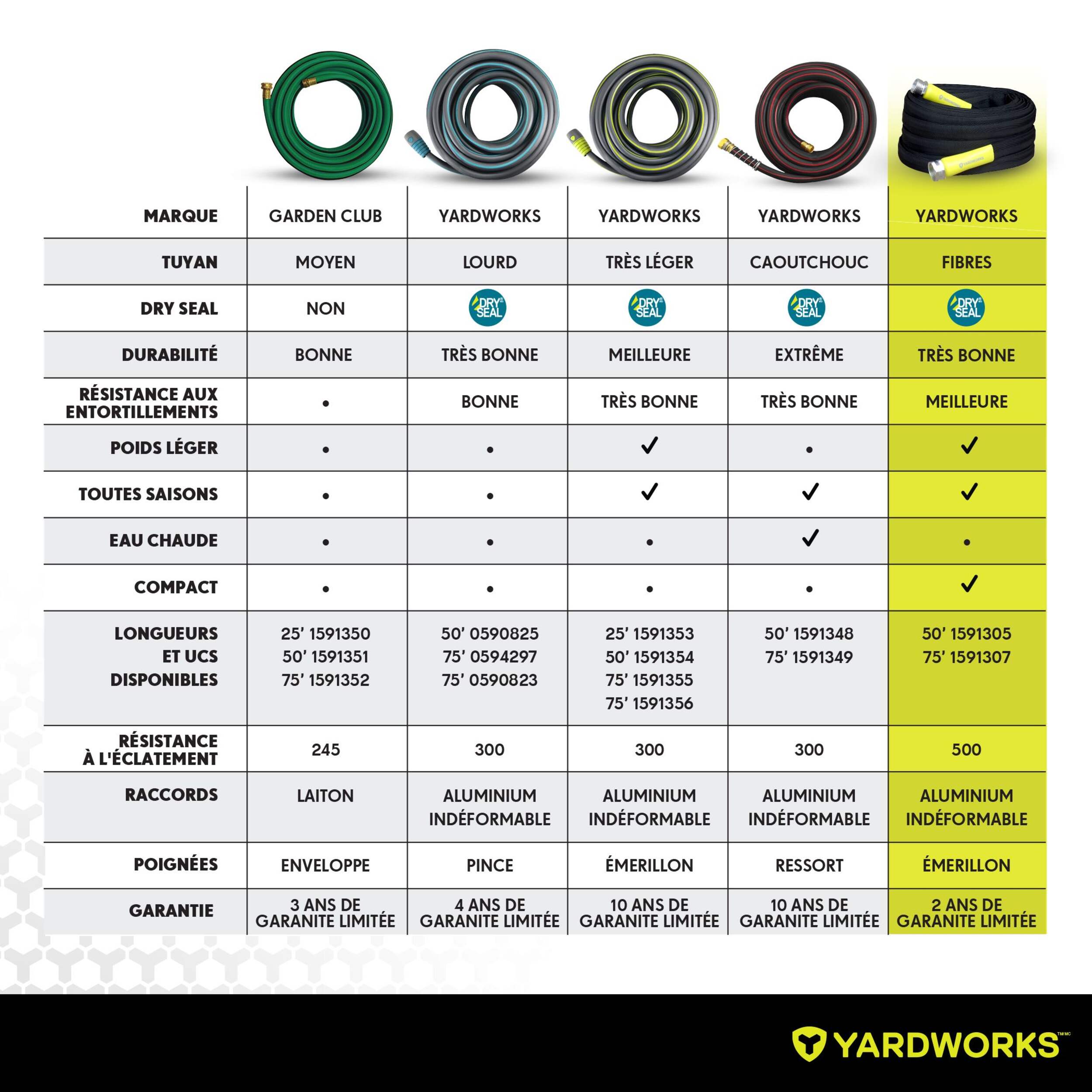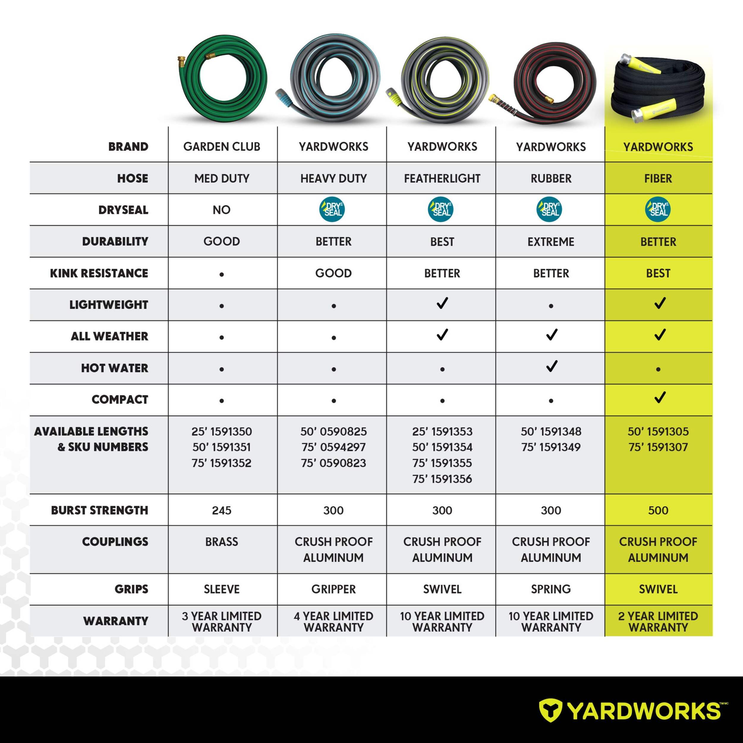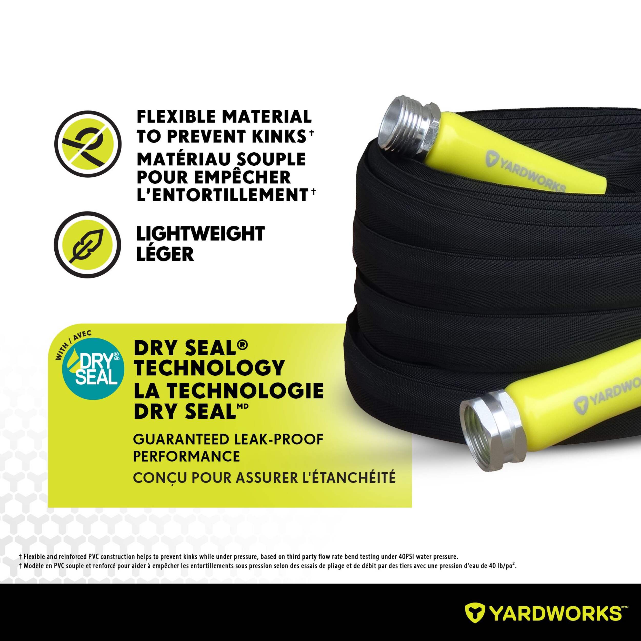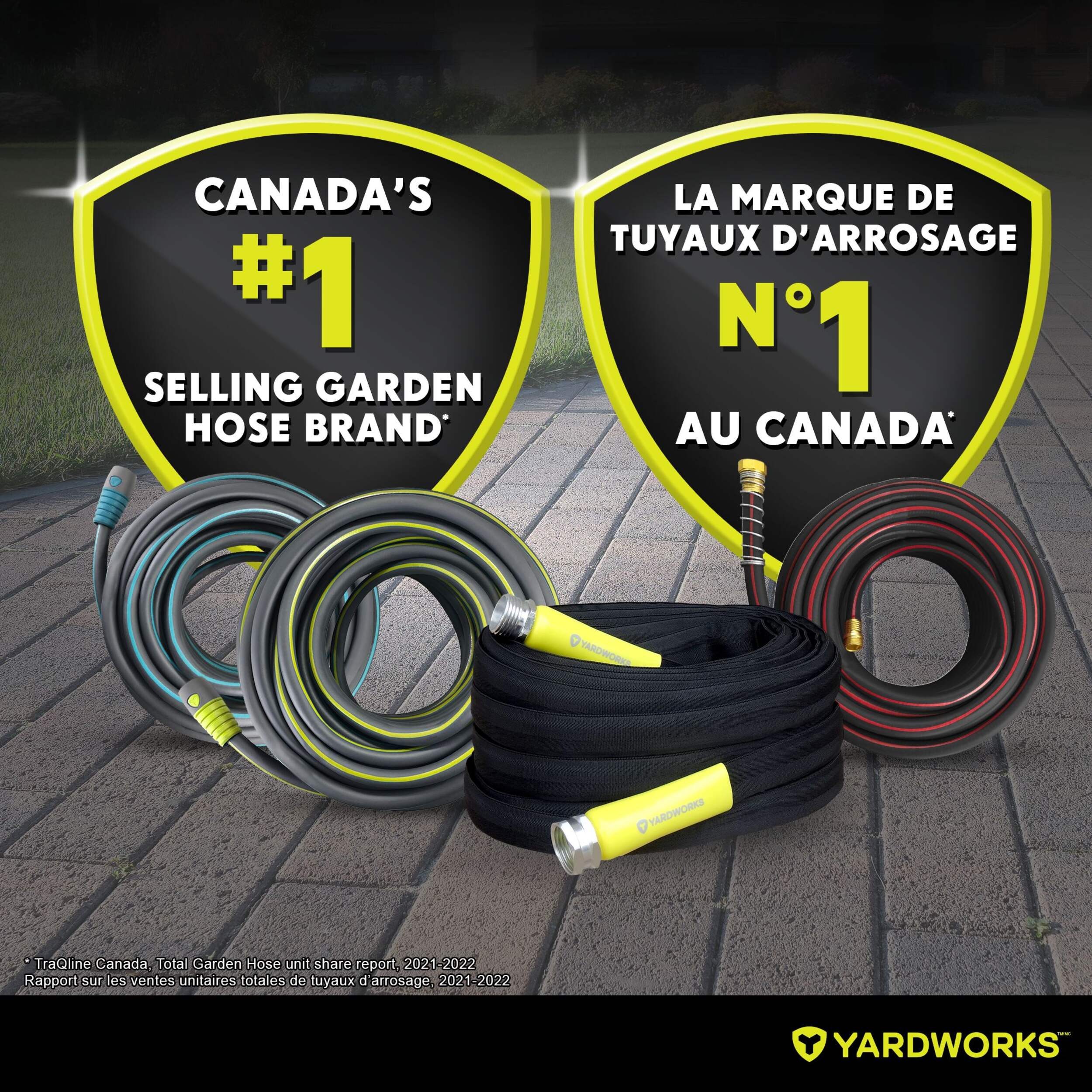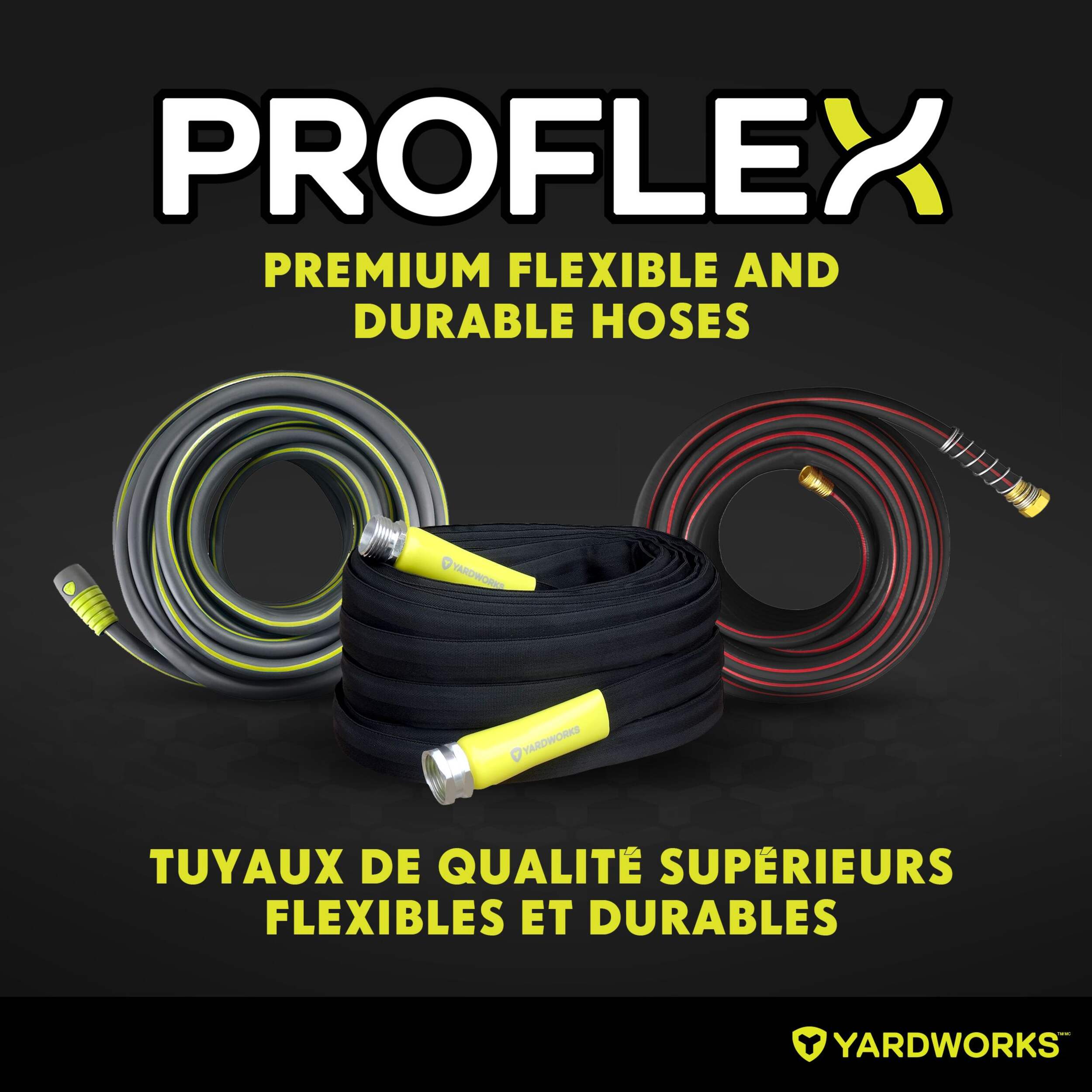 The Yardworks ProFlex Fibre Jacket Fabric Hose handles your gardening needs with flexibility and durability. Its durable PVC construction, combined with a fibre jacket, resists abrasions and punctures while remaining flexible even in sub-zero temperatures. The hose includes crush-resistant couplings, helping to ensure long-term use, and a comfortable swivel grip for easy connection. Compact and lightweight, this hose compresses flat for convenient storage.