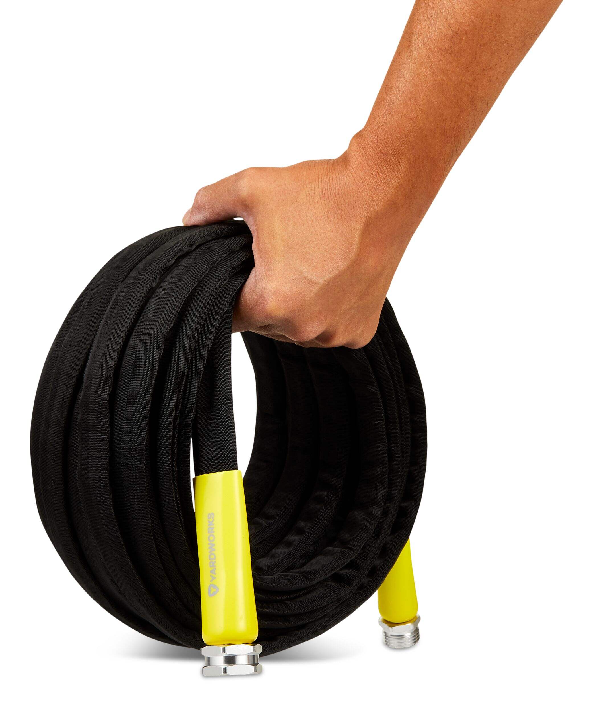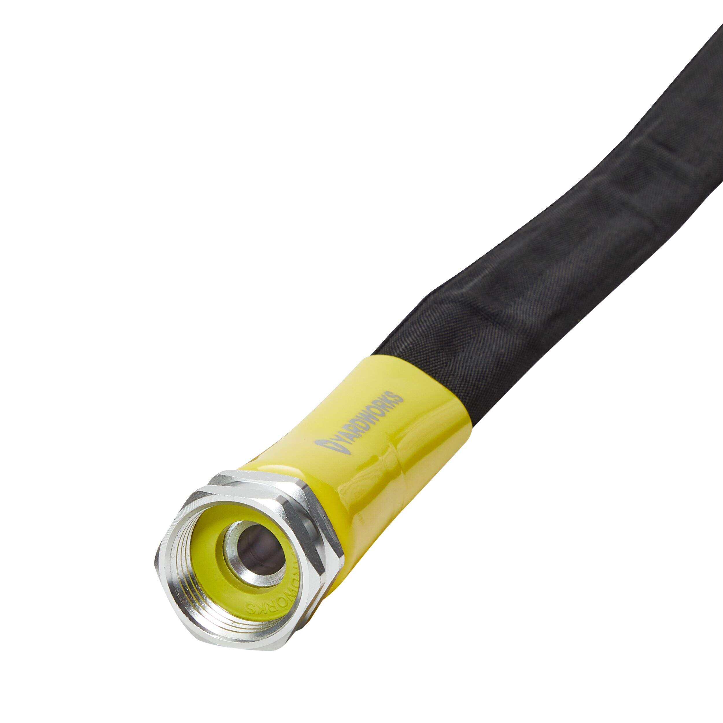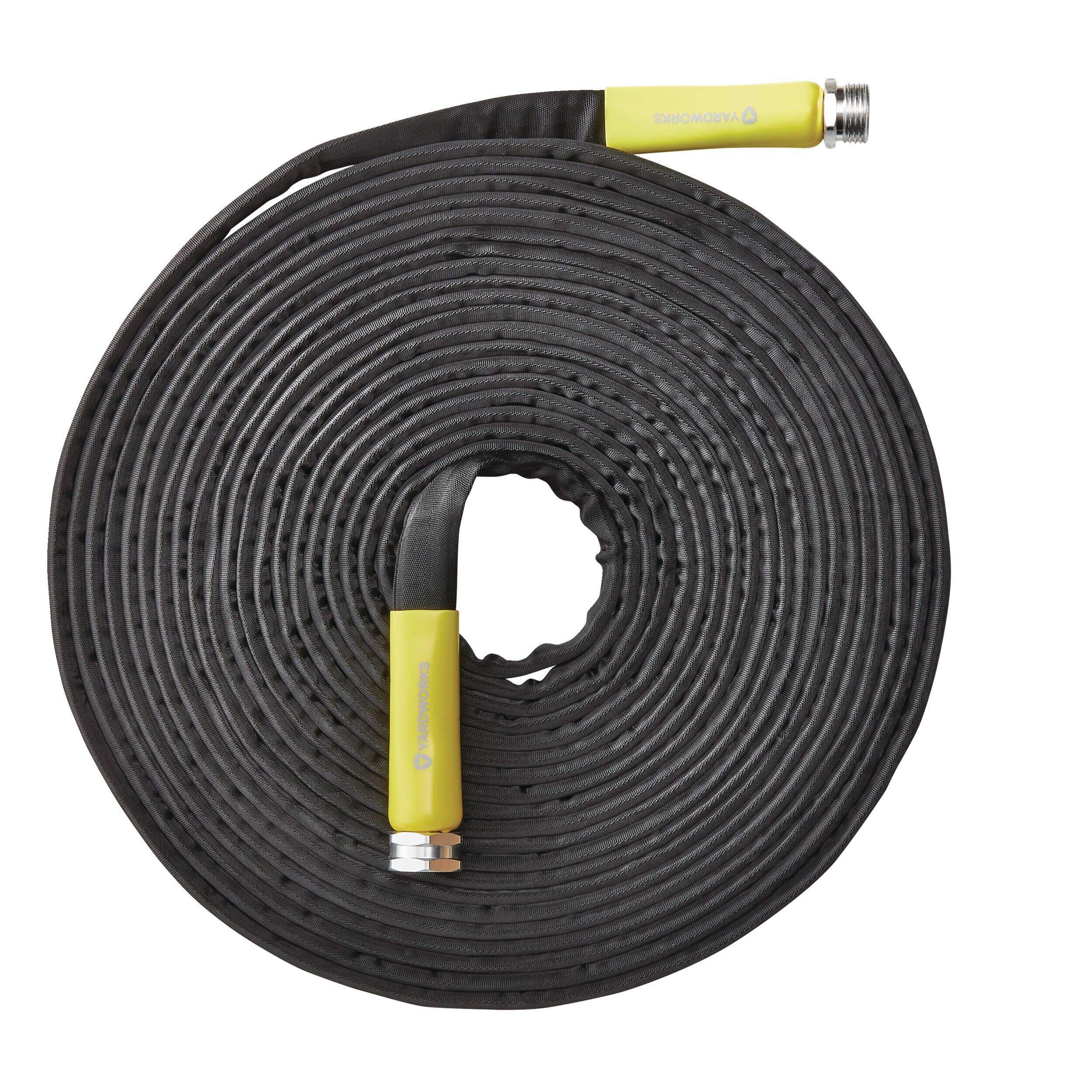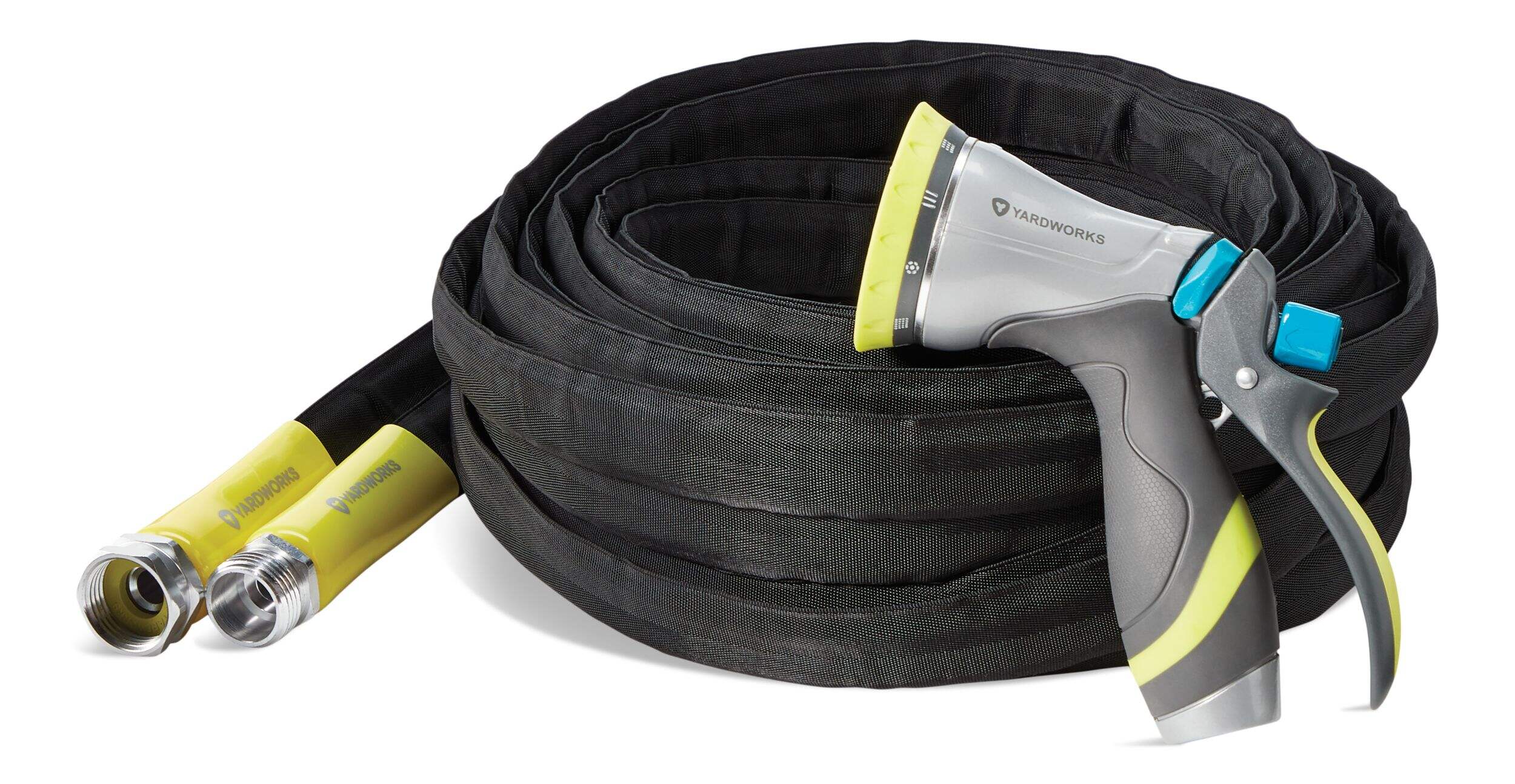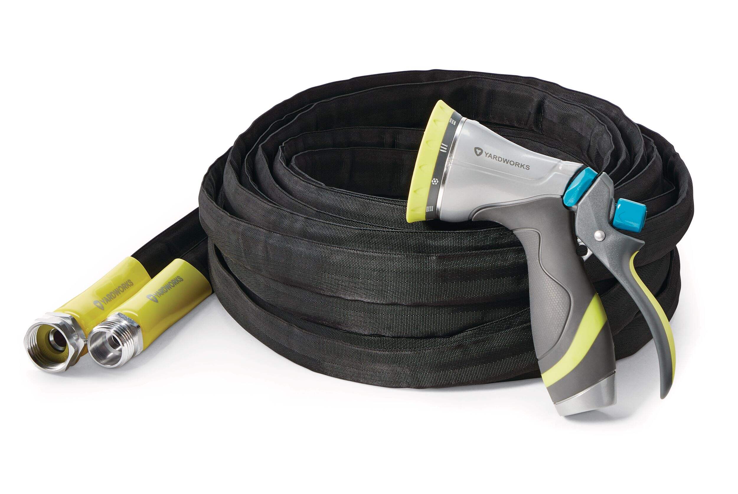 The Yardworks ProFlex Fibre Jacket Fabric Hose handles your gardening needs with flexibility and durability. Its PVC construction, combined with a fibre jacket, resists abrasions and punctures while remaining flexible even in sub-zero temperatures. The hose includes crush-resistant couplings, ensuring long-term use, and a comfortable swivel grip for easy connection. Compact and lightweight, this hose compresses flat for convenient storage.