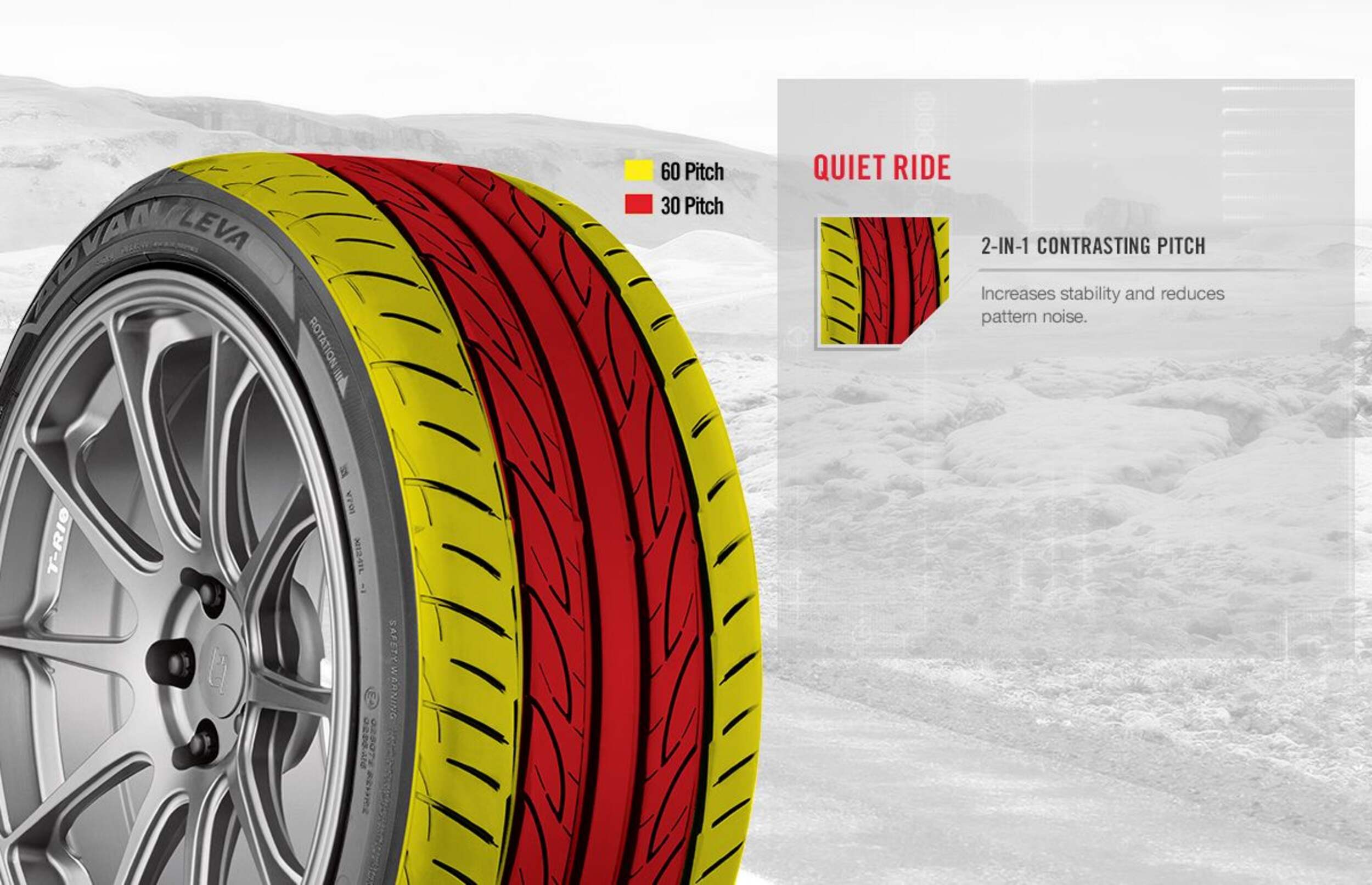 Non-penetrating Lug Groove pattern suppresses heel and toe friction as well as the popping noise for a quieter ride