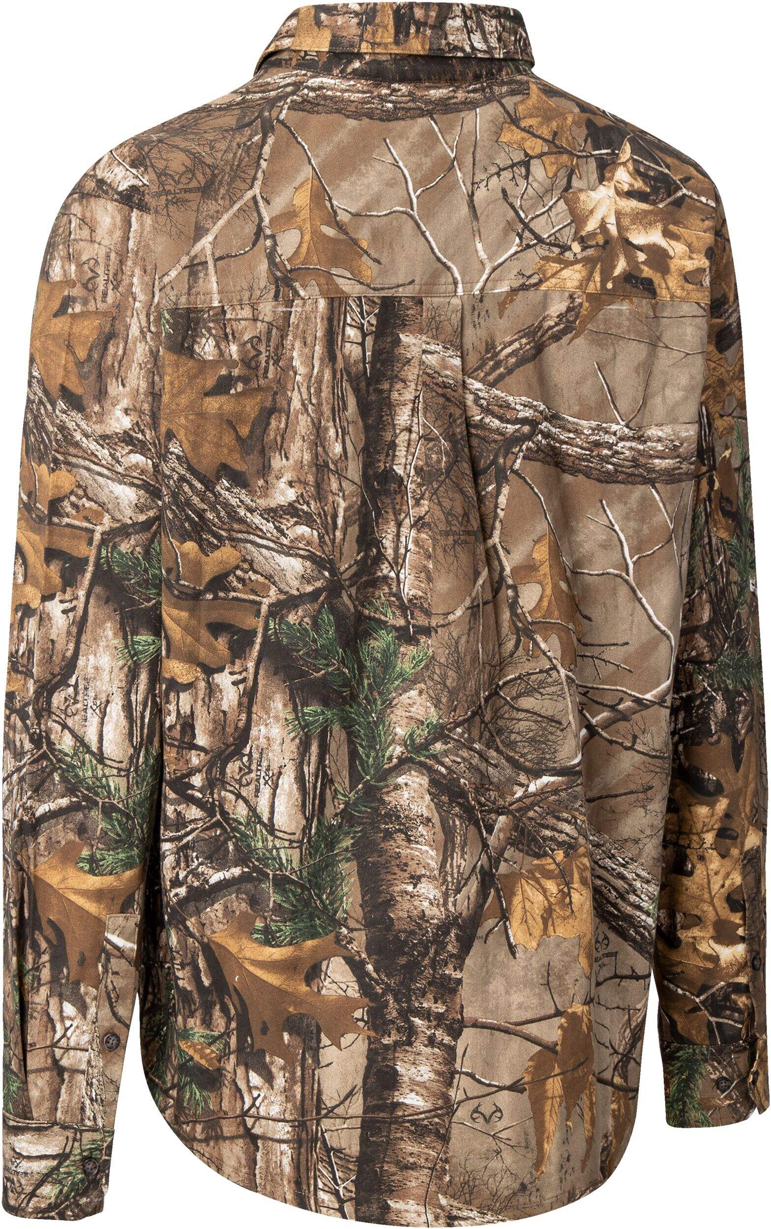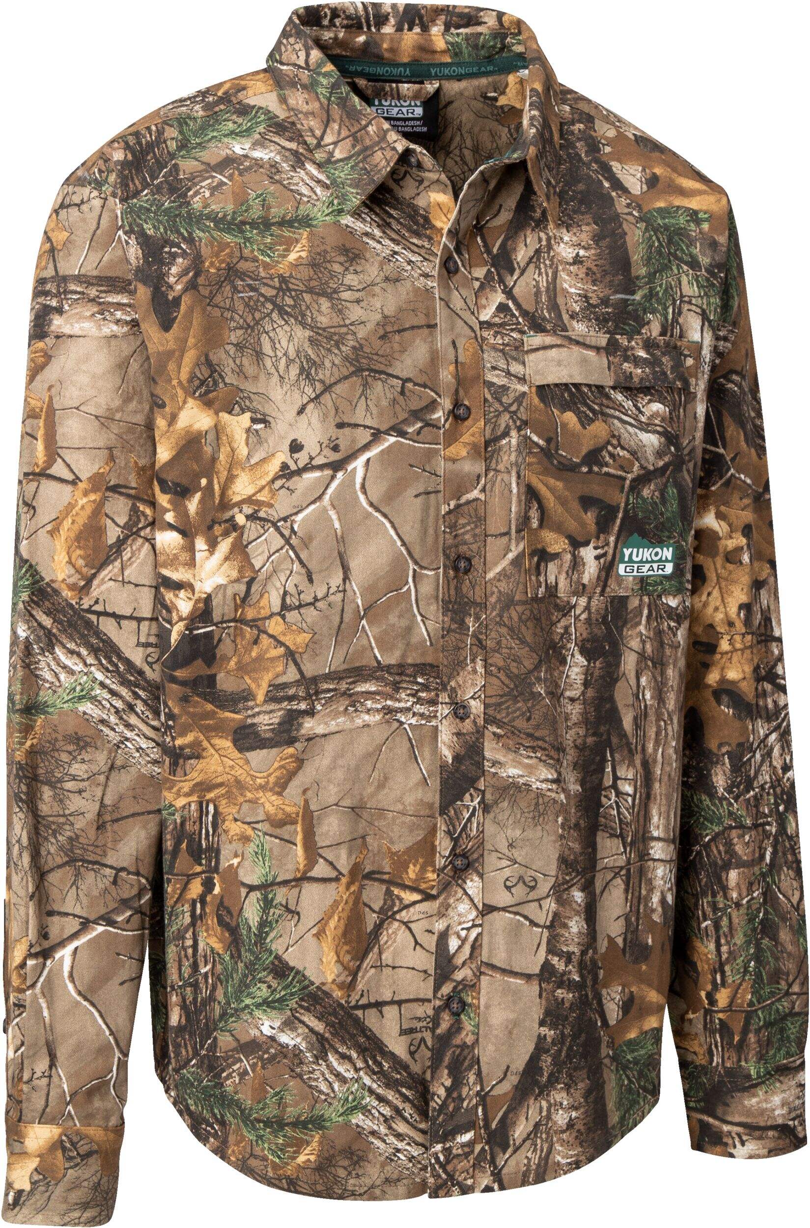 The Yukon Gear Men's Field Long Sleeve Shirt offers the perfect combination of style and functionality. Made of high-quality 100% BCI soft cotton material, this hunting shirt helps to keep you comfortable during long hunting trips. A chest pocket provides storage space for small essentials and this camo print shirt is designed to easily blend in with your environment. The buttoned down shirt can be worn as a standalone piece or as an outer layer.